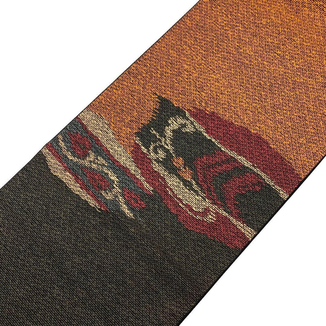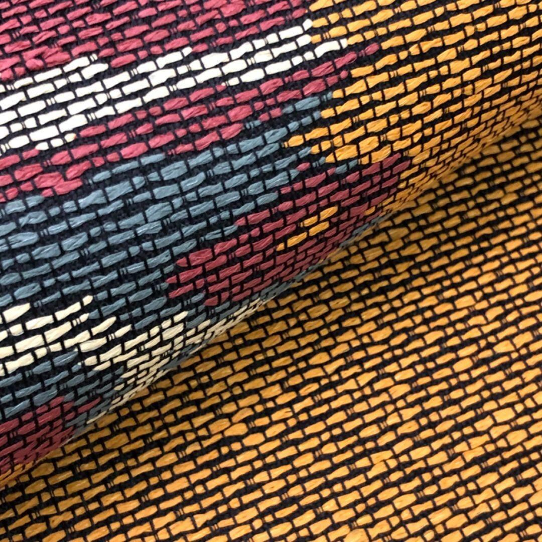 狐色ベースの多彩なお色味、手のかかった織りで抽象模様がデザインされた雰囲気の良い素敵なお品でございます。