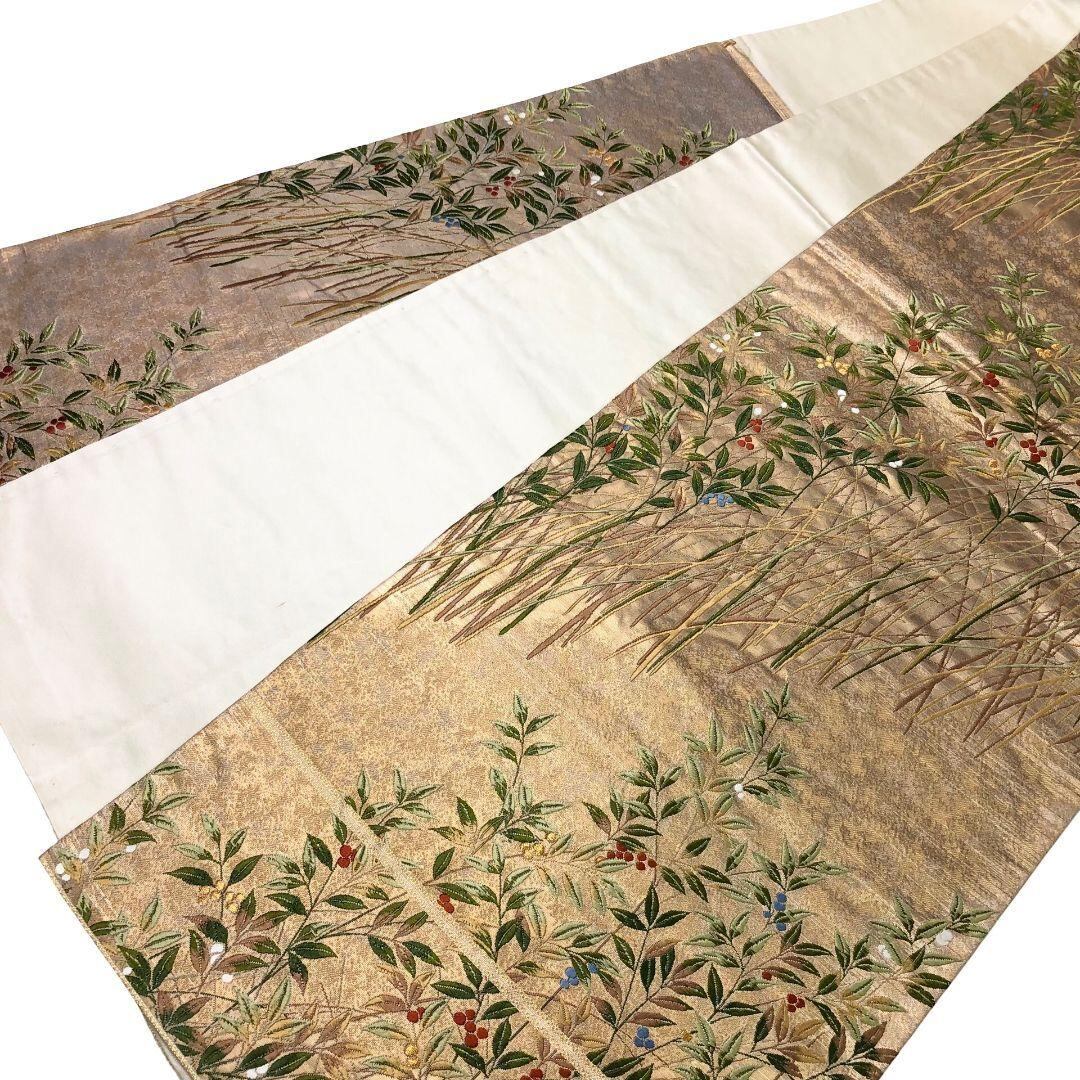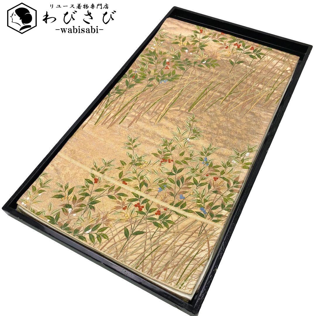 袋帯 南天柄 山吹色 金糸 O-5823 着物 きもの kimono 和服 和装 中古 リサイクル着物 【送料無料】