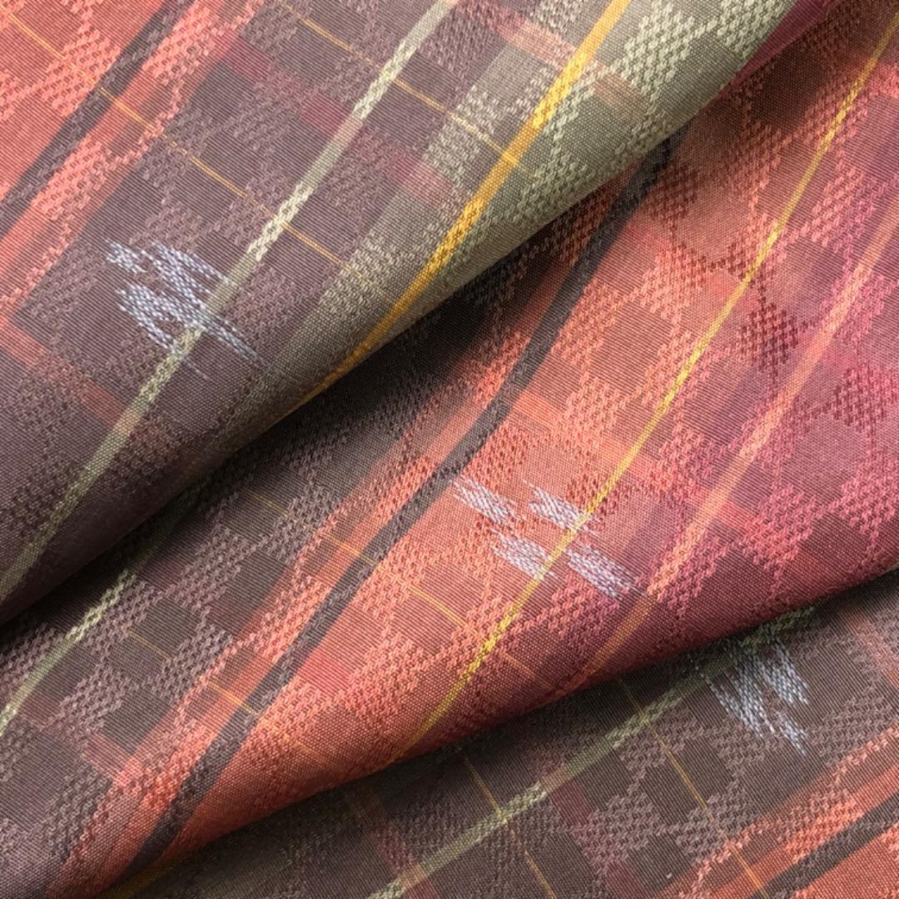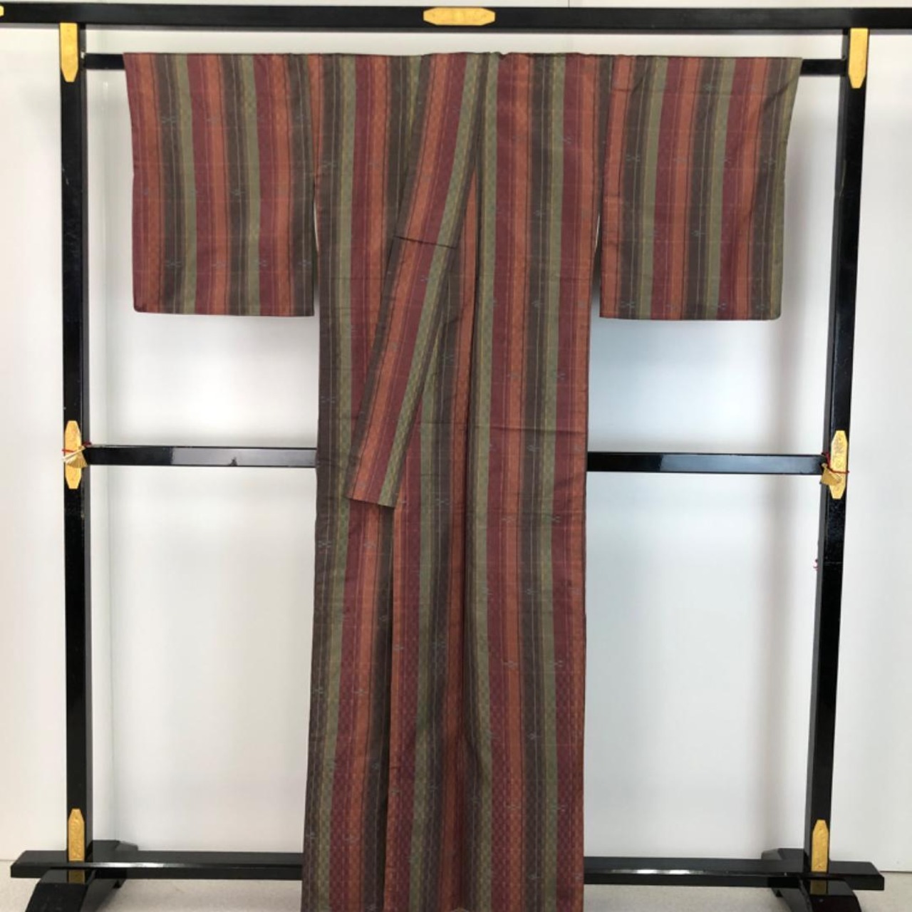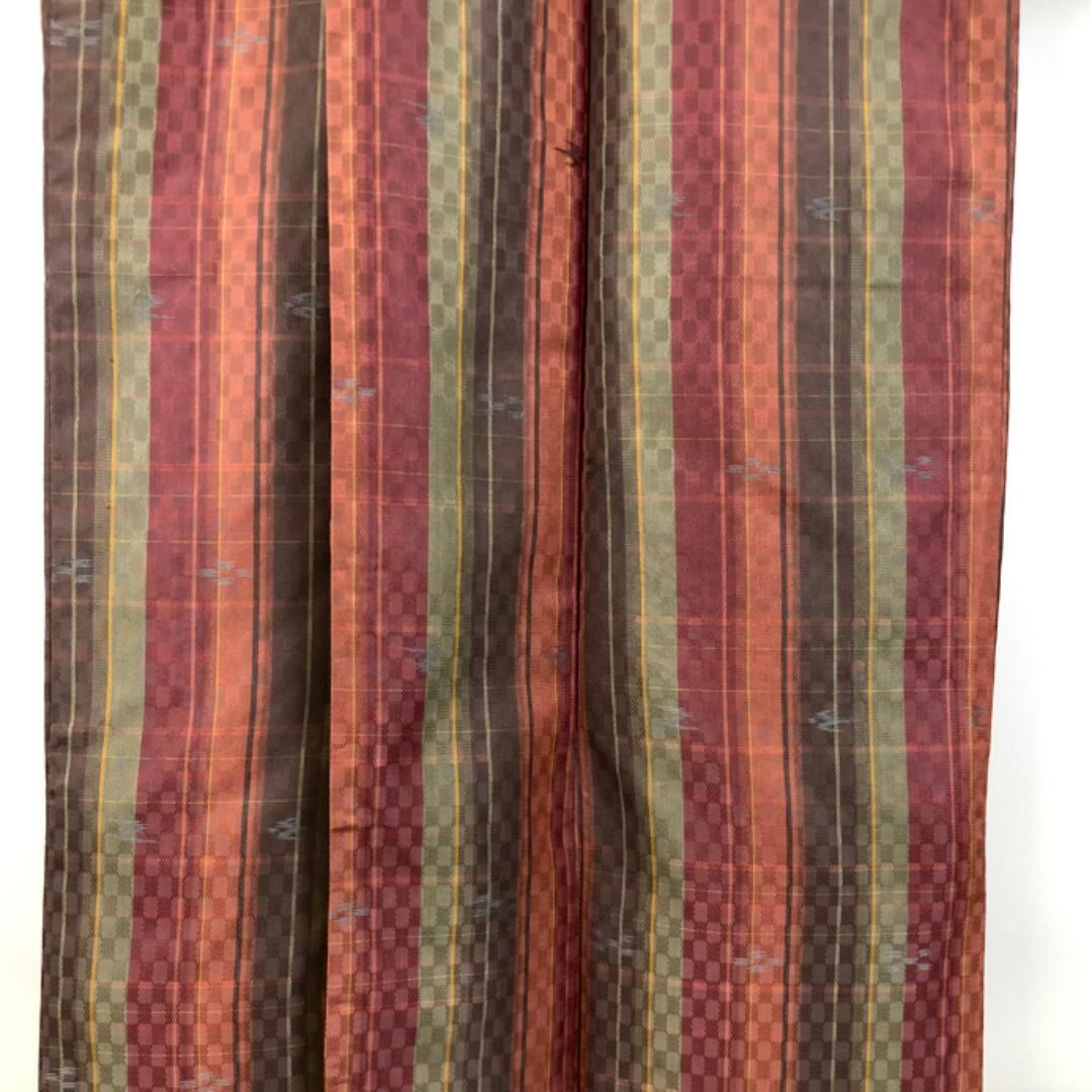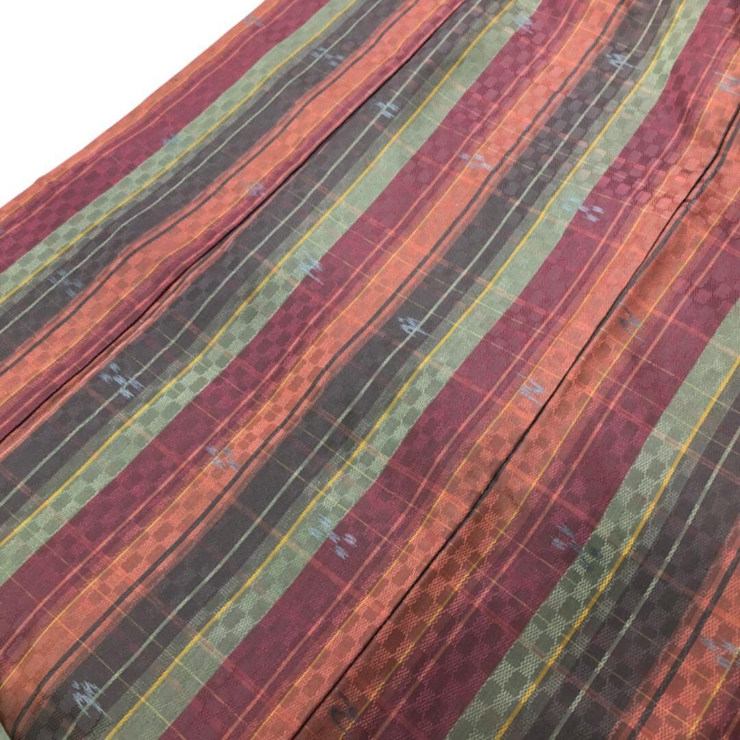 縦縞模様に市松、琉球柄の絣模様がデザインされた素敵なお品でございます。