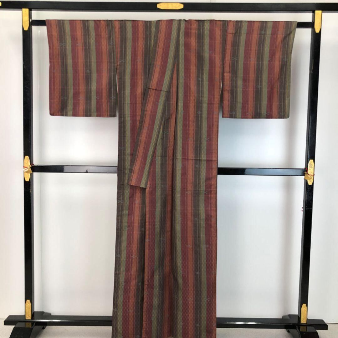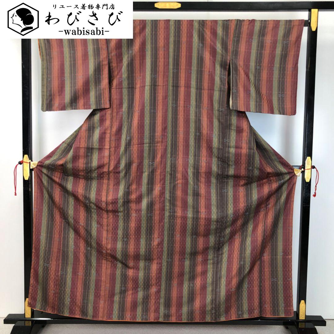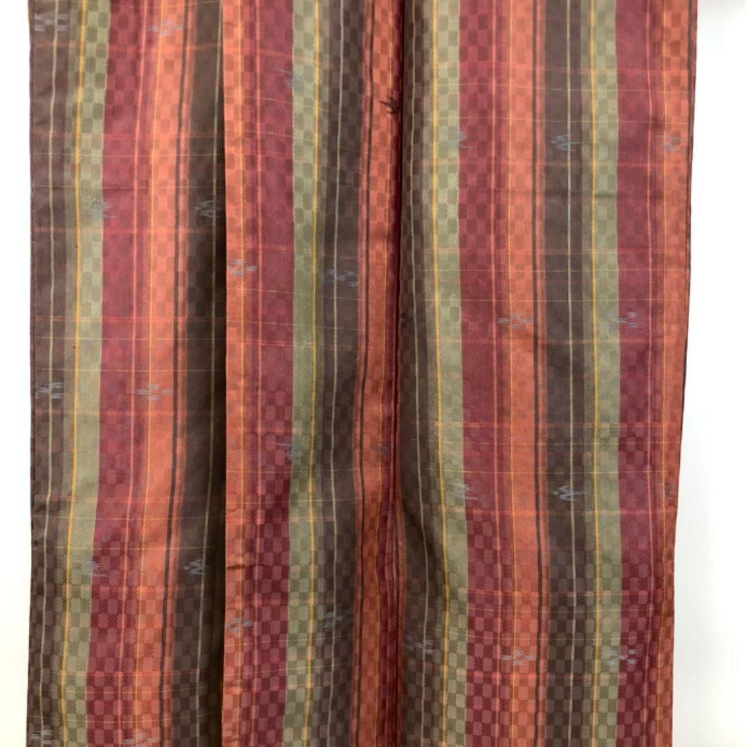 紬着物 縦縞模様 市松 琉球柄 絣 K-5560 着物 きもの kimono 和服 和装 中古 リサイクル着物 【送料無料】