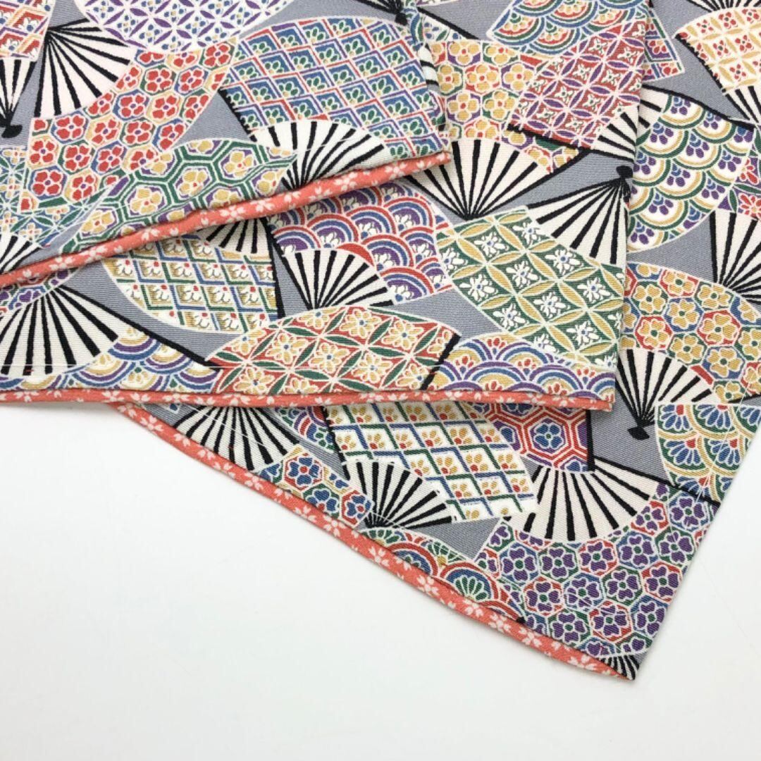 小紋 扇子 花七宝 花亀甲 花青海波 花菱 薄鈍色 しつけ糸 K-5586 着物 きもの kimono 和服 和装 中古 リサイクル着物 【送料無料】