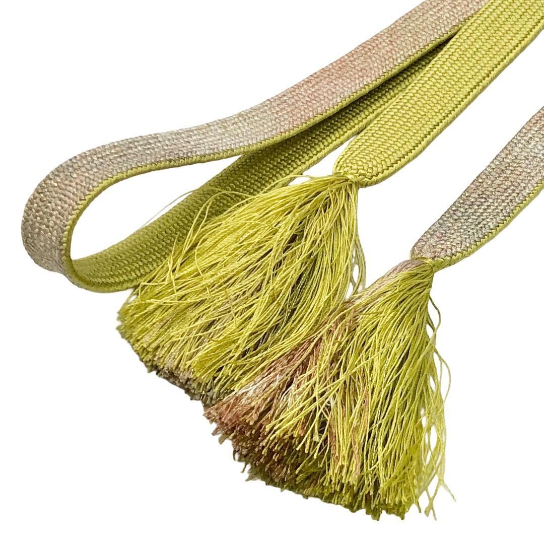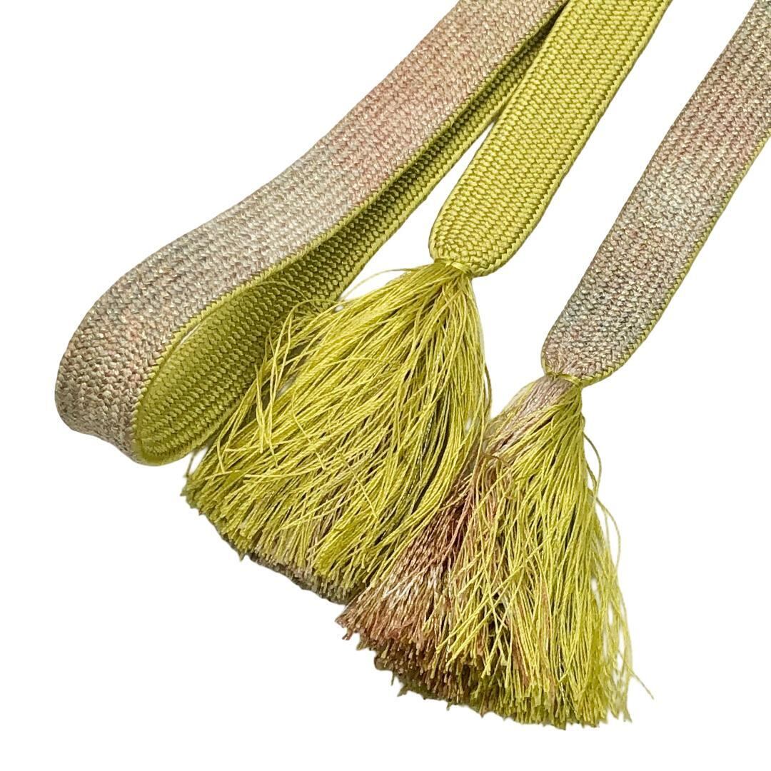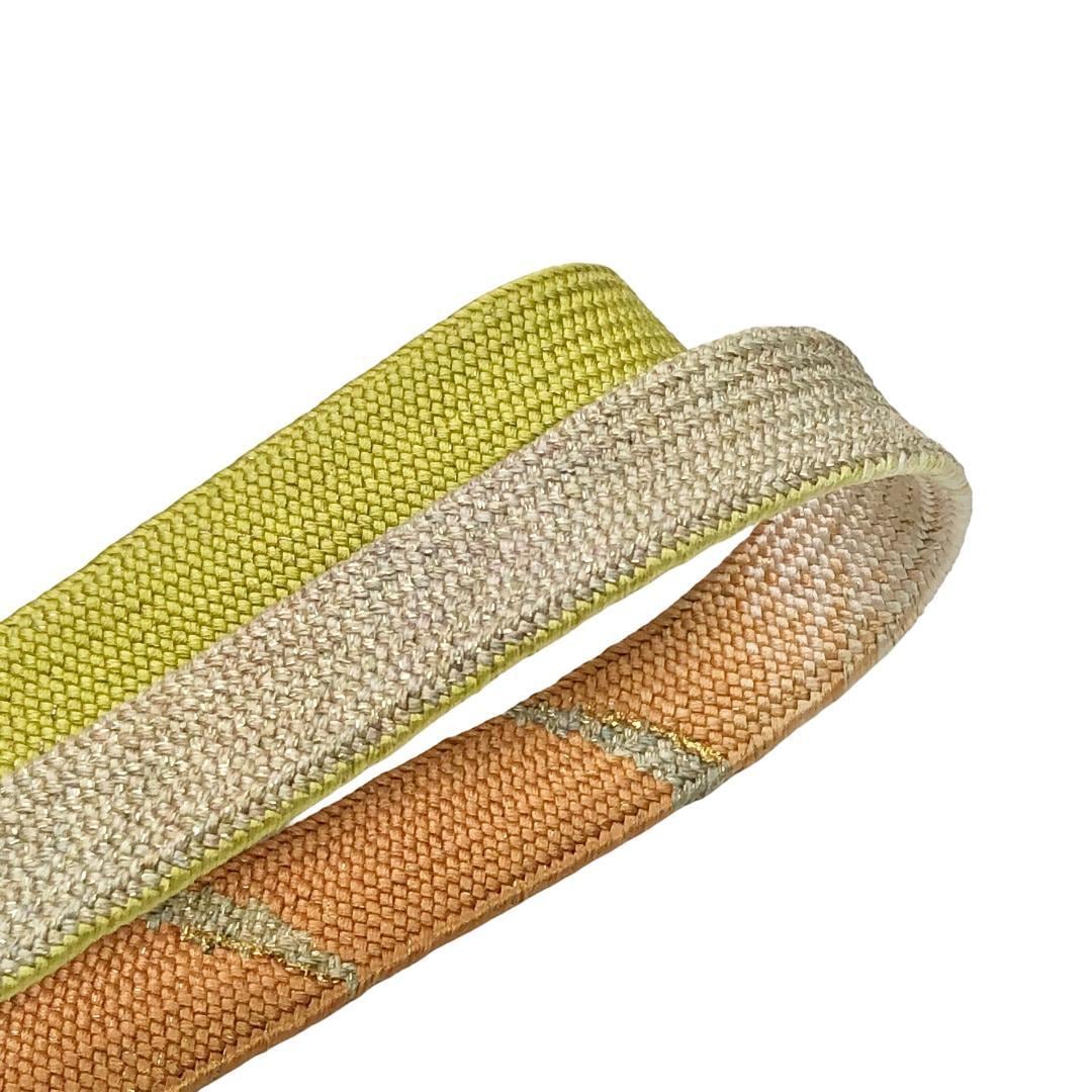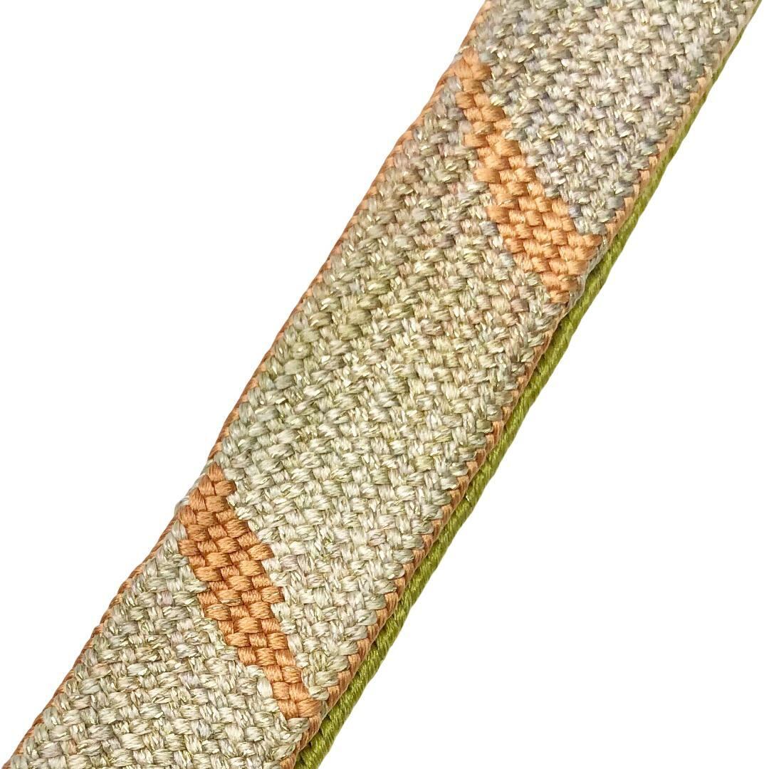 青朽葉色ベースのお色味に抽象模様がデザインされた高麗組の素敵なお品でございます。