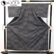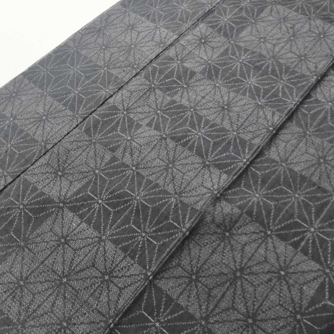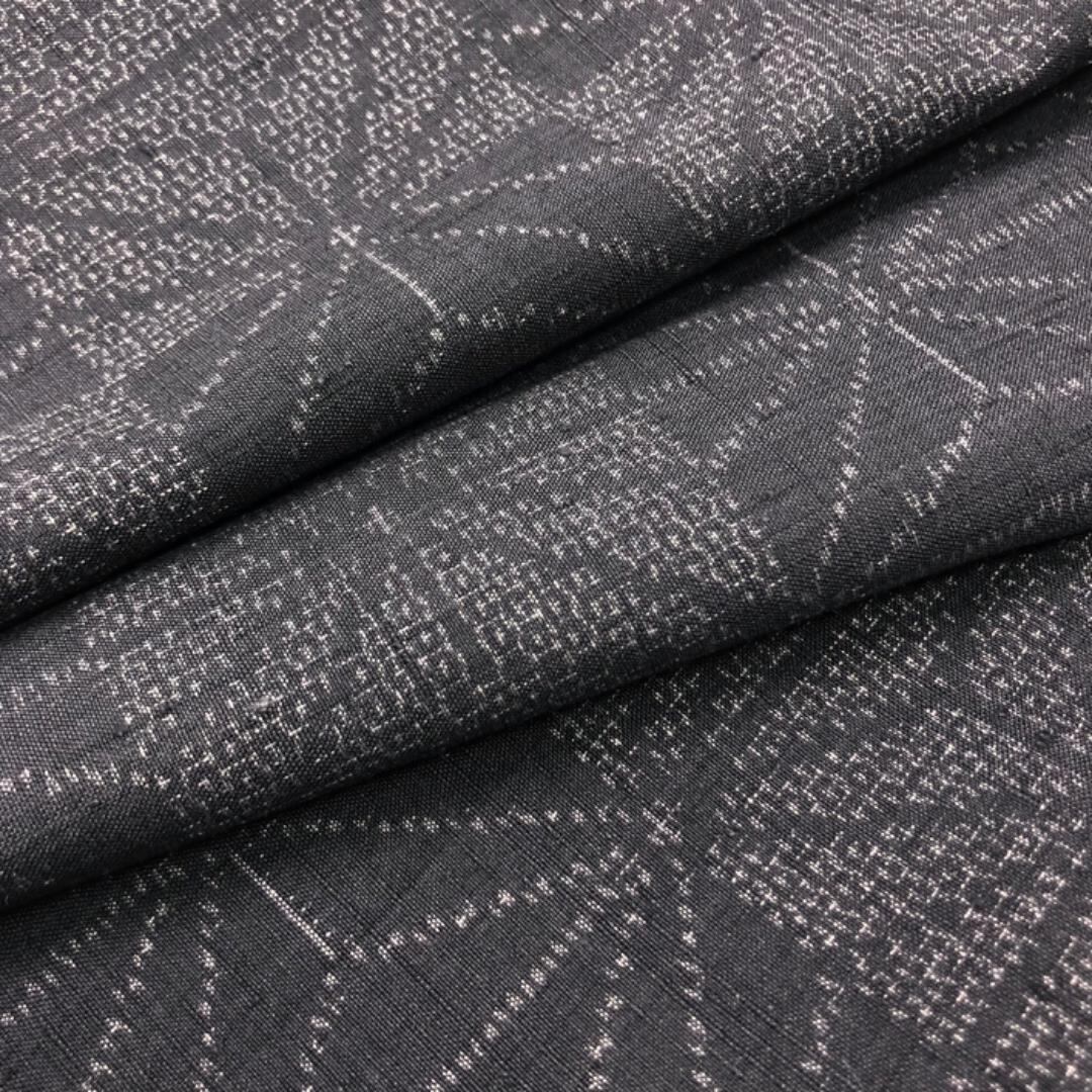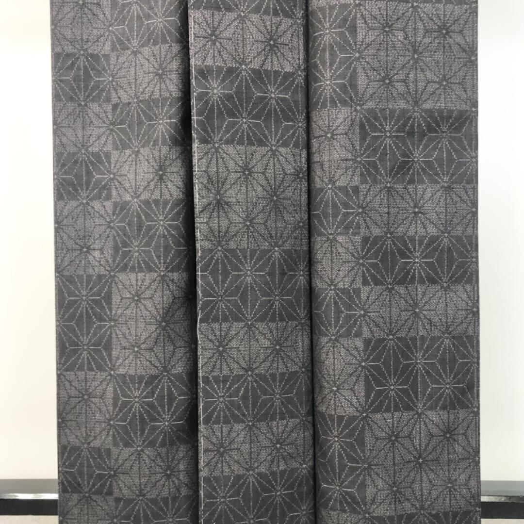 黝色のお色味に麻の葉模様の柄裄がデザインされた雰囲気の良い素敵なお品でございます。