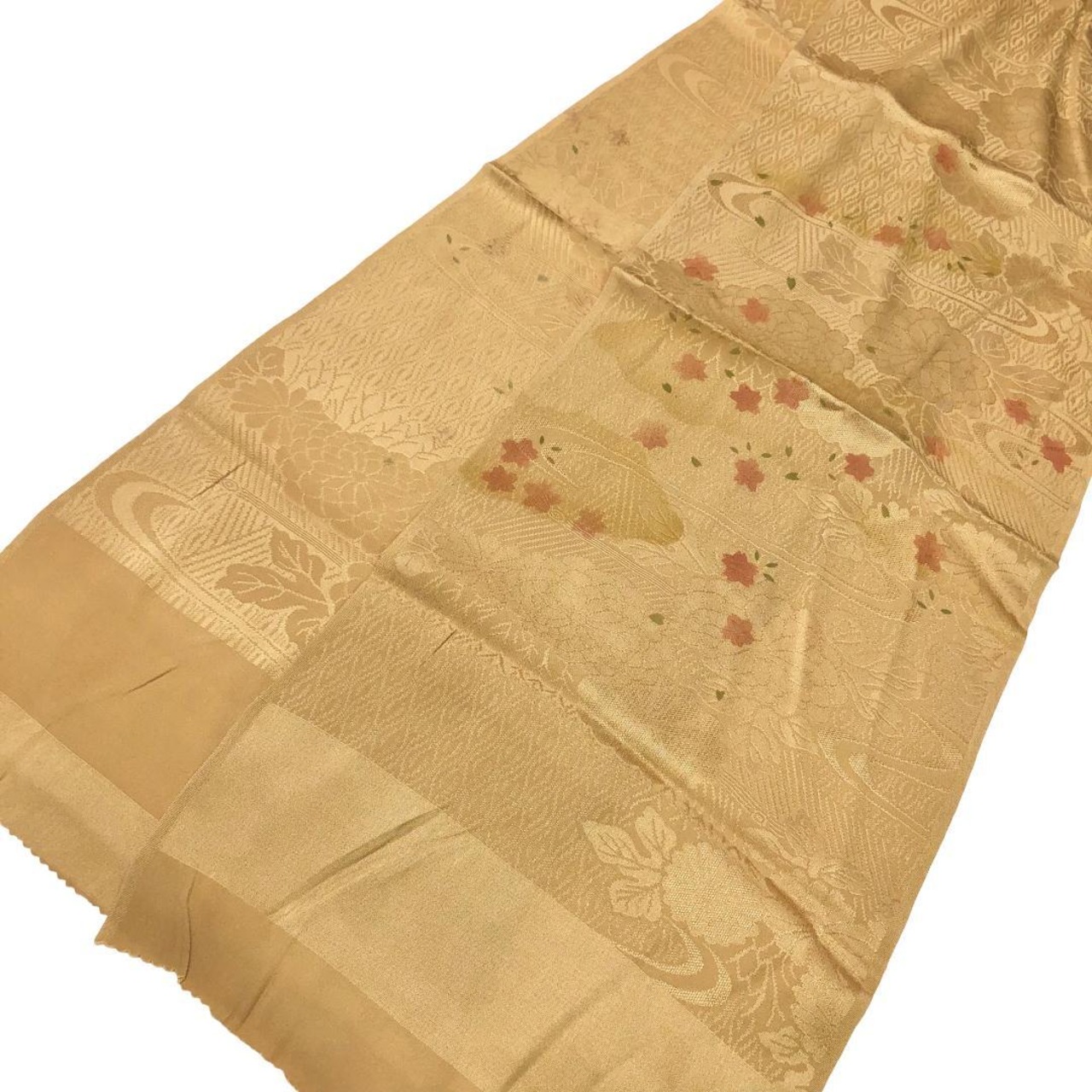 丁子色のお色味に花模様がデザインされた素敵なお品でございます。
