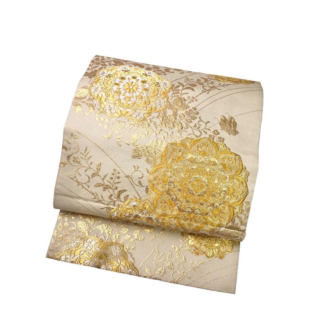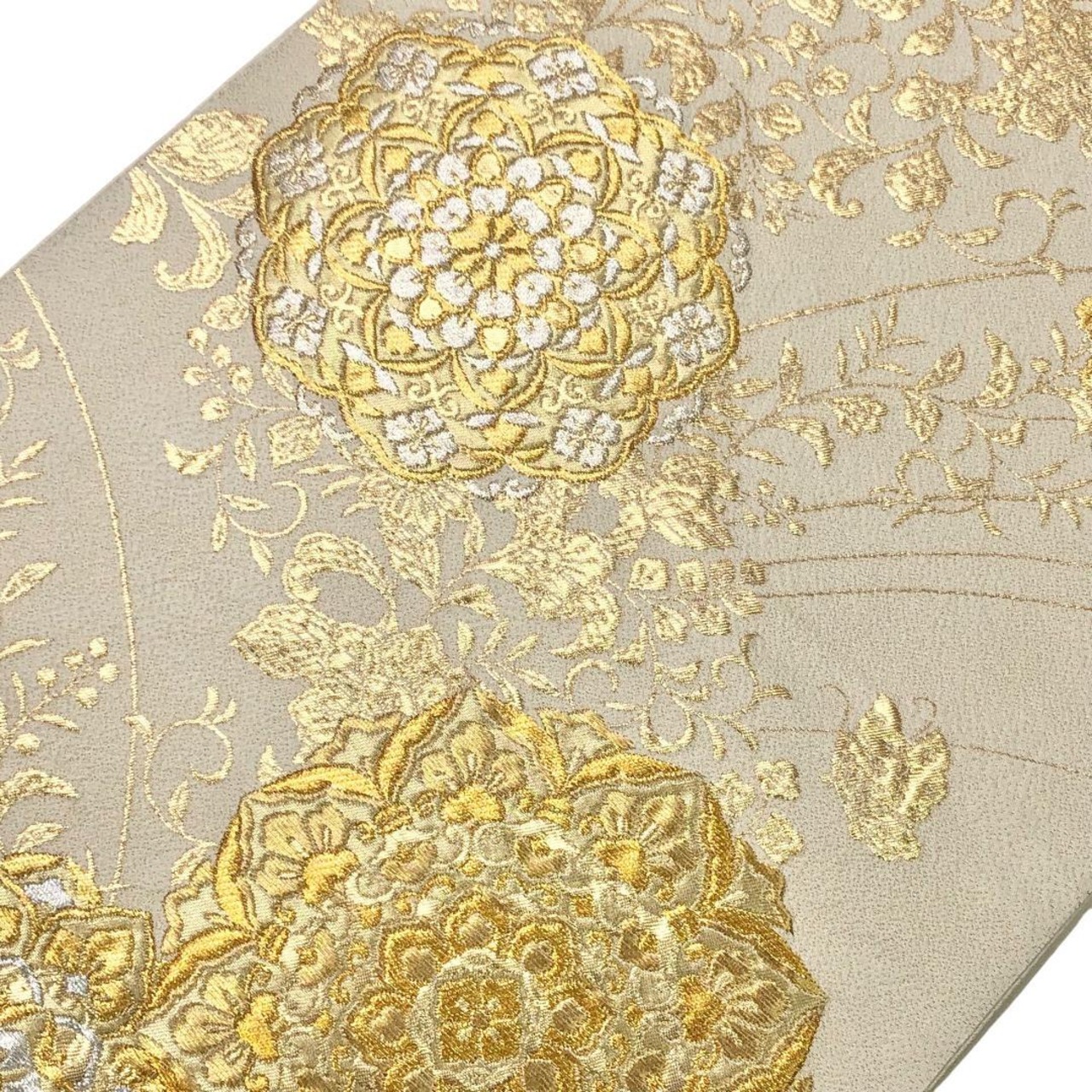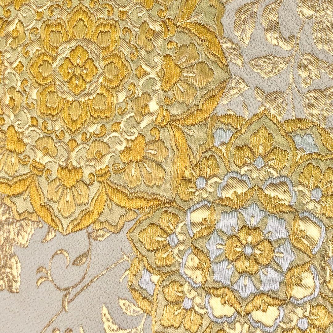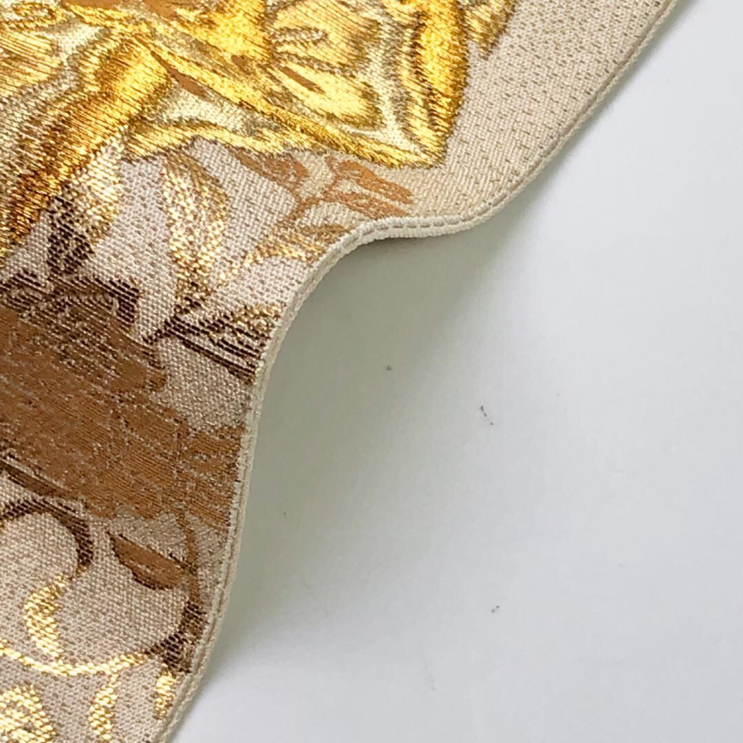 鳥の子色ベースのお色味に煌びやかな美しい華柄模様がデザインされた雰囲気の良い素敵なお品でございます。