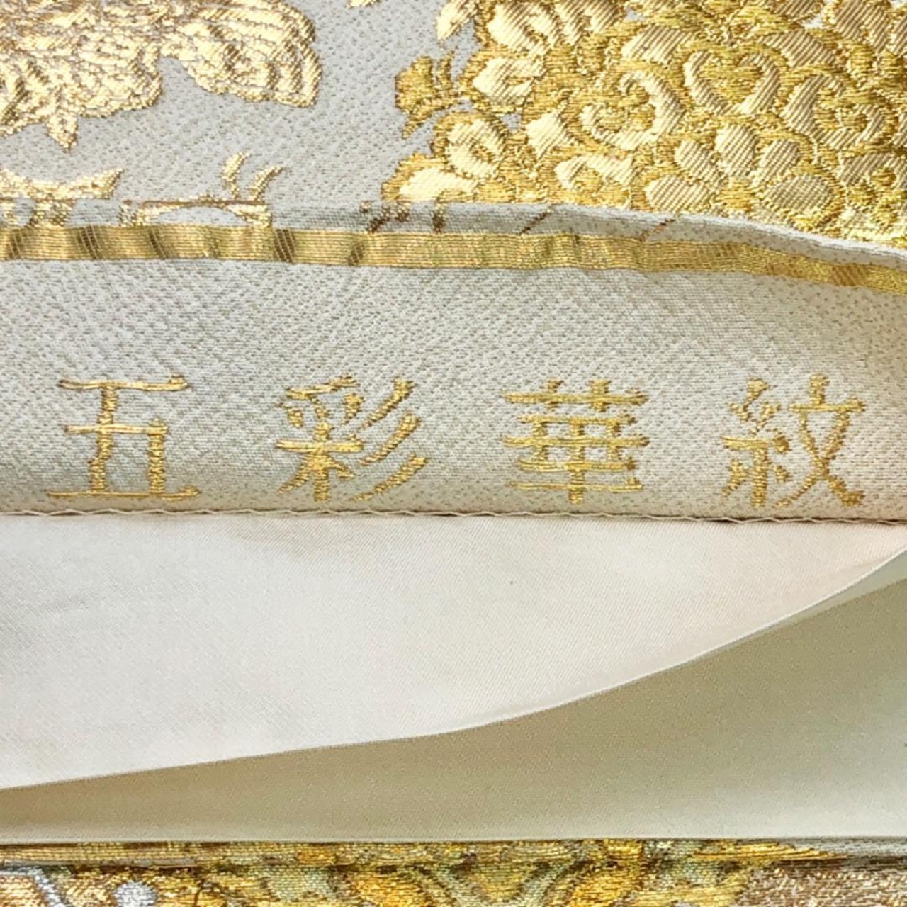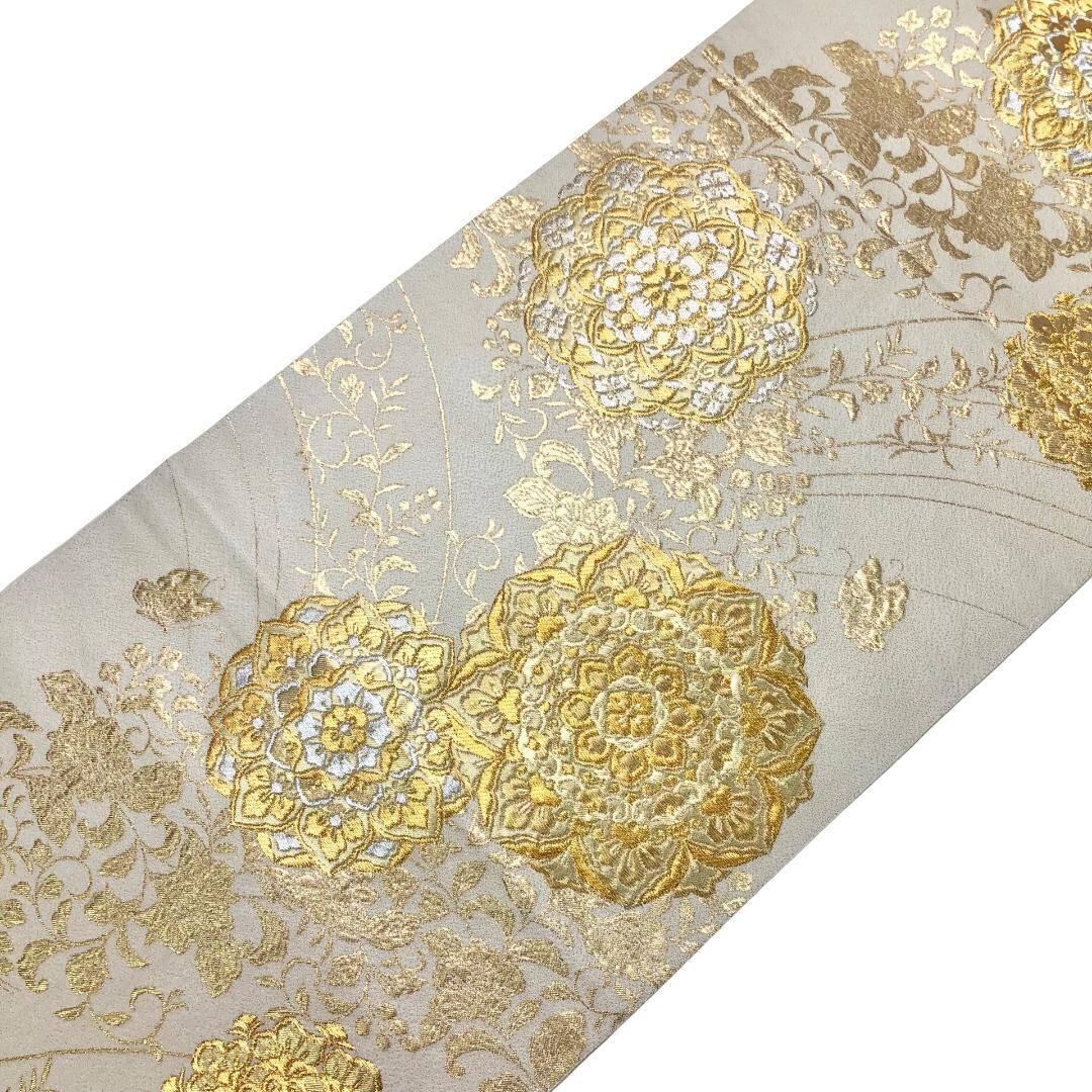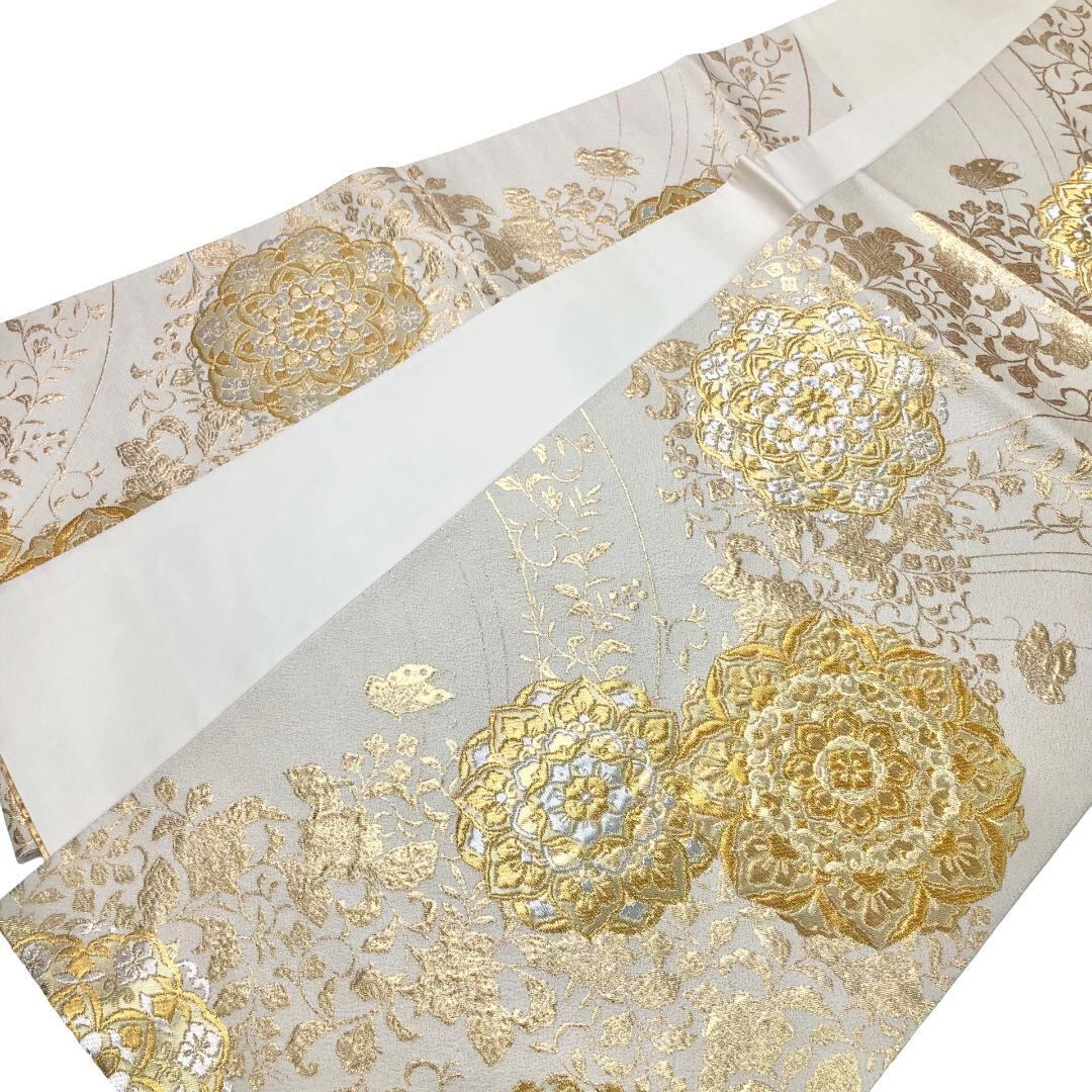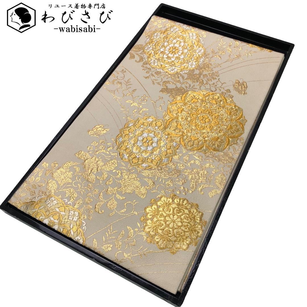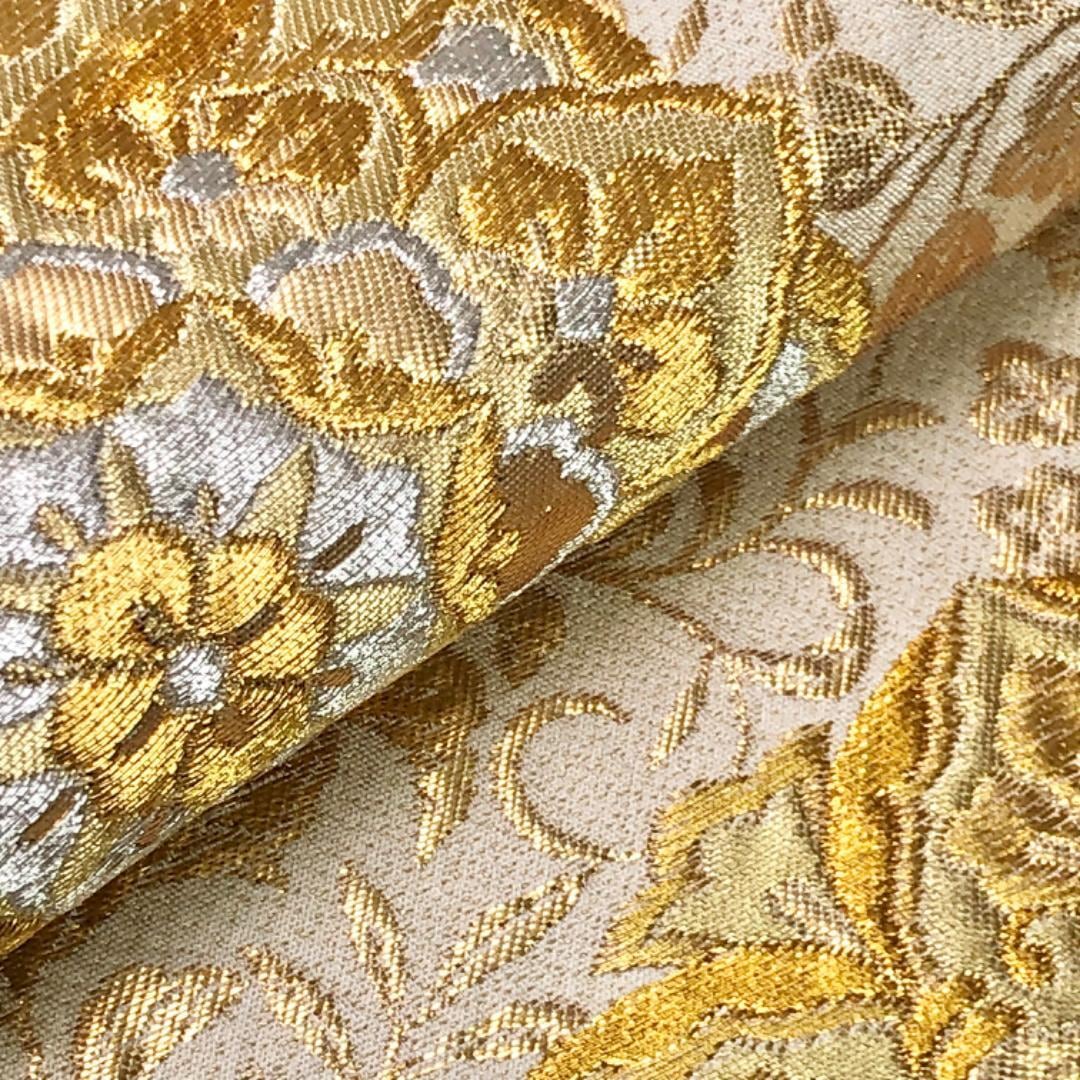 鳥の子色ベースのお色味に煌びやかな美しい華柄模様がデザインされた雰囲気の良い素敵なお品でございます。