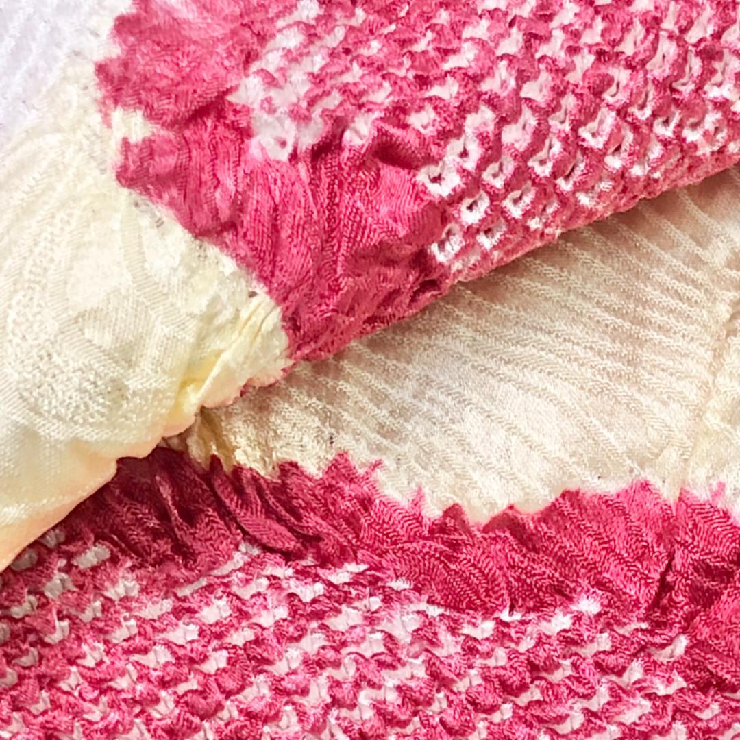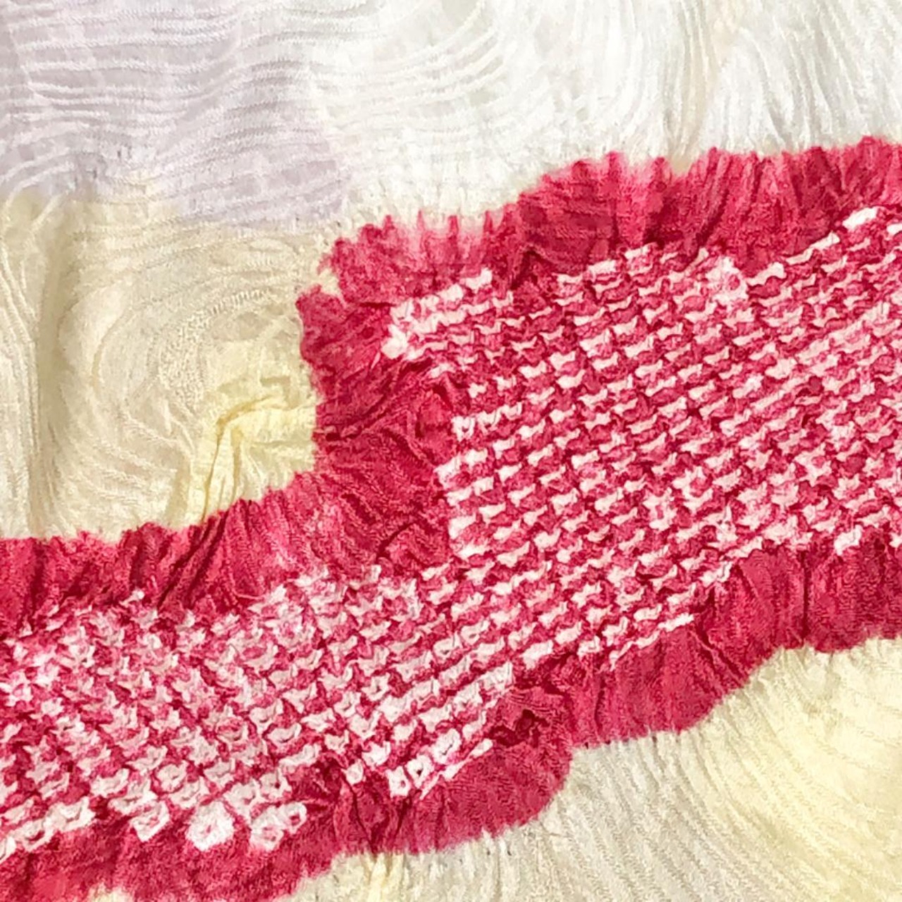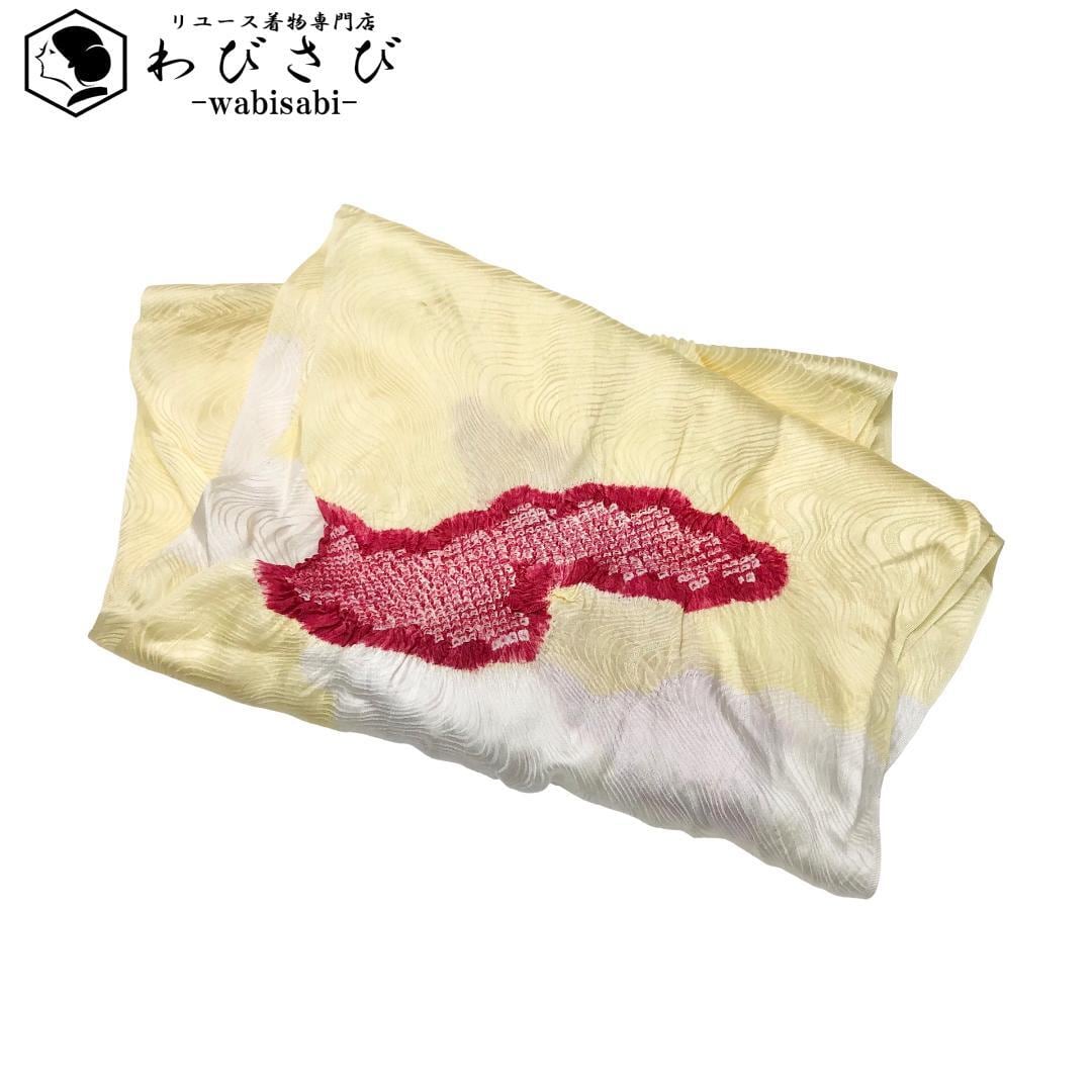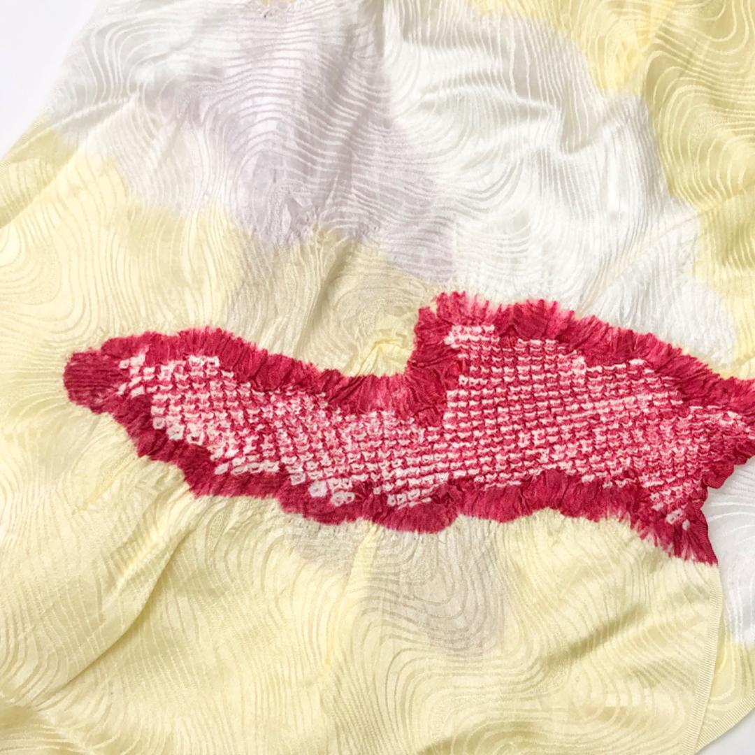 魚子黄色ベースのお色味に曲線、霞模様がデザインされた素敵なお品でございます。
