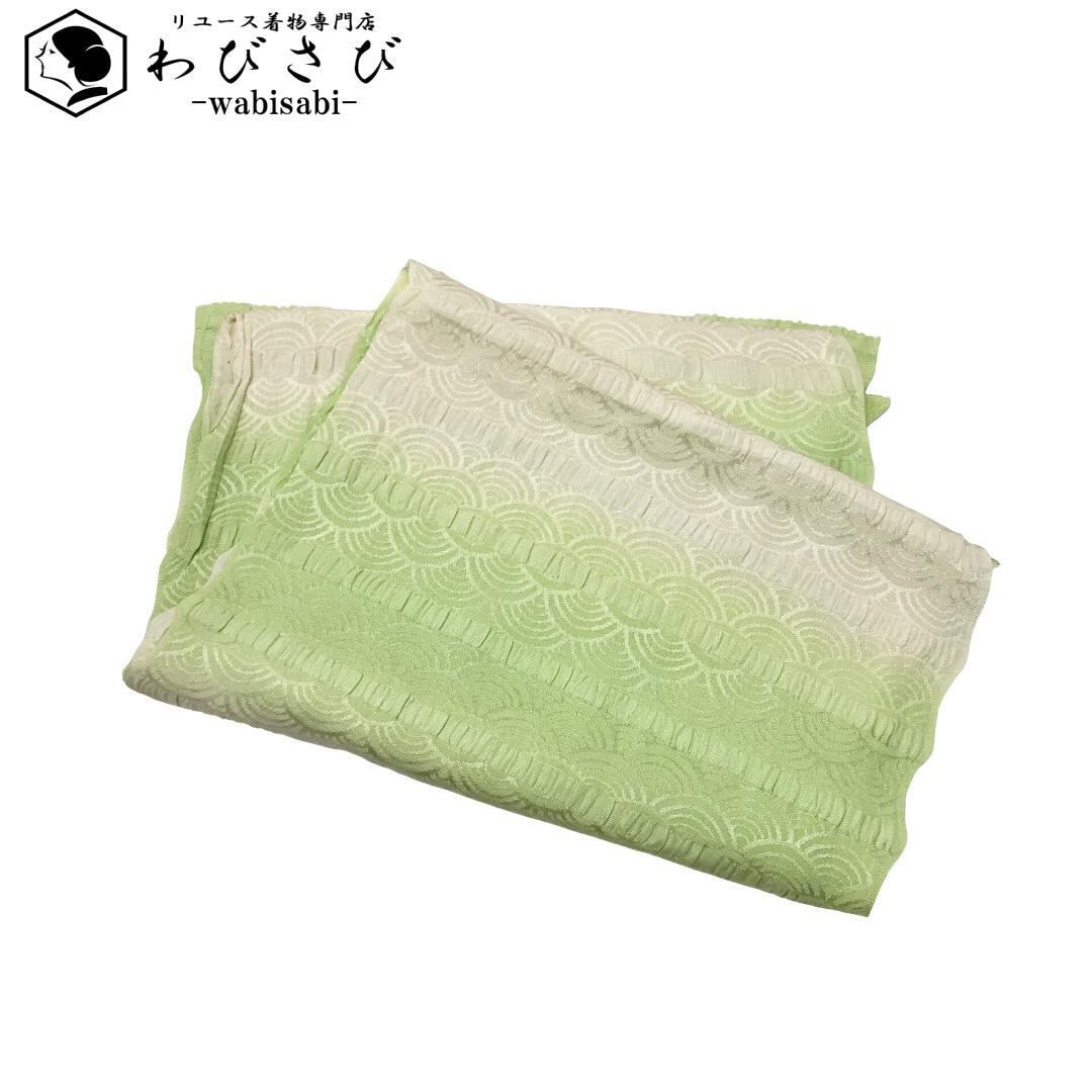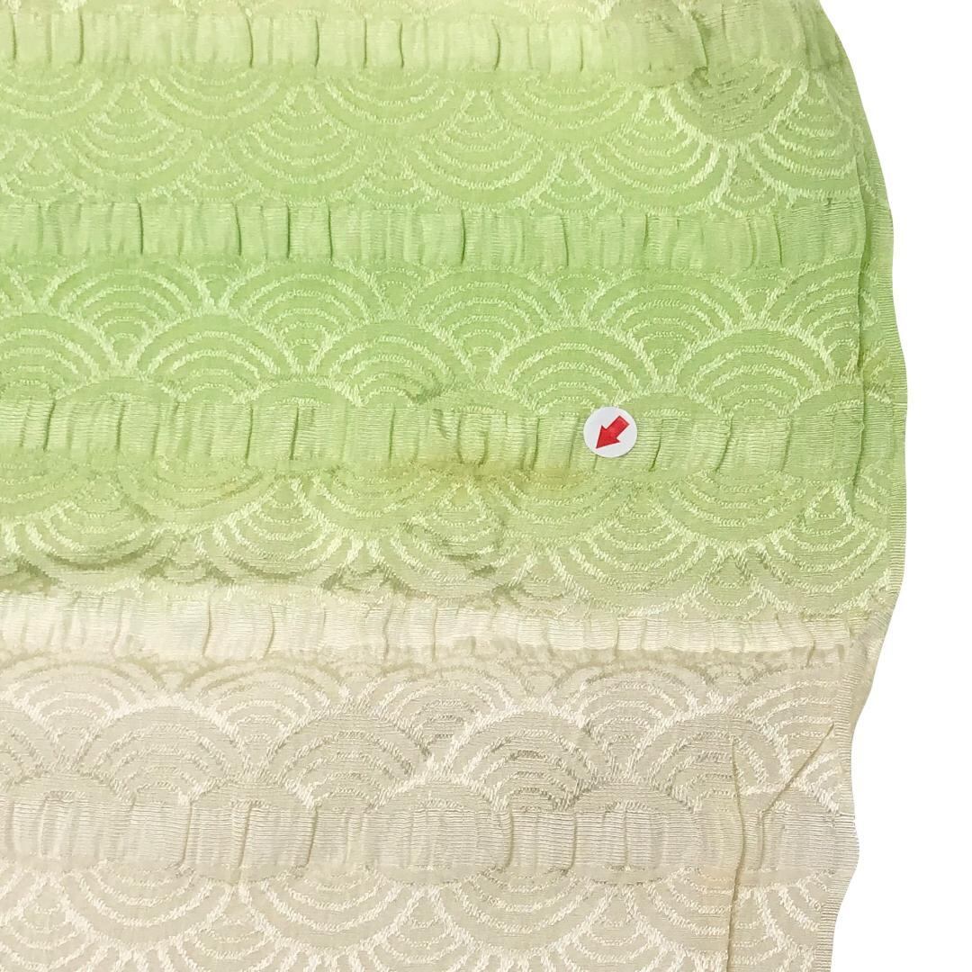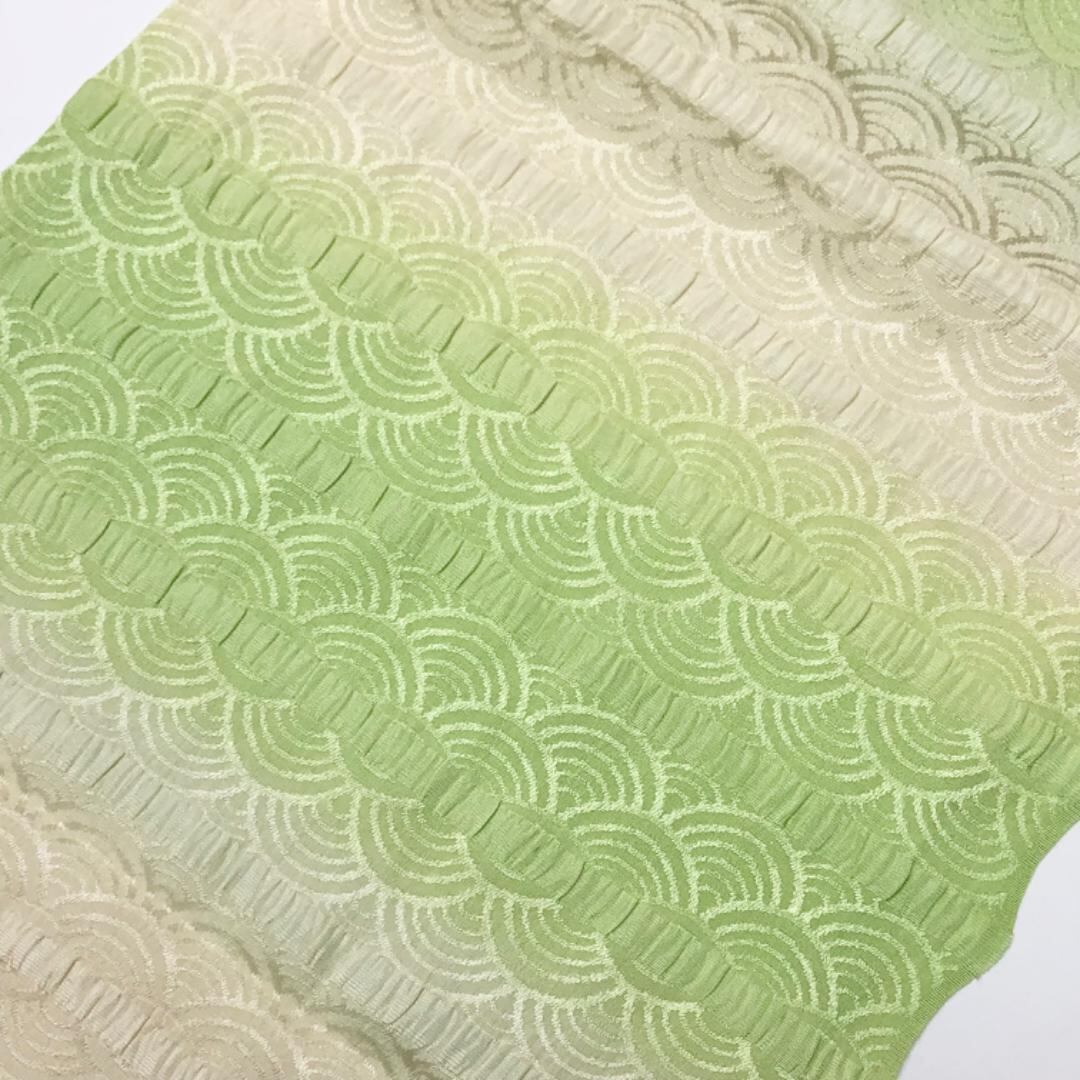 薄萌黄色ベースのグラデーションのお色味に青海波がデザインされた素敵なお品でございます。