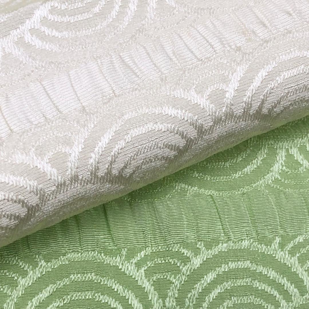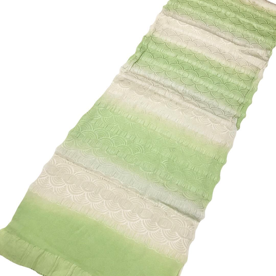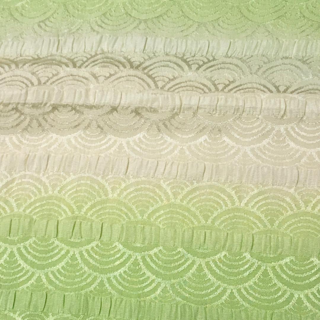 薄萌黄色ベースのグラデーションのお色味に青海波がデザインされた素敵なお品でございます。