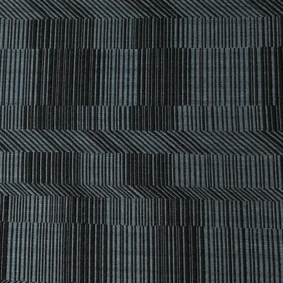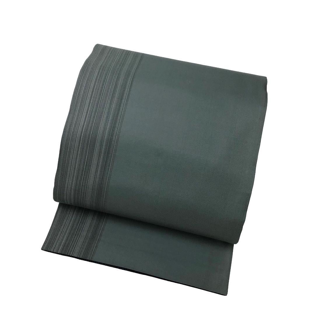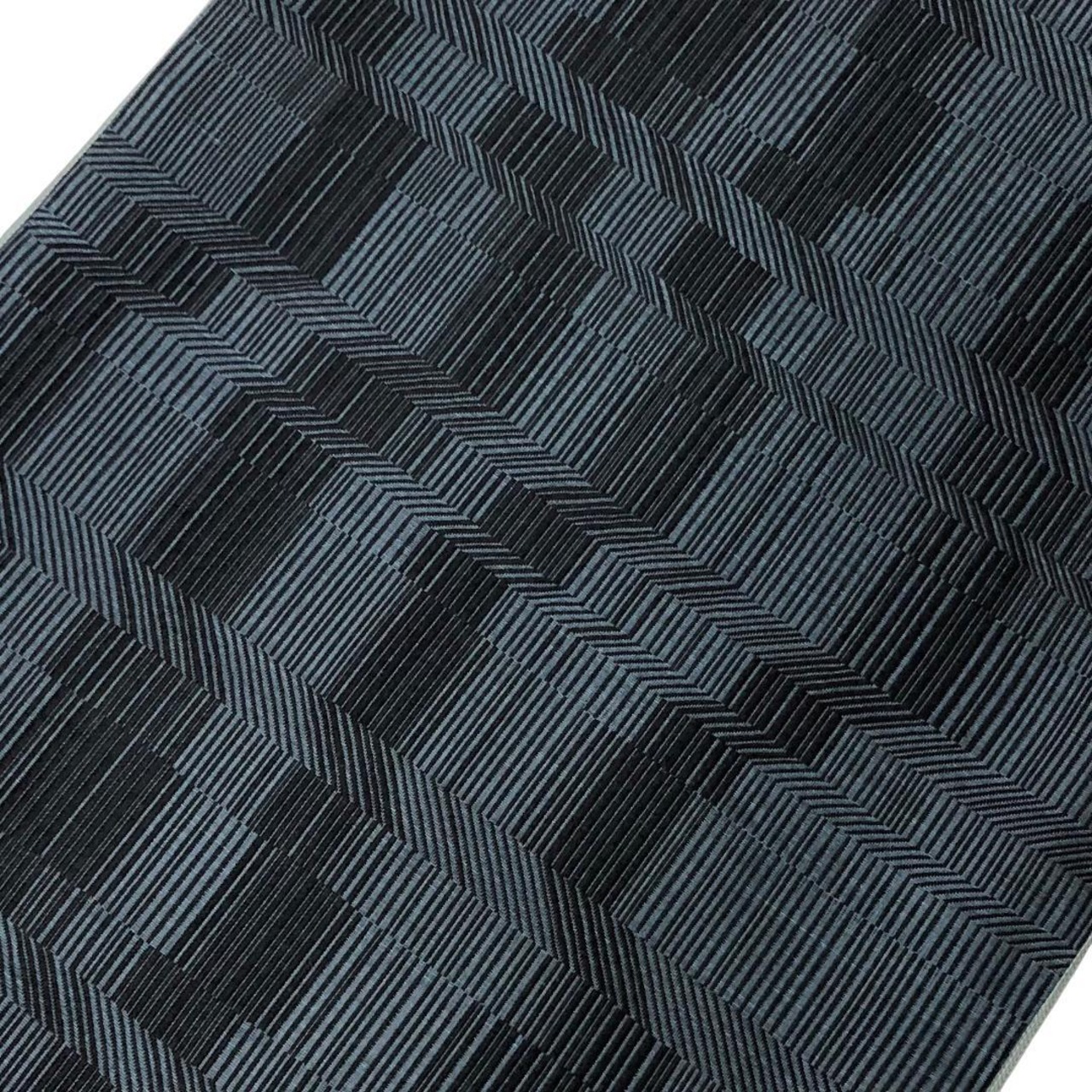 帯黒色ベースの落ち着いたお色味にモダンな織模様がデザインされた素敵なお品でございます。