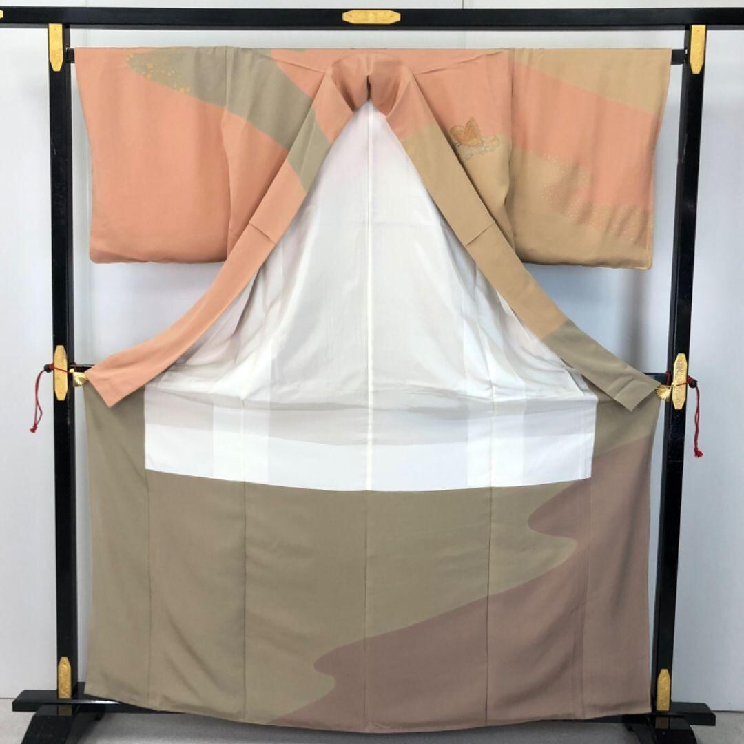 訪問着 刺繍柄 染分け 蝶々 花模様 亀甲柄 トールサイズ K-5632 着物 きもの kimono 和服 和装 中古 リサイクル着物 【送料無料】