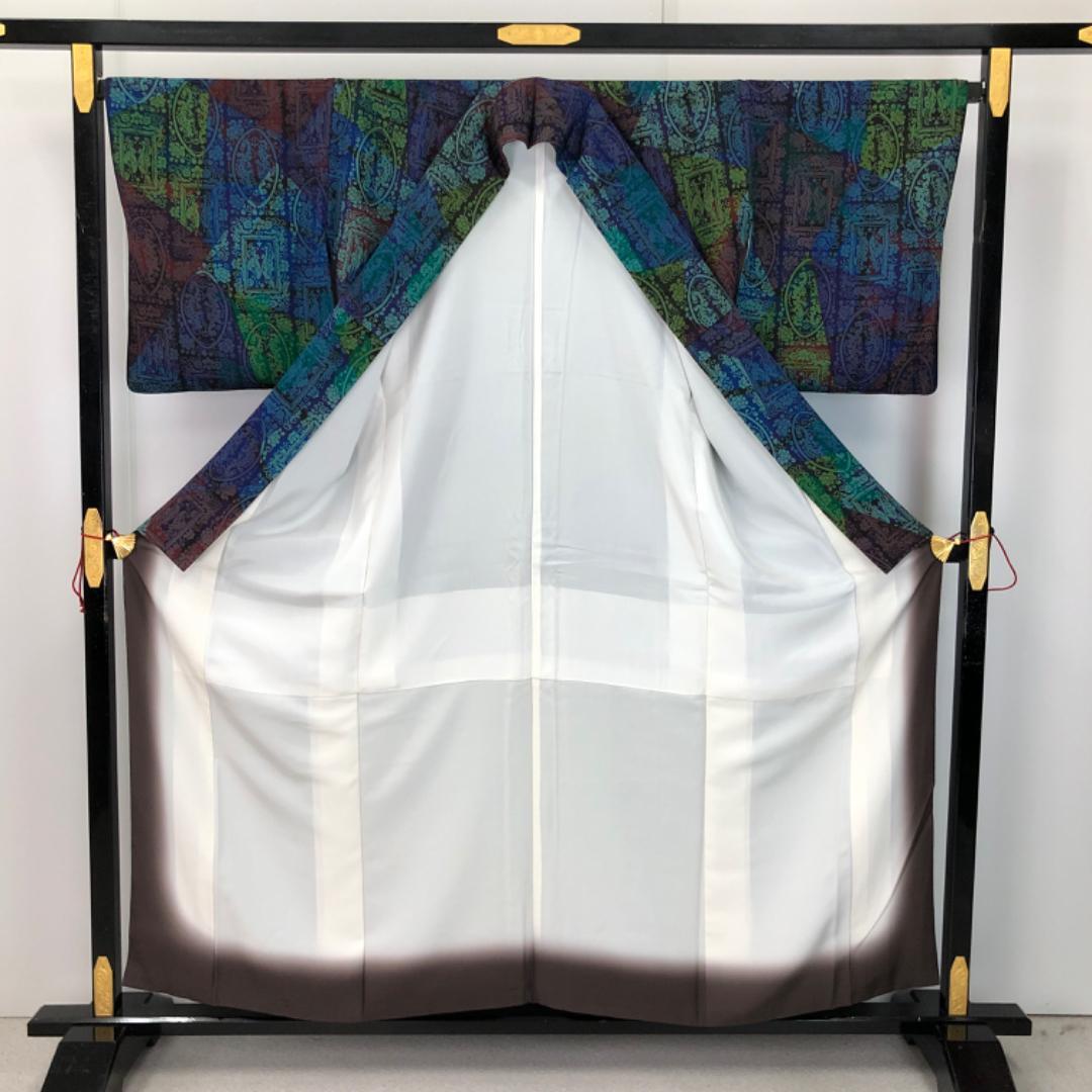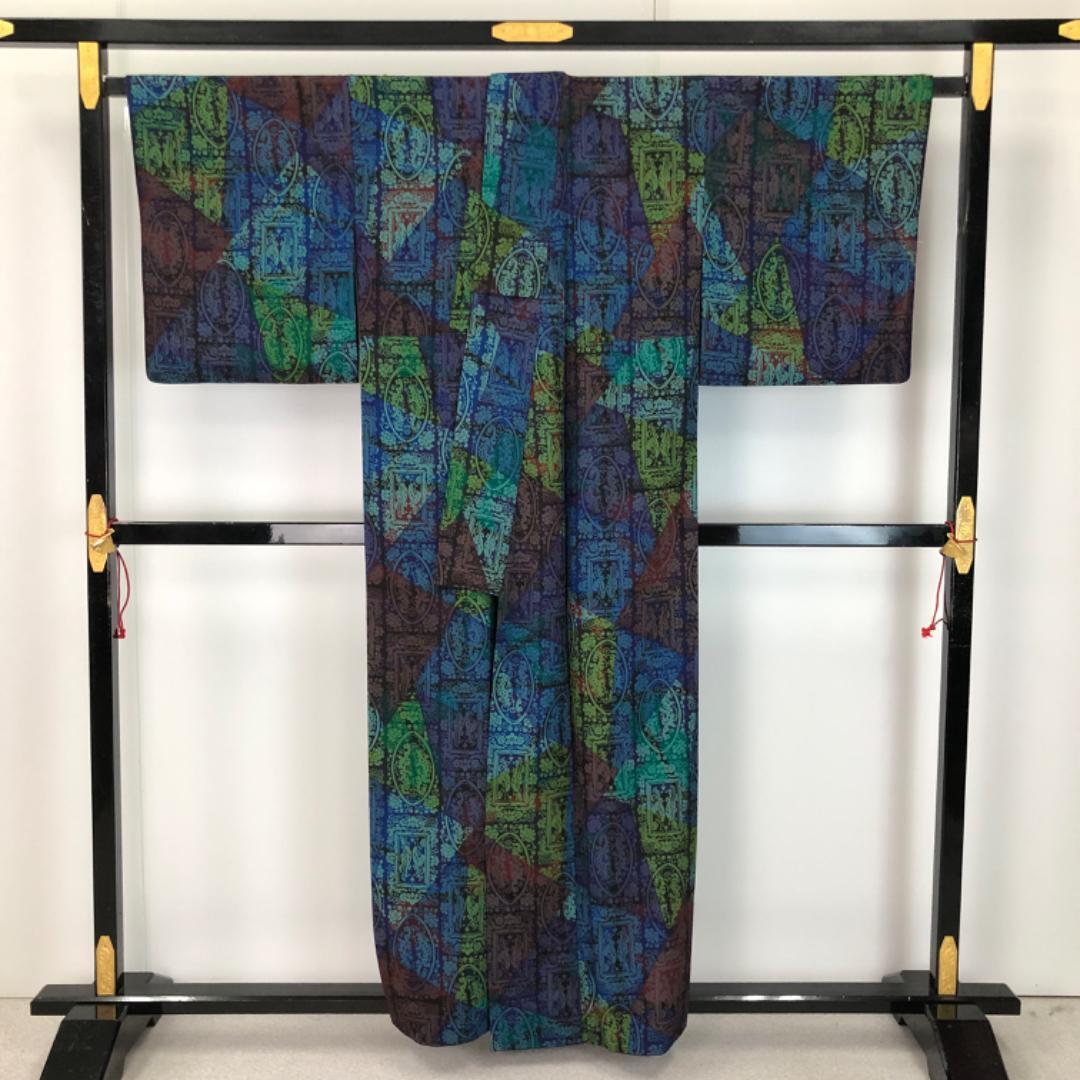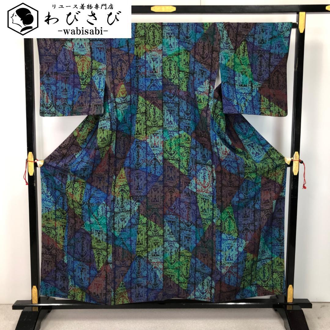 小紋 前田仁仙 京更紗 美しい色彩 縮緬 K-5596 着物 きもの kimono 和服 和装 中古 リサイクル着物 【送料無料】