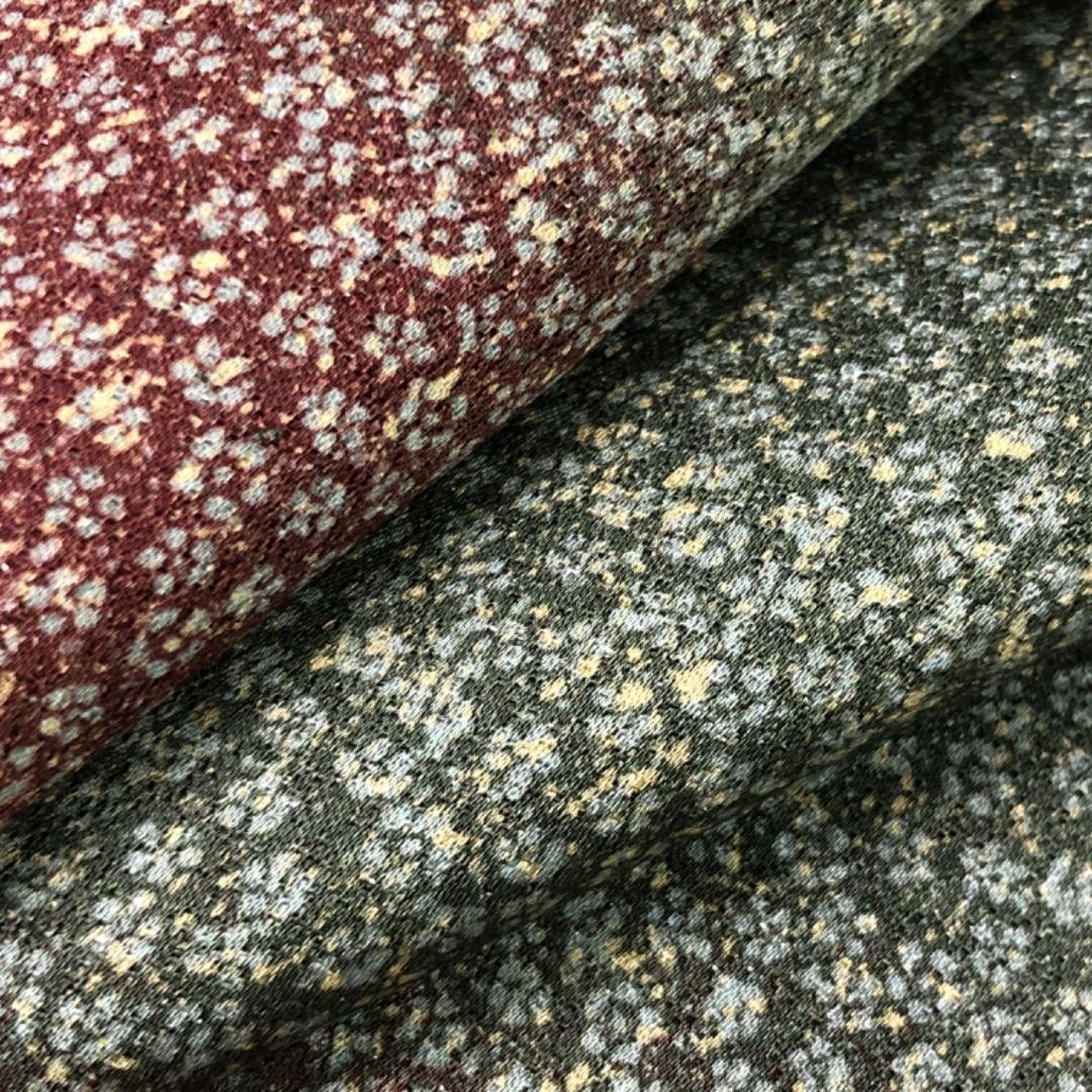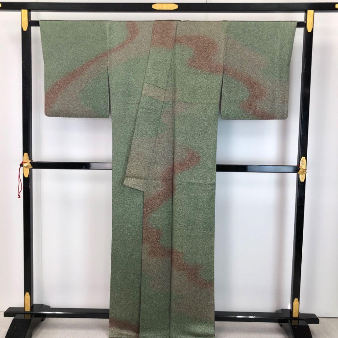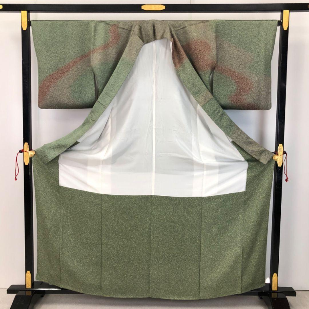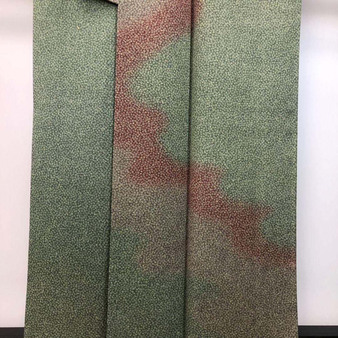 老竹色ベースのお色味に可愛らしい小花柄に霞模様の色彩がデザインされた雰囲気の良い素敵なお品でございます。