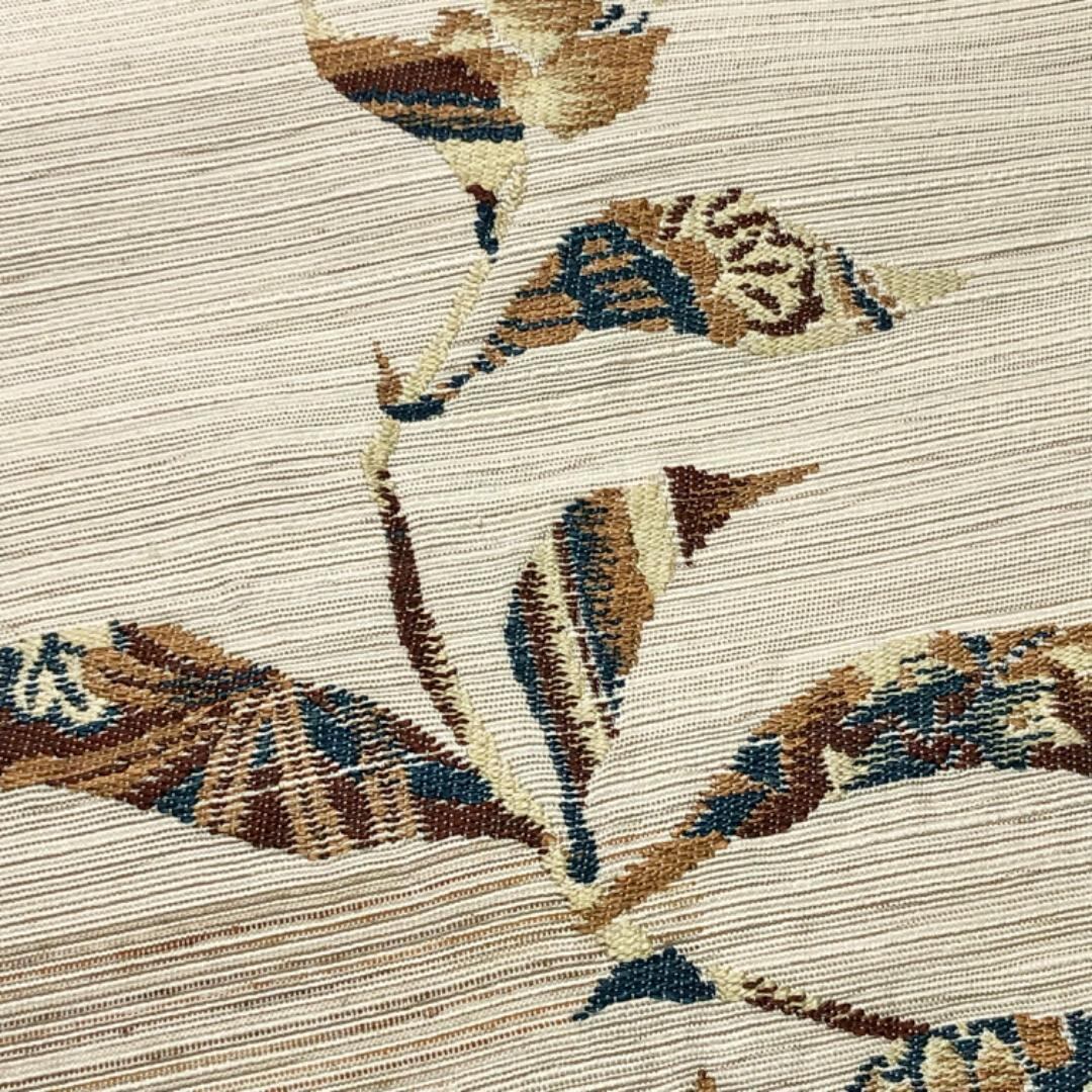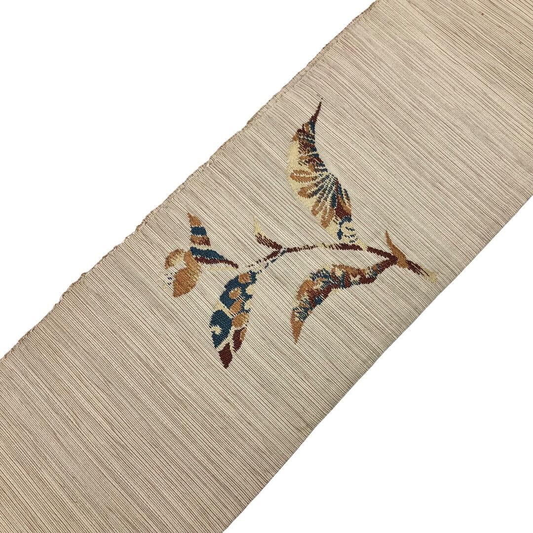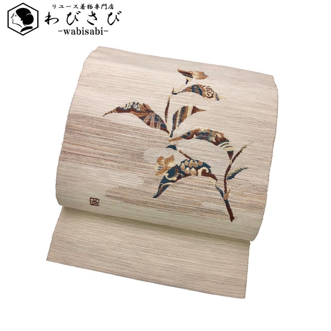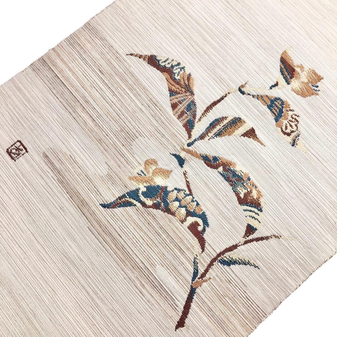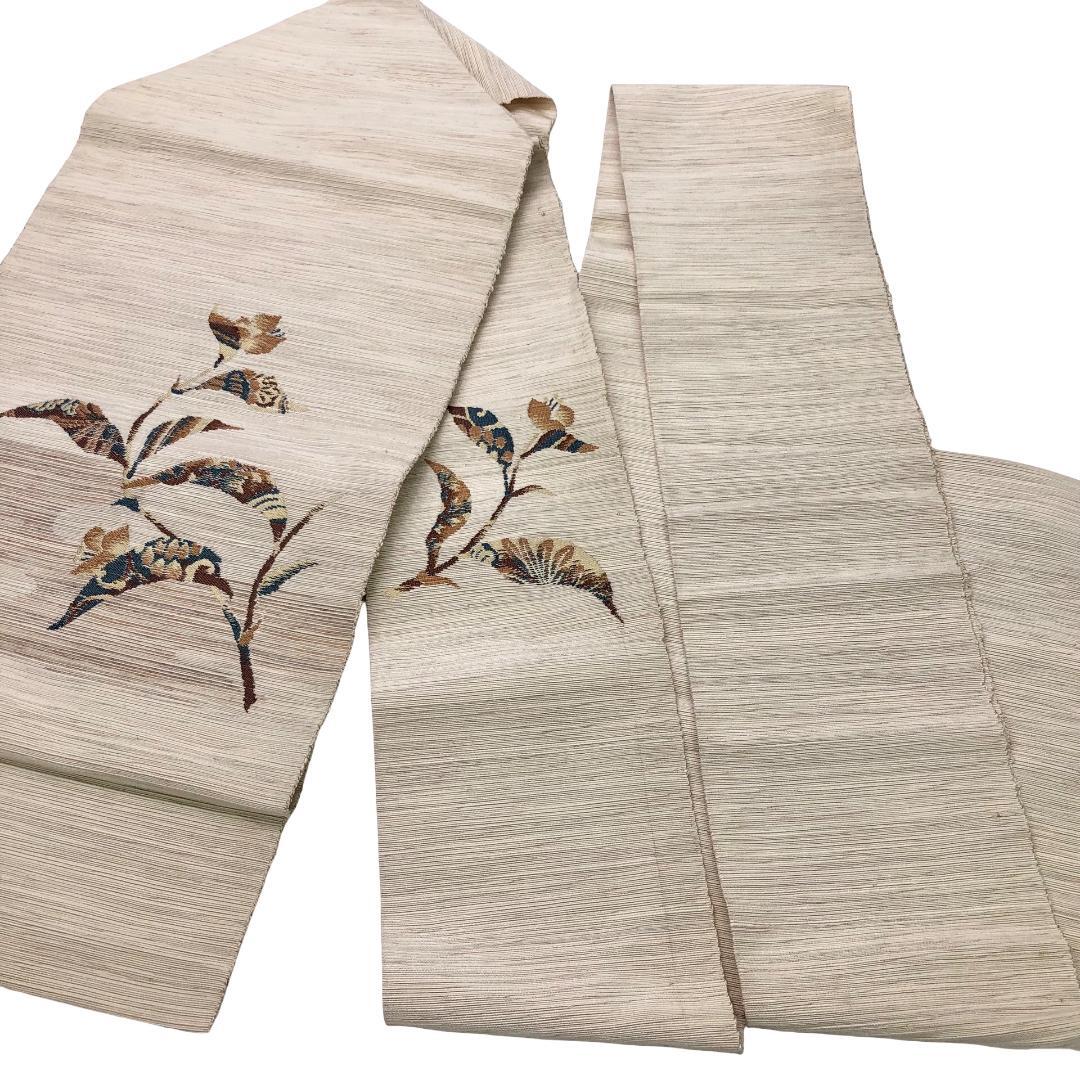 生成色のお色味に抽象枝葉模様の柄裄がデザインされた雰囲気の良い素敵なお品でございます。