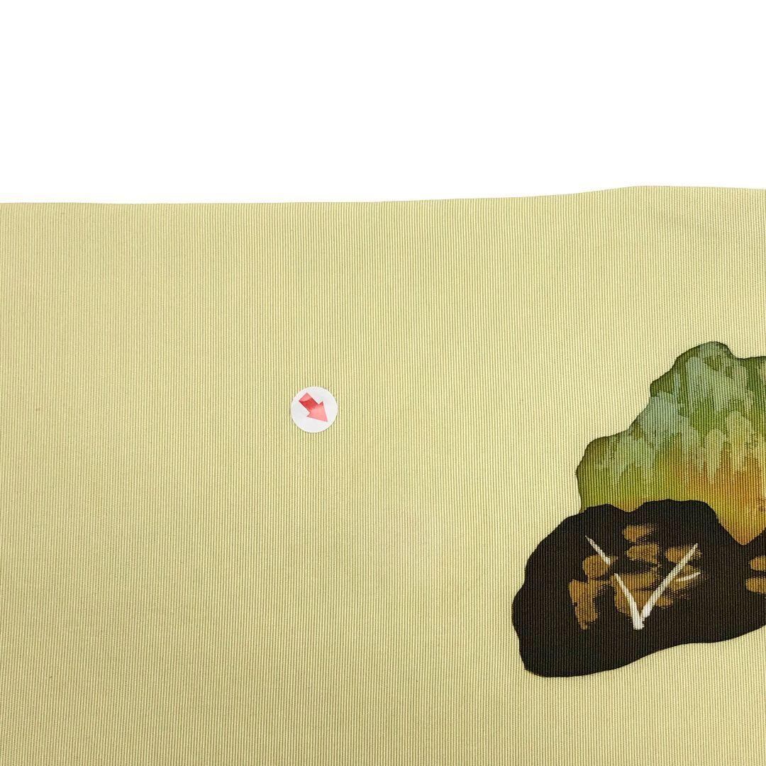 硫黄色のお色味の塩瀬に雰囲気の良い風景柄がデザインされた素敵なお品でございます。