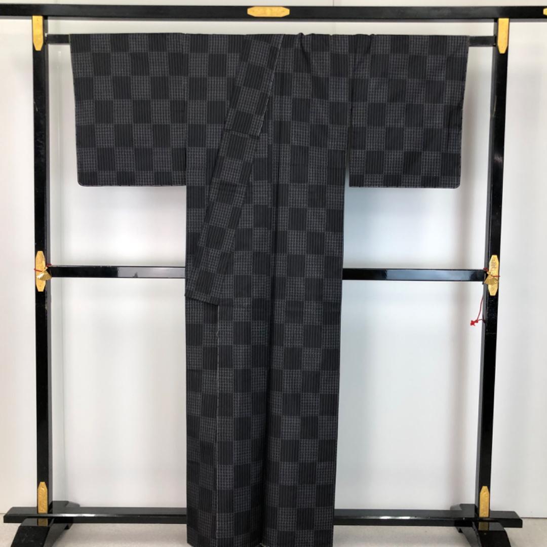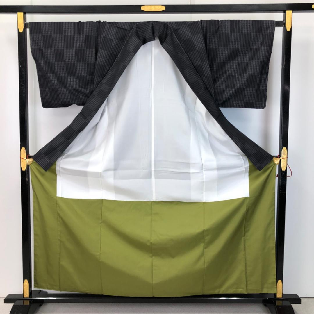 落ち着きあるお色味、市松模様の柄裄がデザインされた雰囲気の良い素敵なお品でございます。