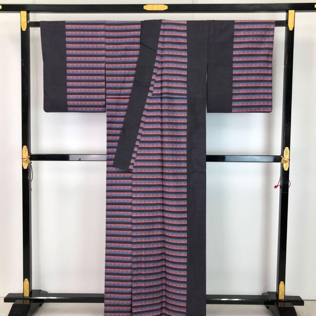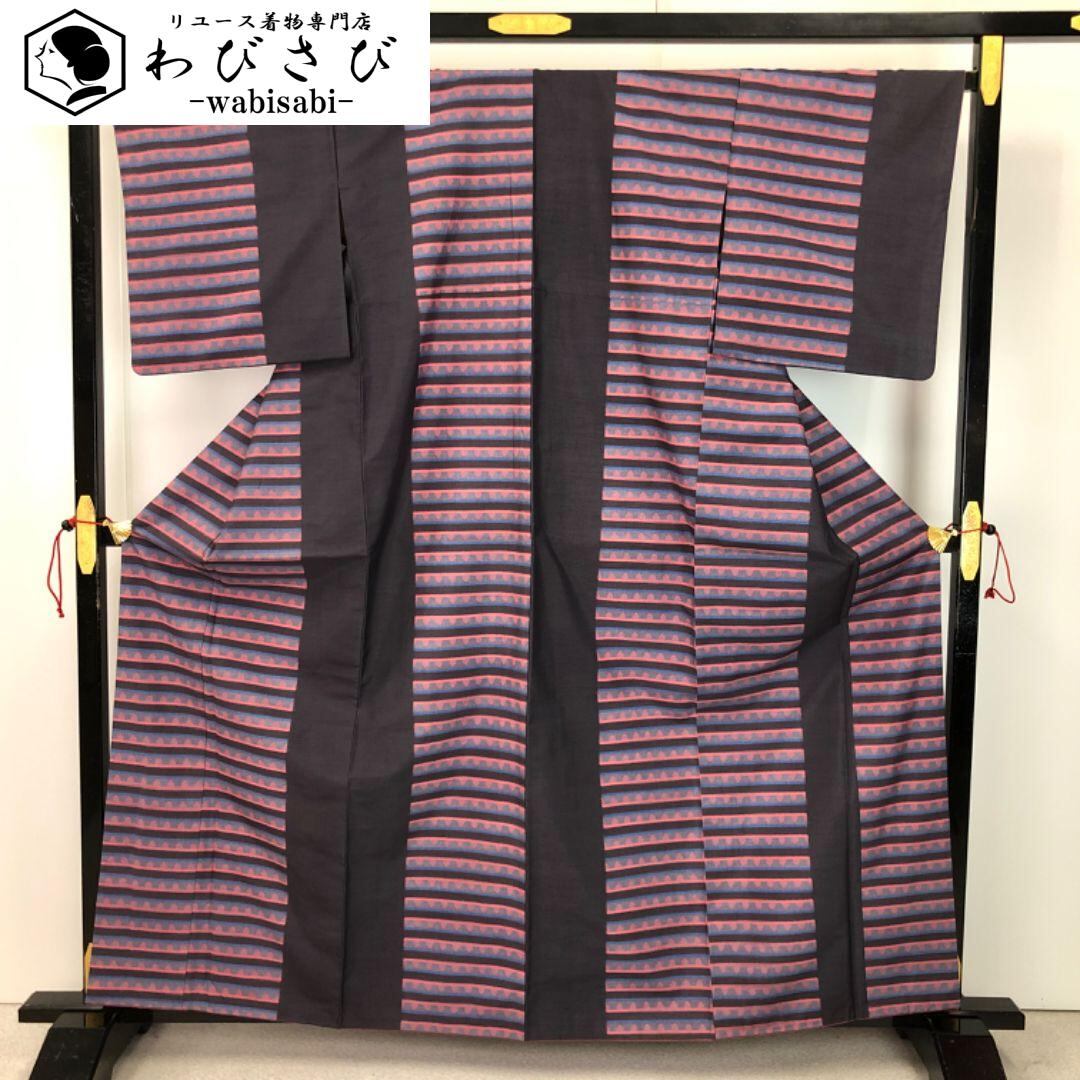 紬着物 抽象横段模様 藤煤竹色 K-5614 着物 きもの kimono 和服 和装 中古 リサイクル着物 【送料無料】