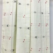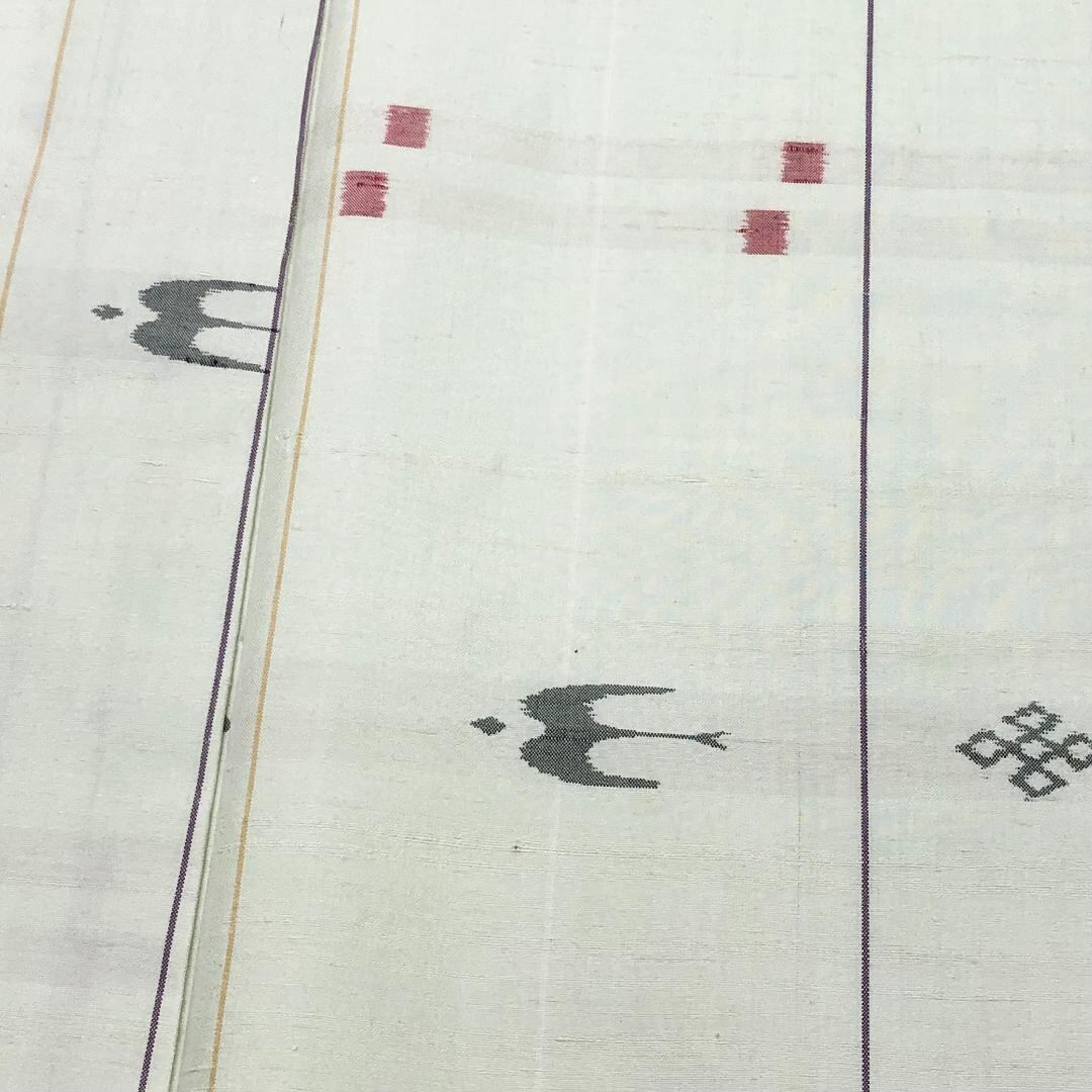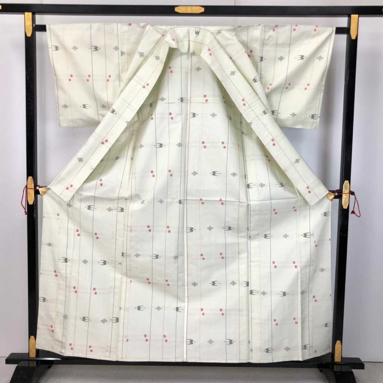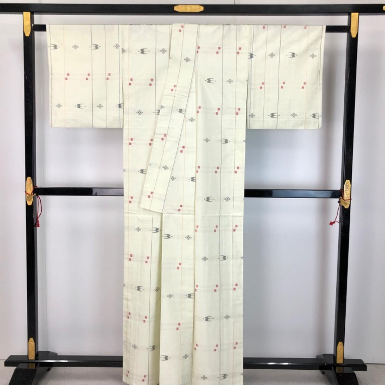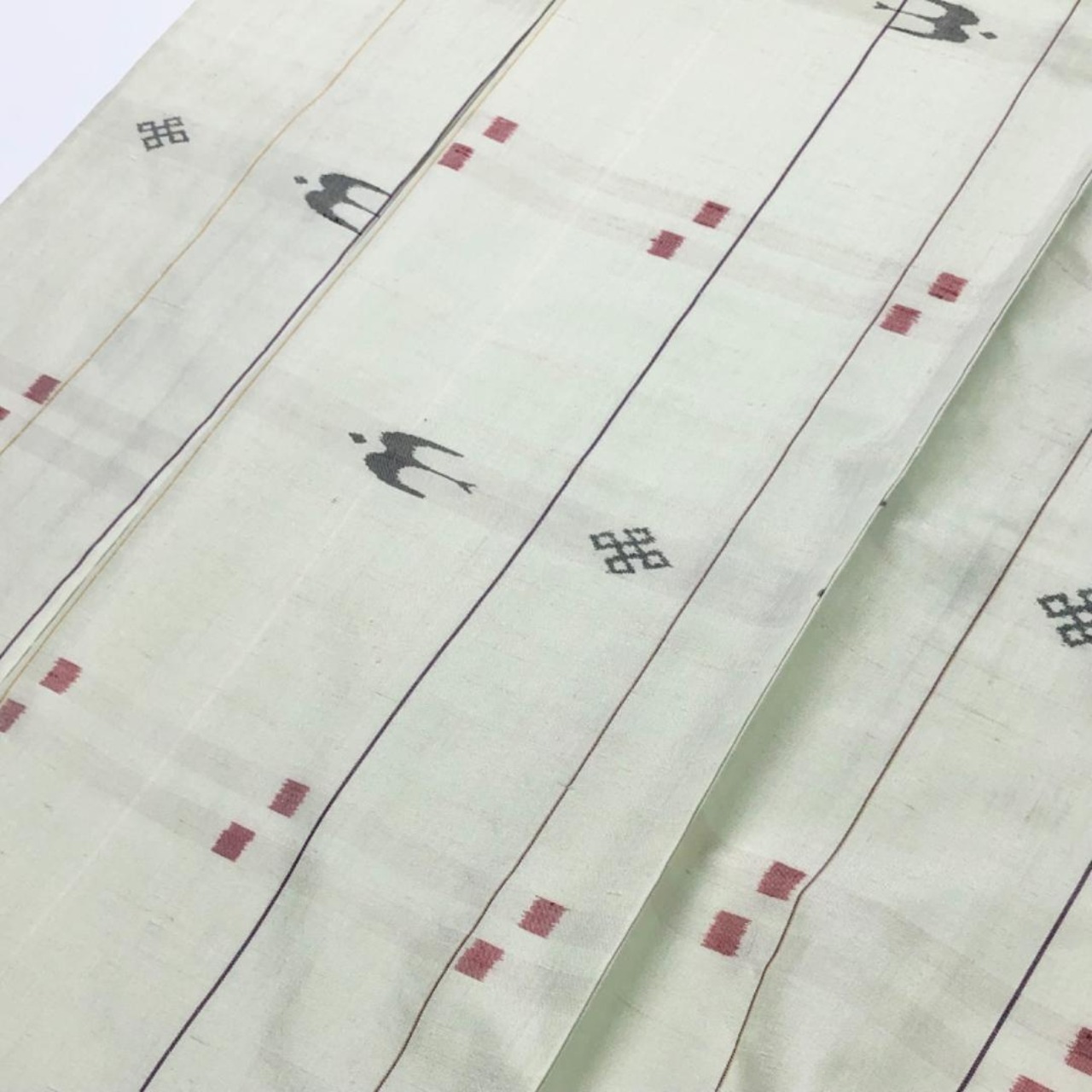 卯の花色の上品なお色味に縦縞、琉球柄がデザインされた雰囲気の良い素敵なお品でございます。