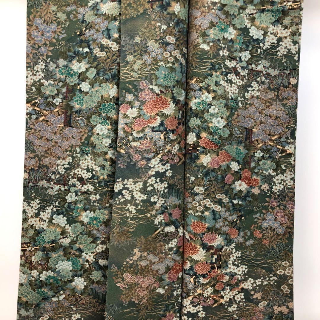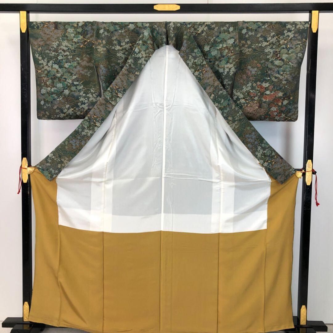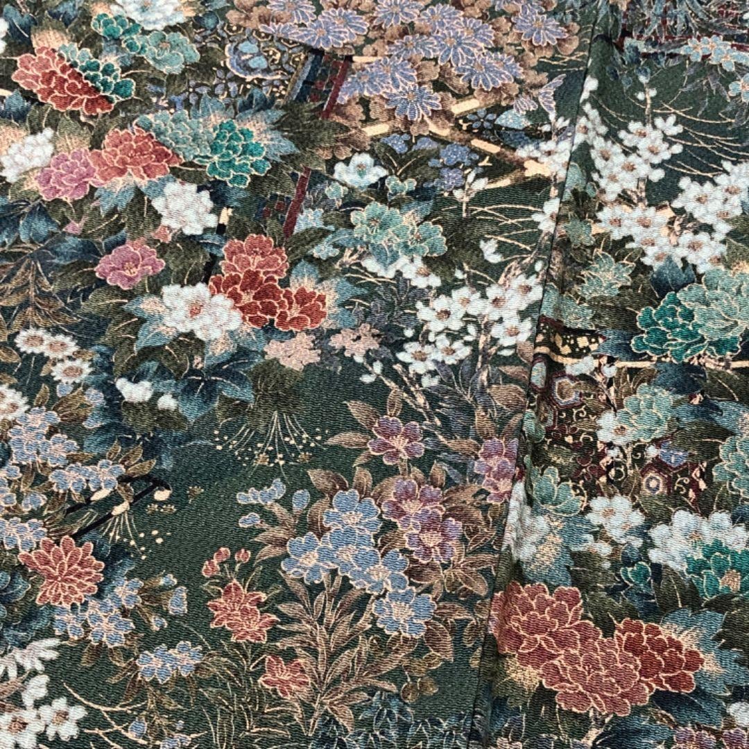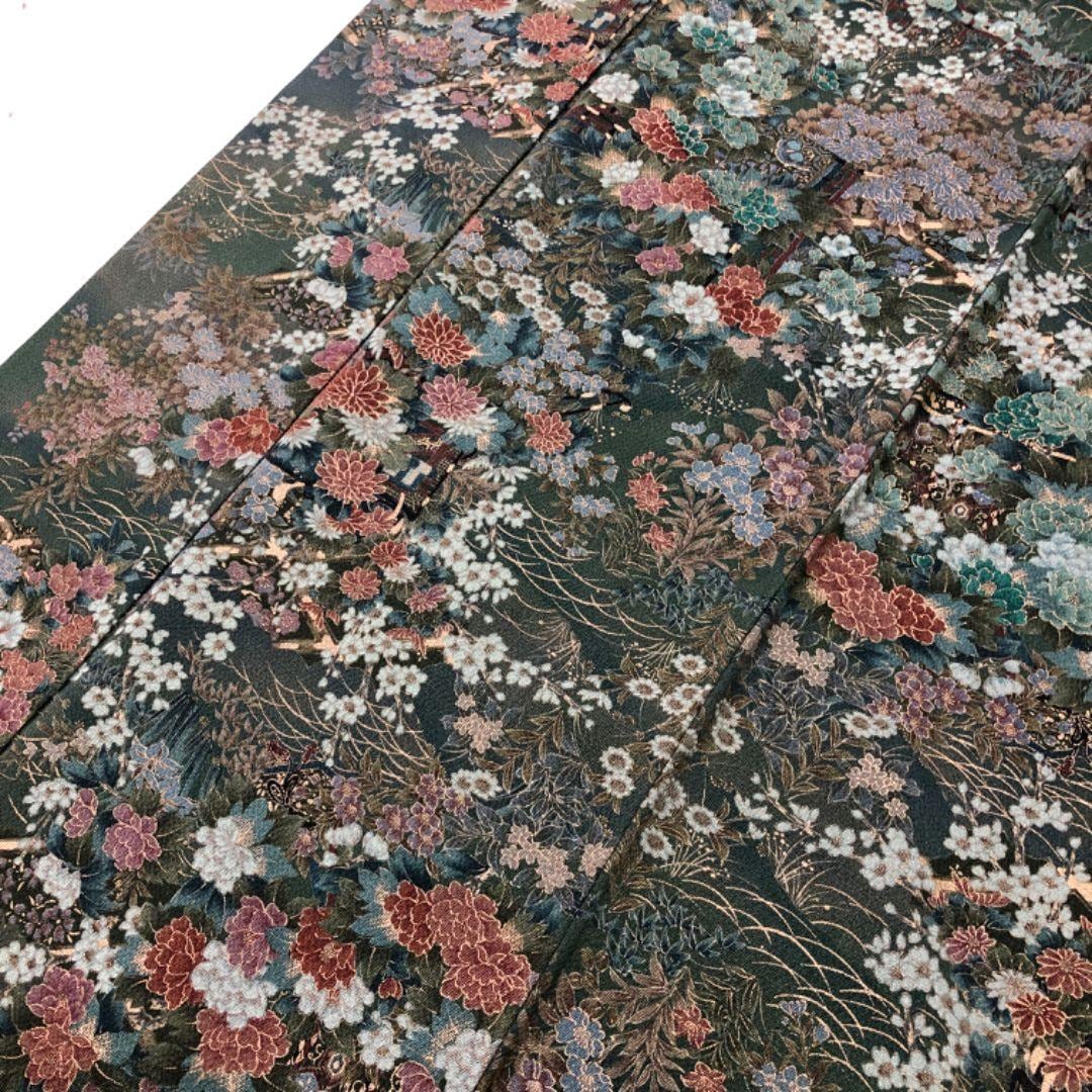 小紋 美しい花模様 金彩 縮緬 薩摩納戸色 K-5628 着物 きもの kimono 和服 和装 中古 リサイクル着物 【送料無料】