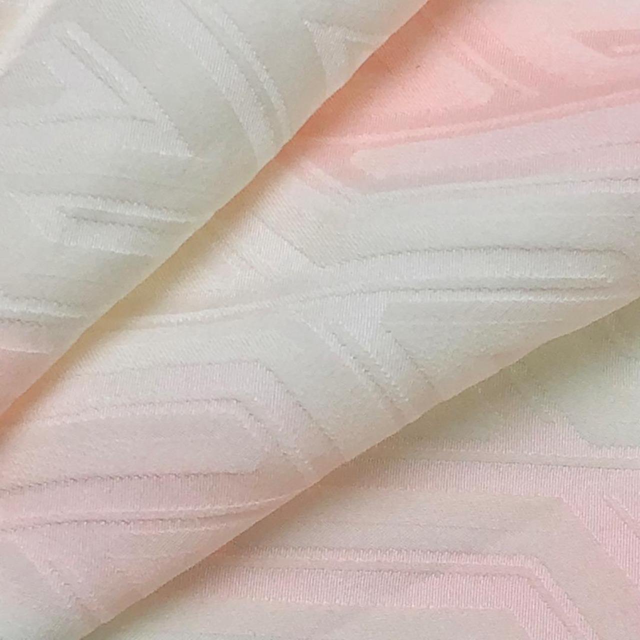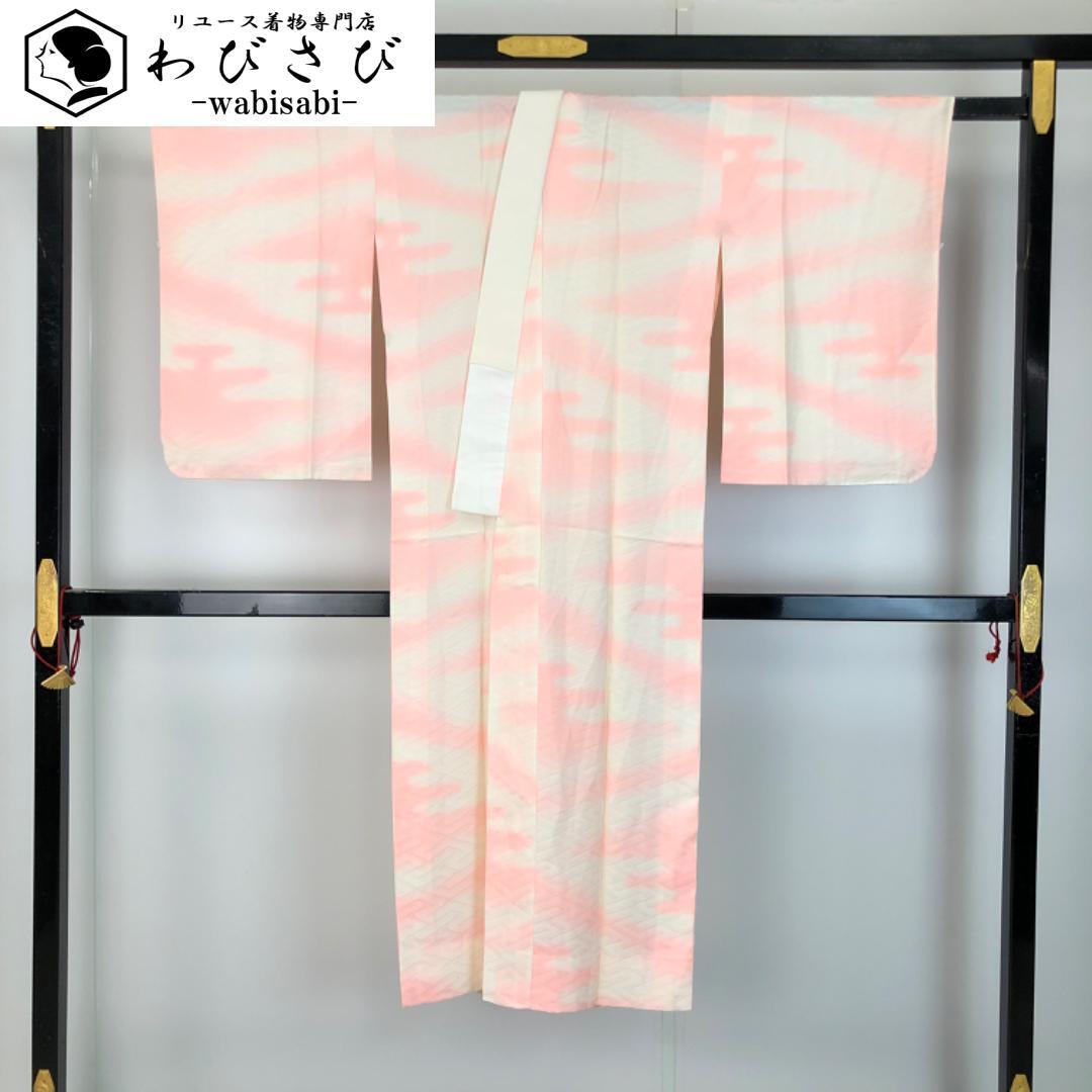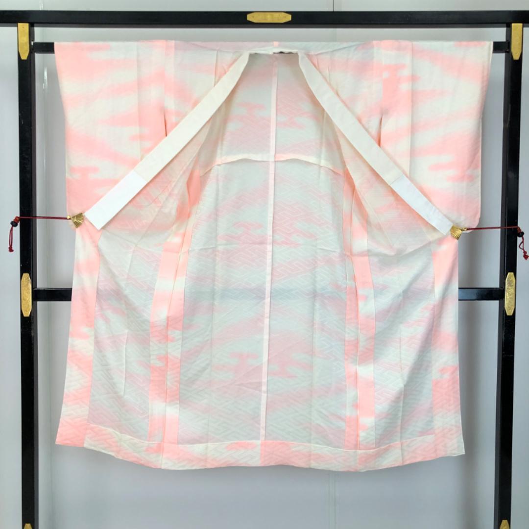 乙女色ベースの暈しのお色味に紗綾形の柄裄がデザインされた素敵なお品でございます。