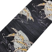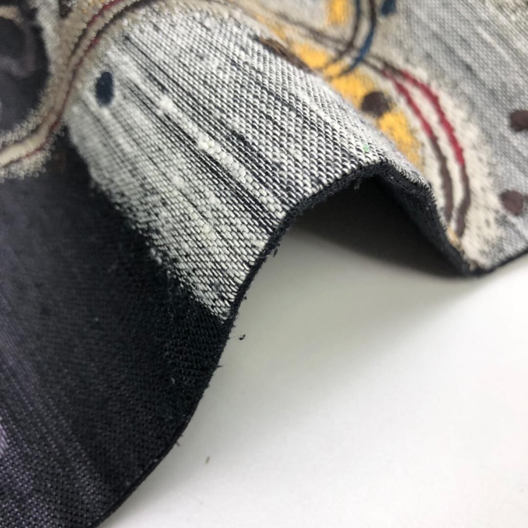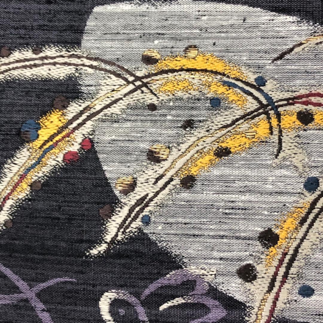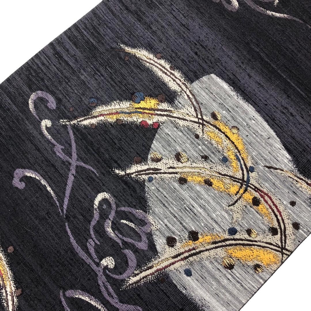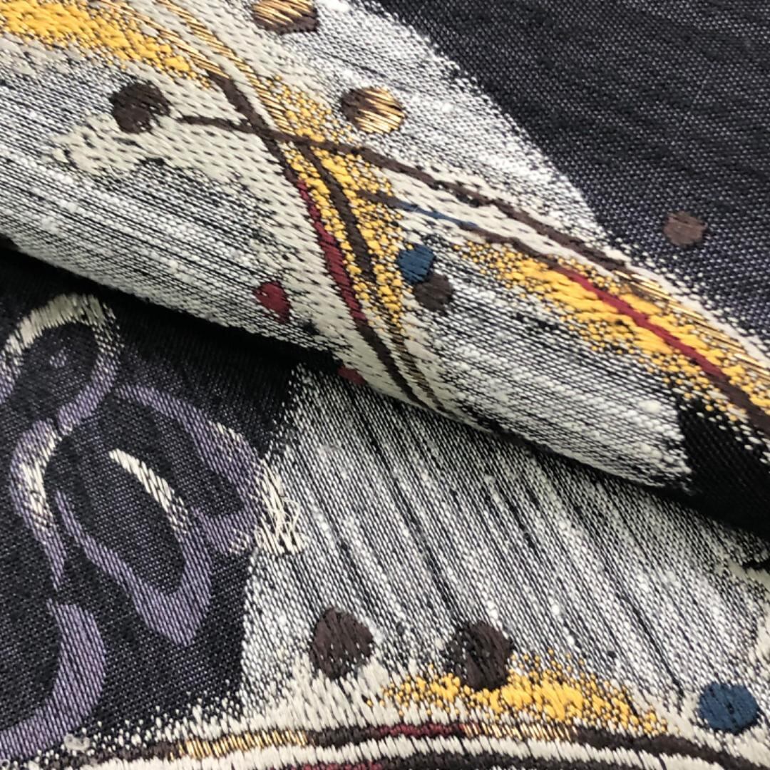鶴の黒羽色の落ち着いたお色味、抽象的な月にうさぎ、葉模様がデザインされた雰囲気の良い素敵な柄裄のお品でございます。