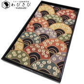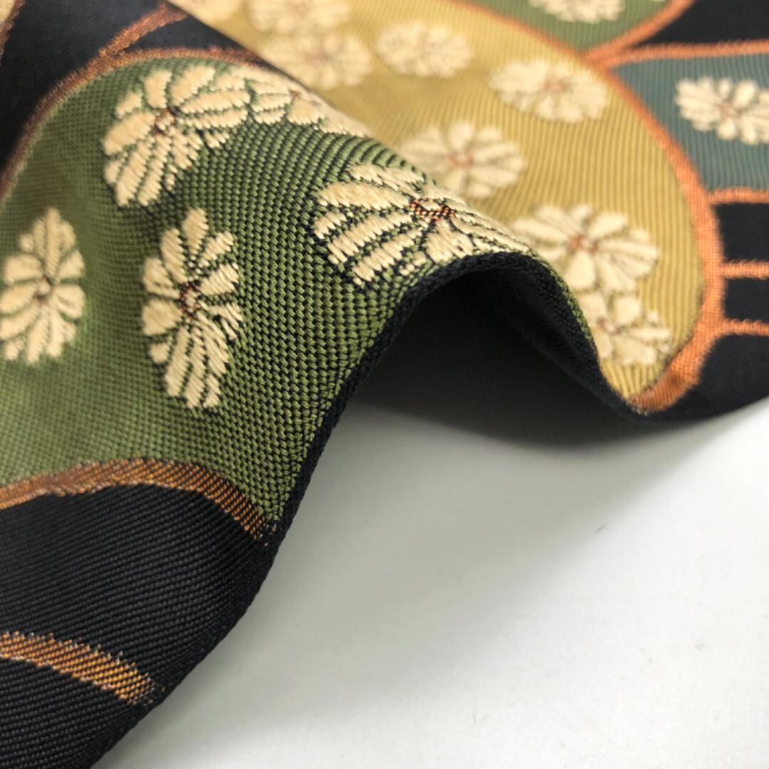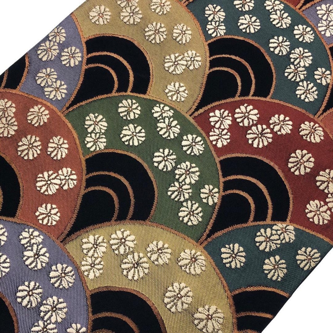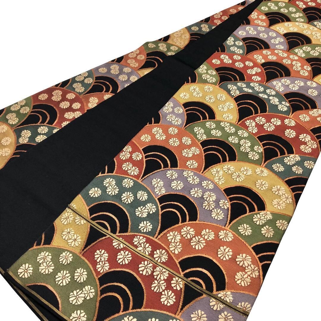 黒色のお色味に色鮮やかな青海波、菊の花模様がデザインされた素敵な柄裄のお品でございます。
