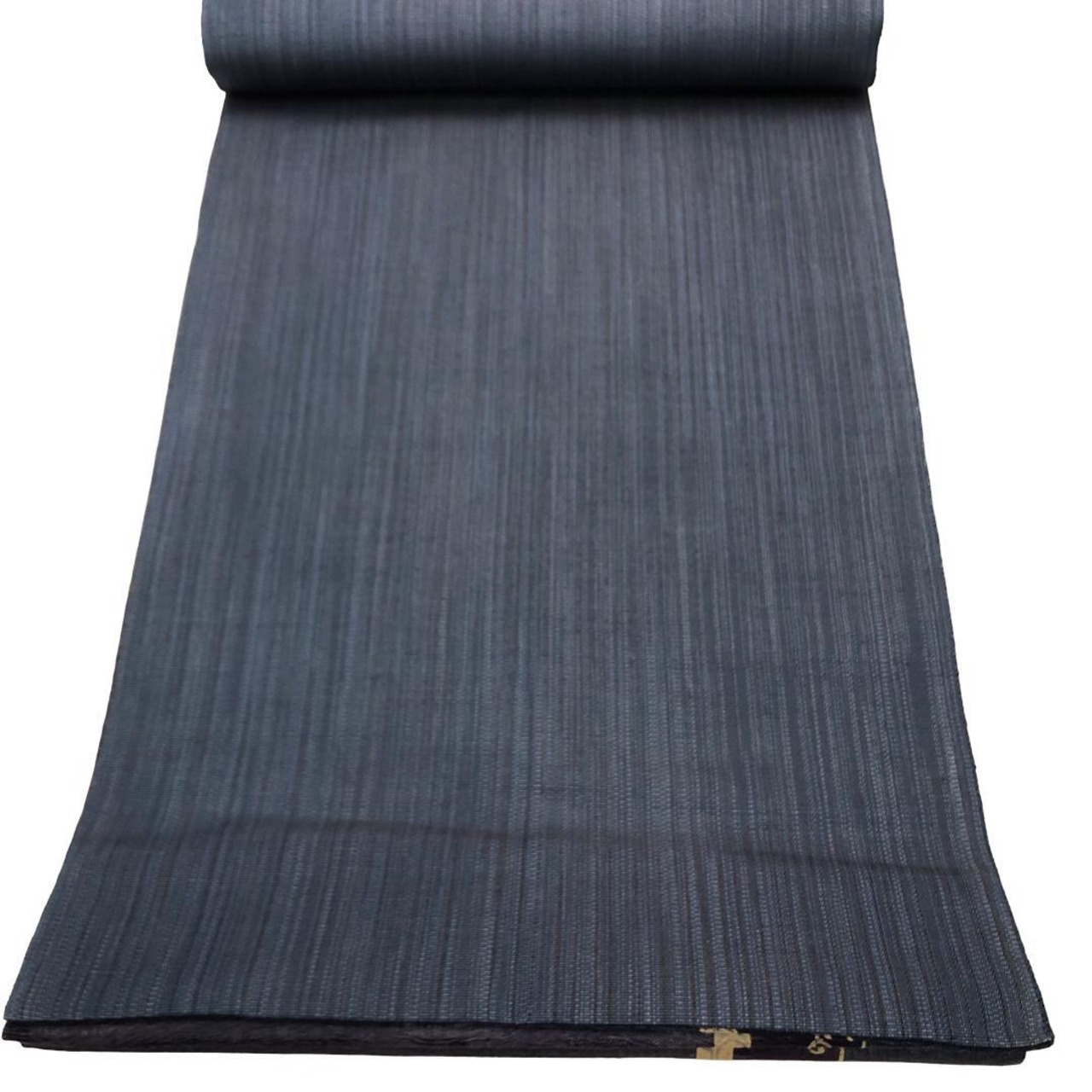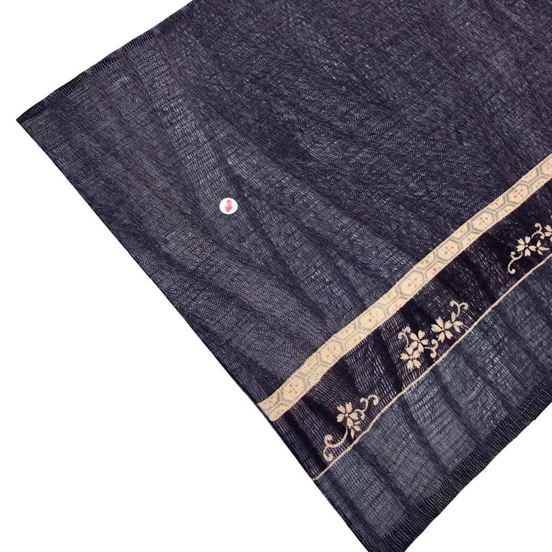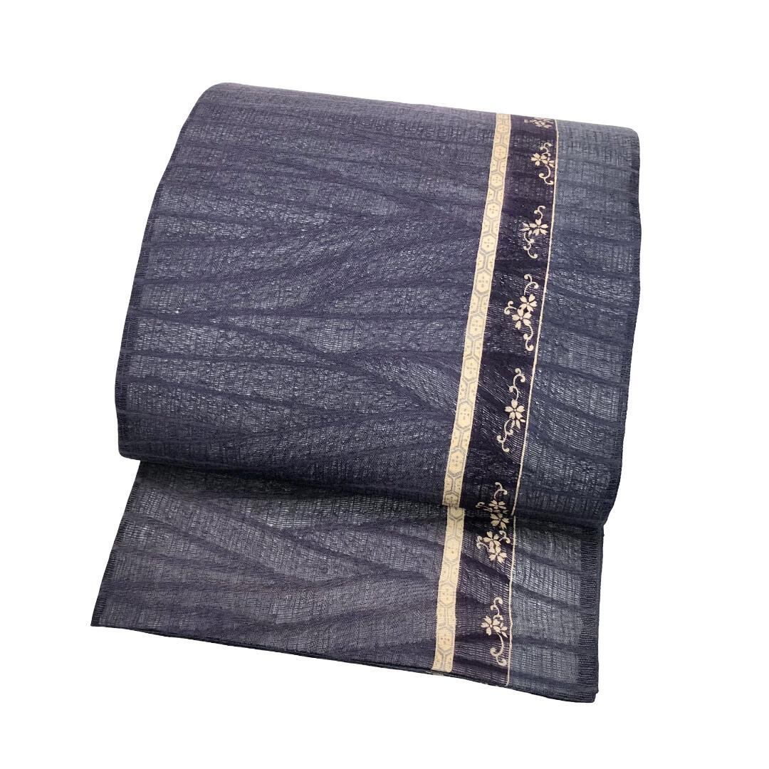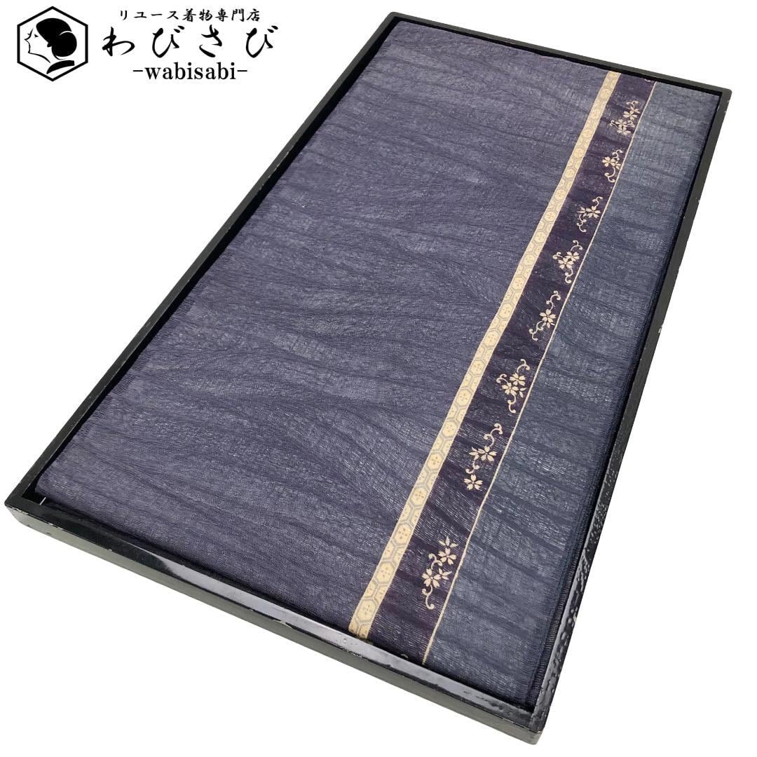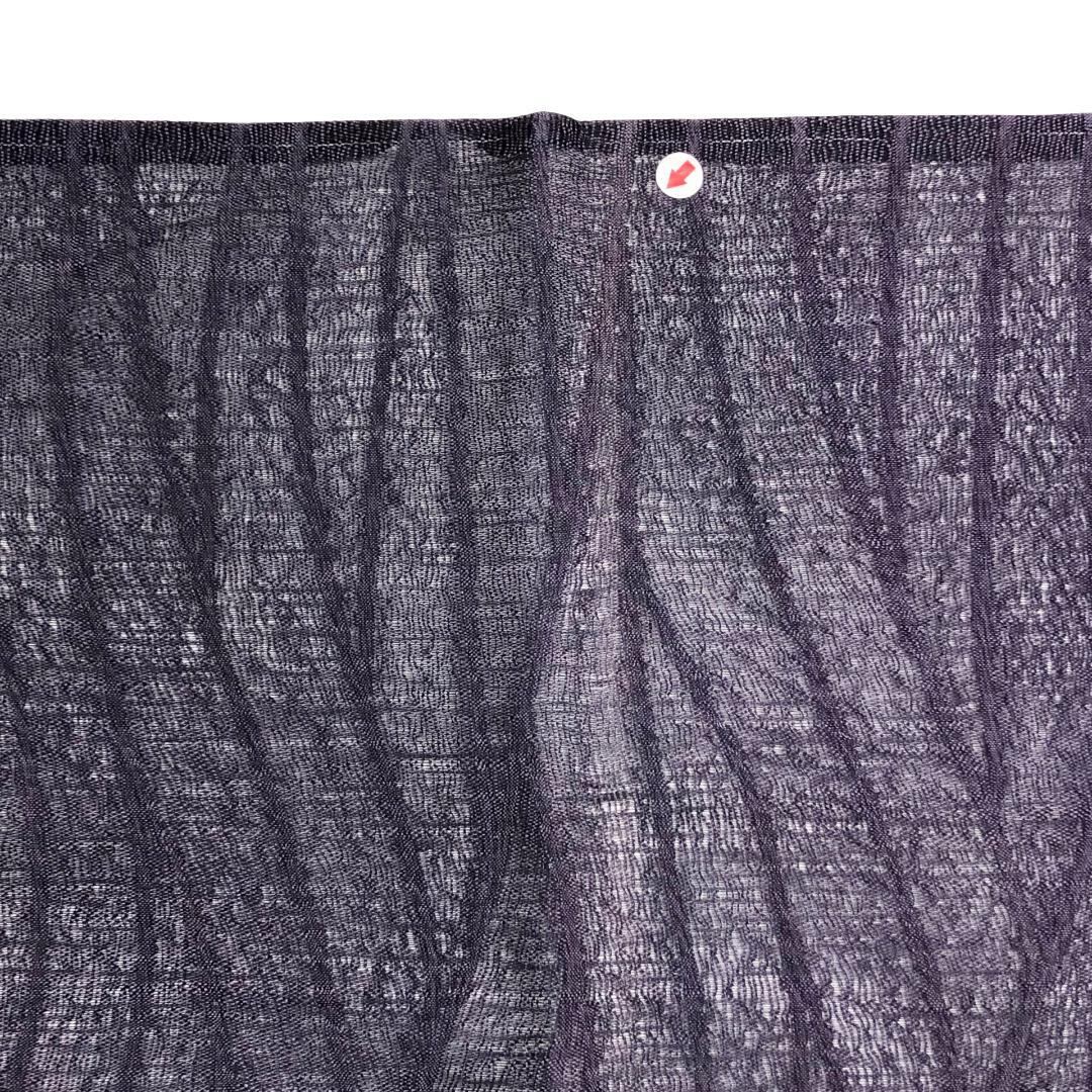 滅紫色ベースの透け感のあるすくい織、縦柄花唐草模様がデザインされた雰囲気の良い素敵な柄裄のお品でございます。