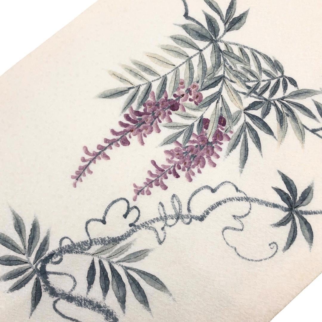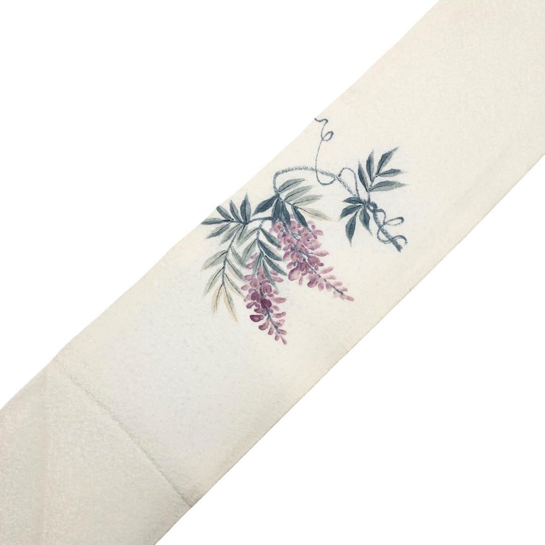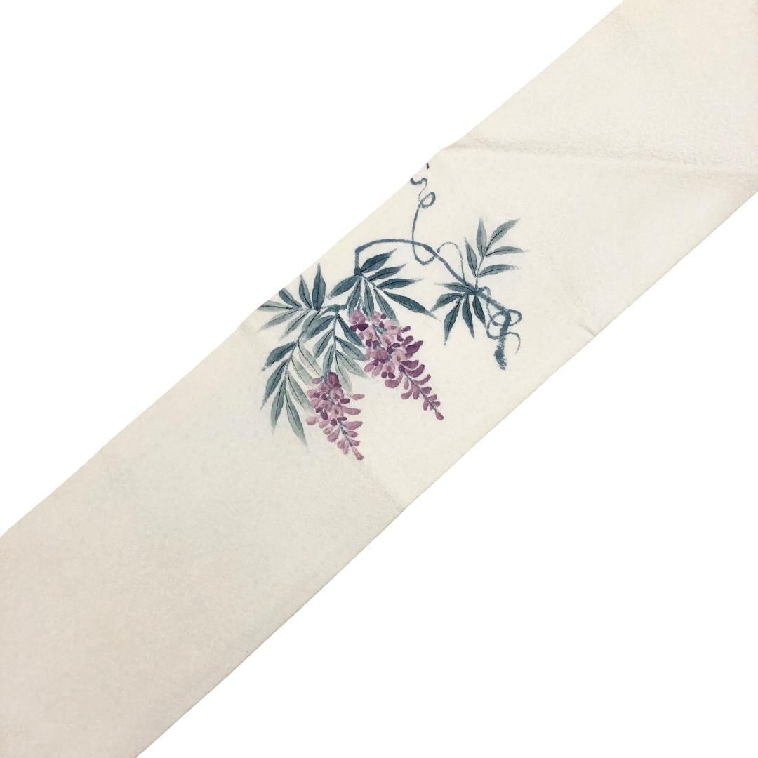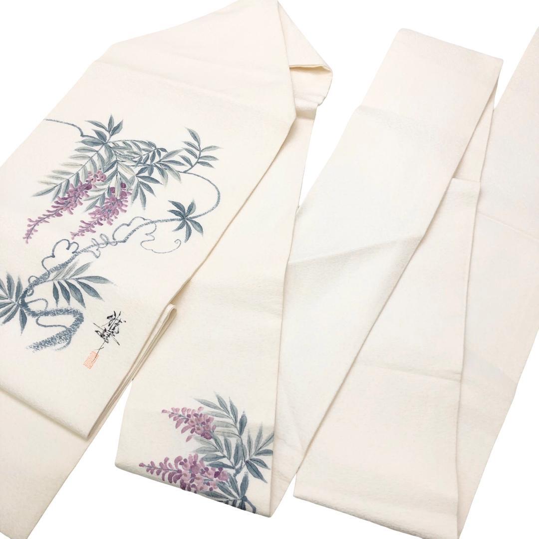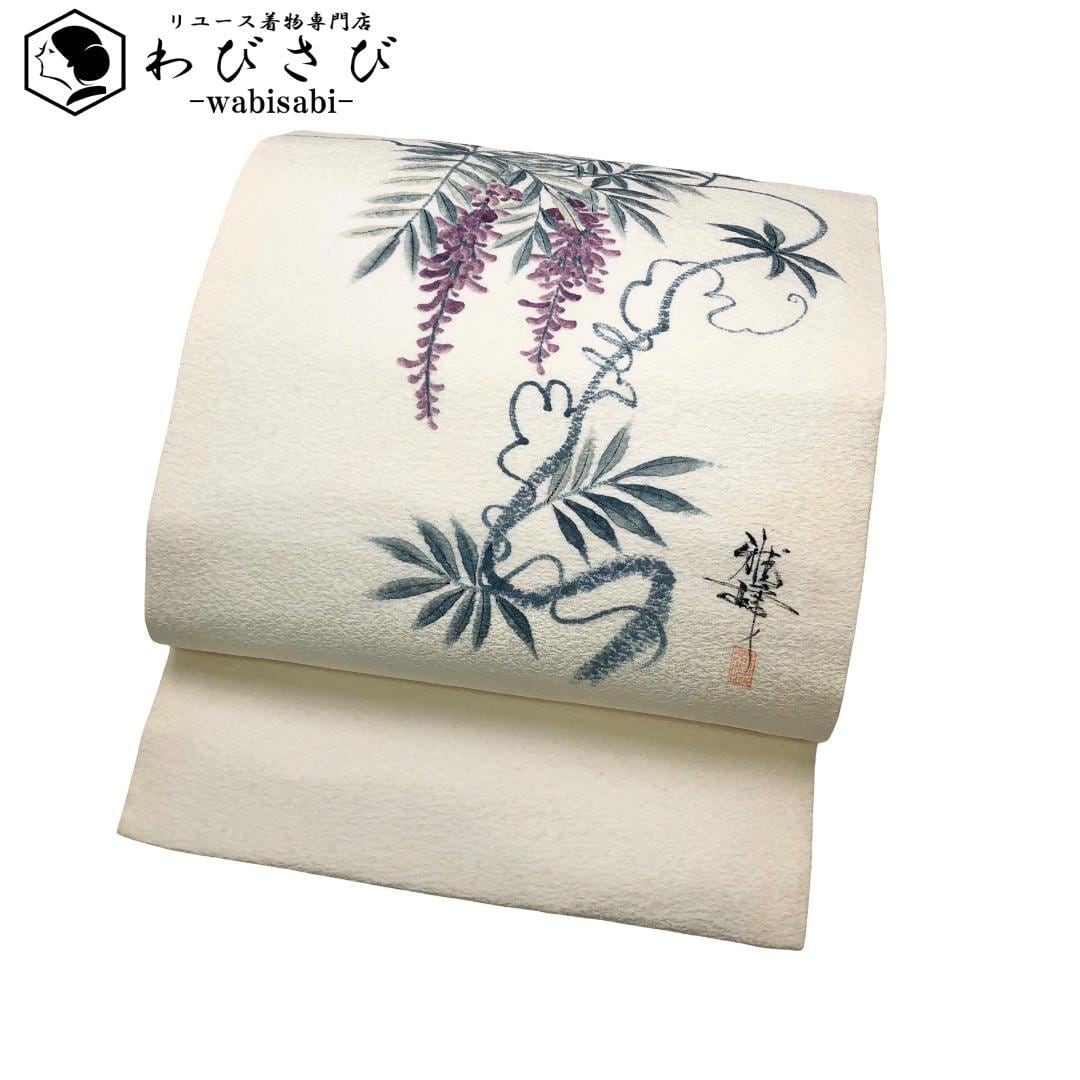 名古屋帯 作家物 手描き 藤の花模様 乳白色 長尺 O-5857 着物 きもの kimono 和服 和装 中古 リサイクル着物 【送料無料】
