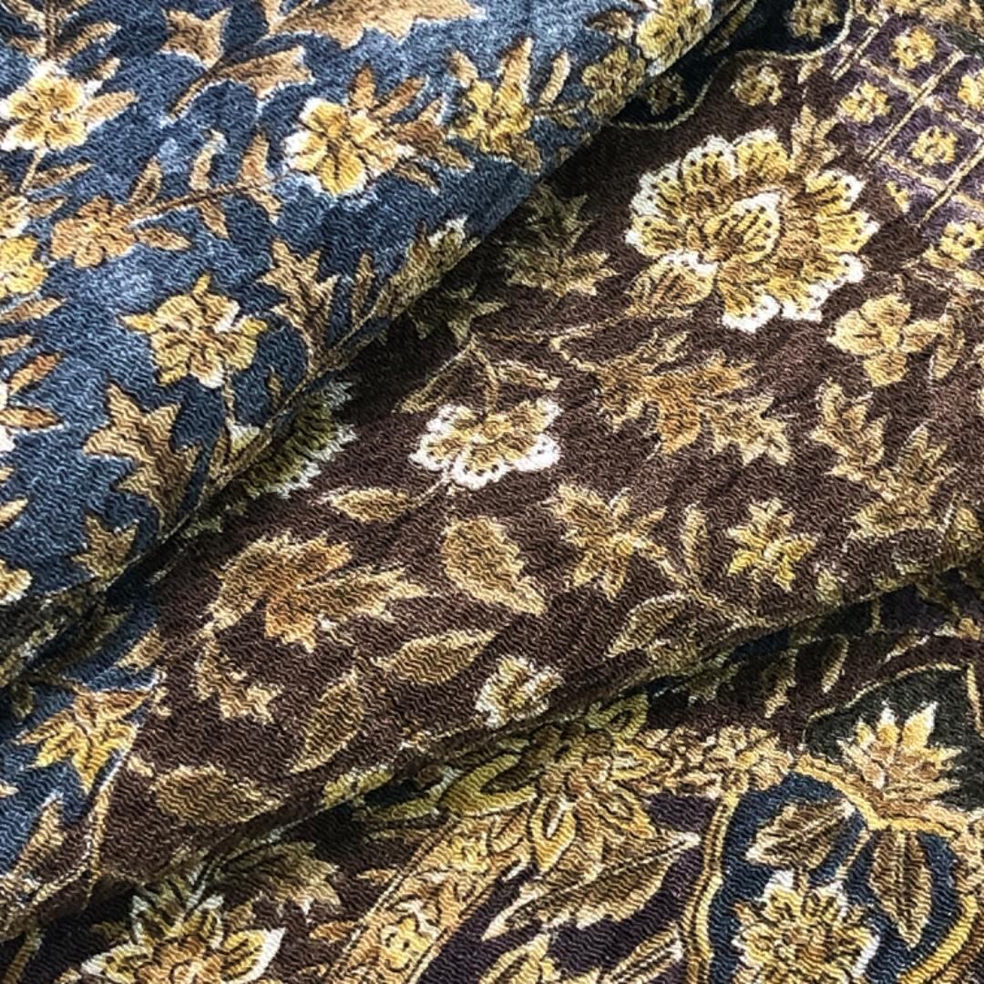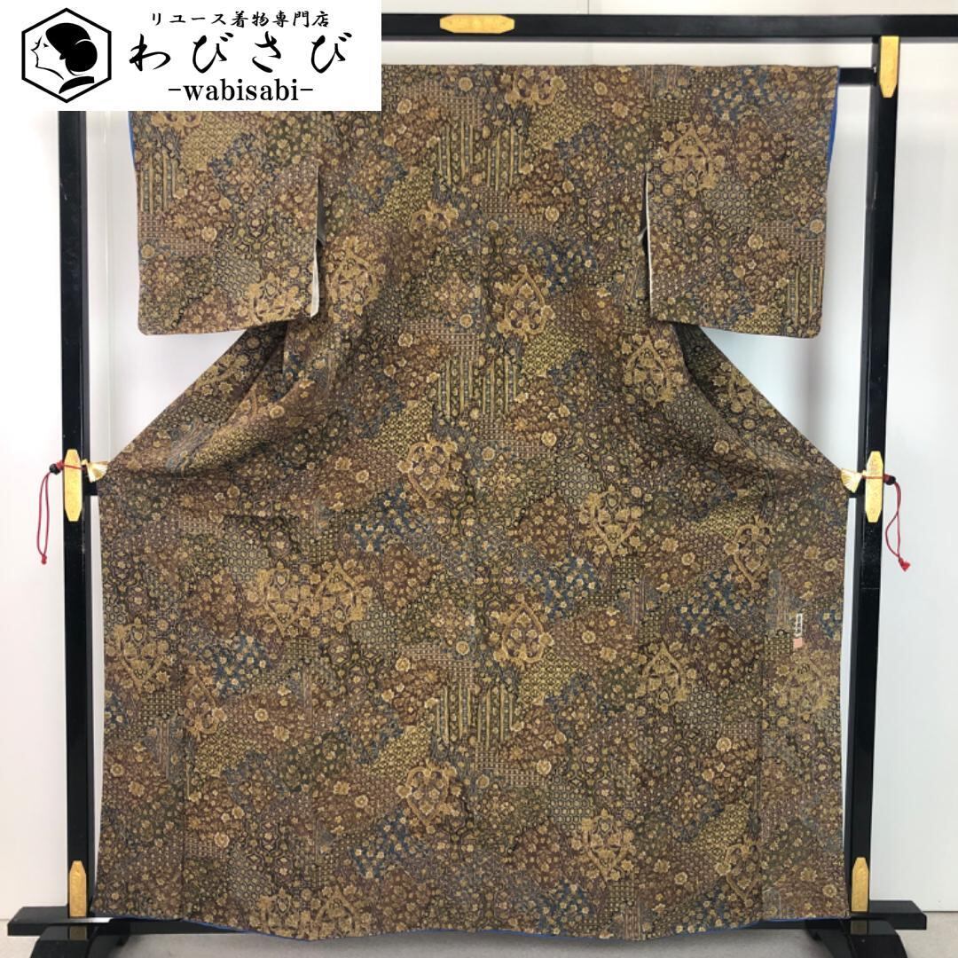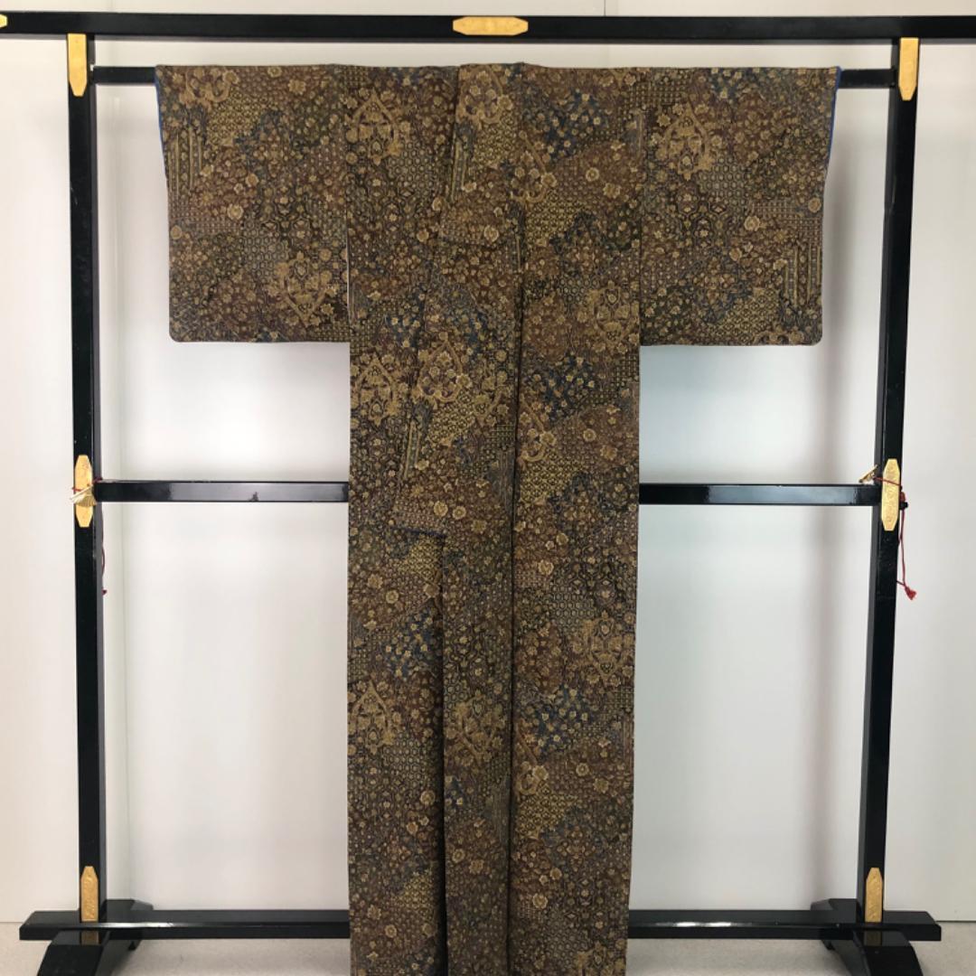 落ち着いたお色味に美しい更紗模様の柄裄がデザインされた雰囲気の良い素敵なお品でございます。