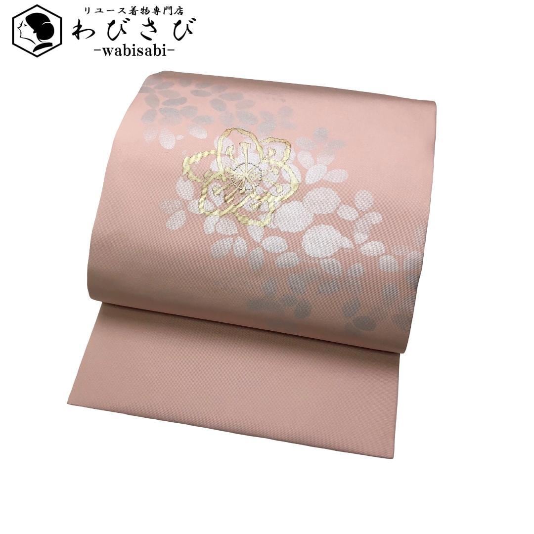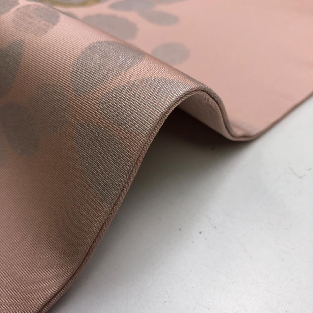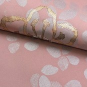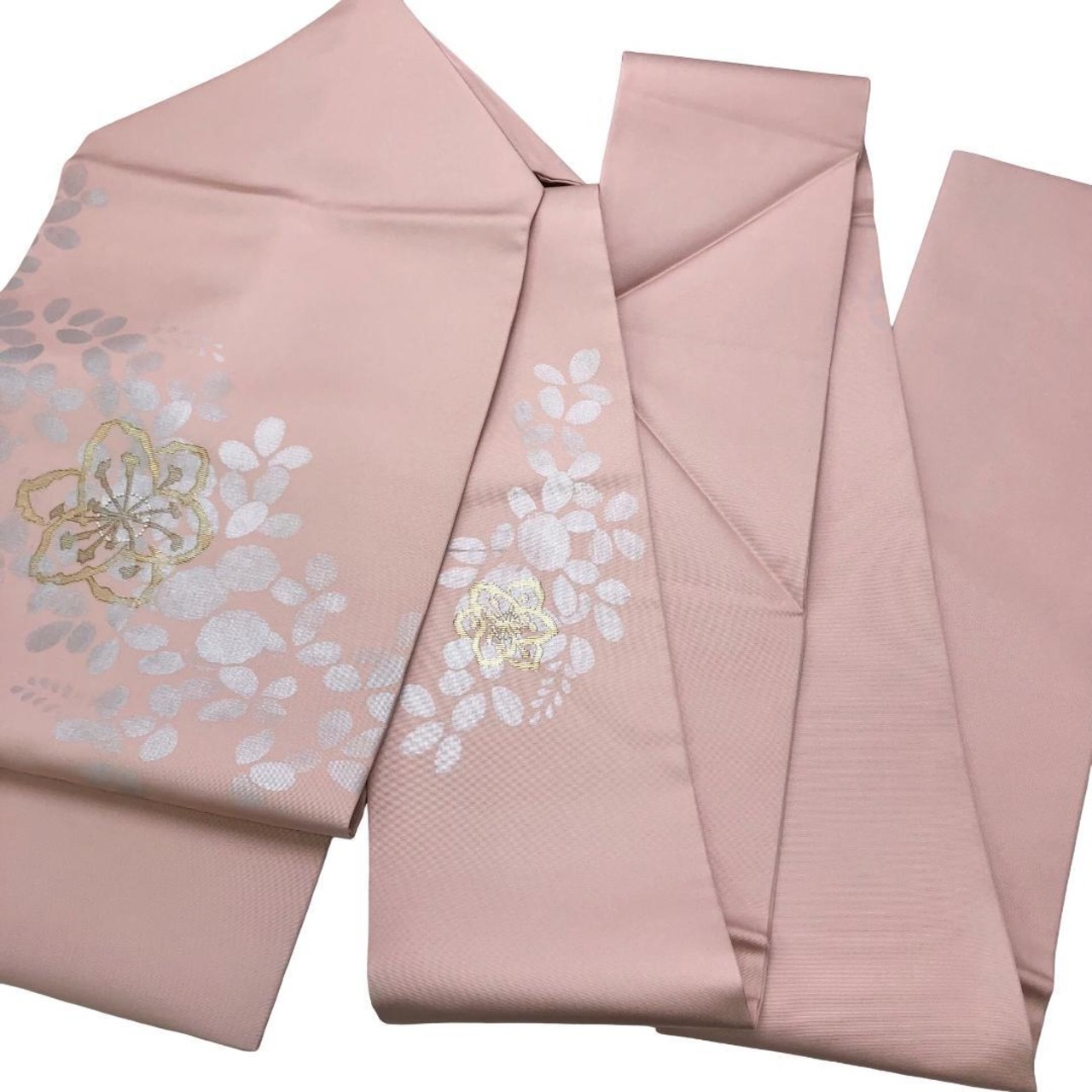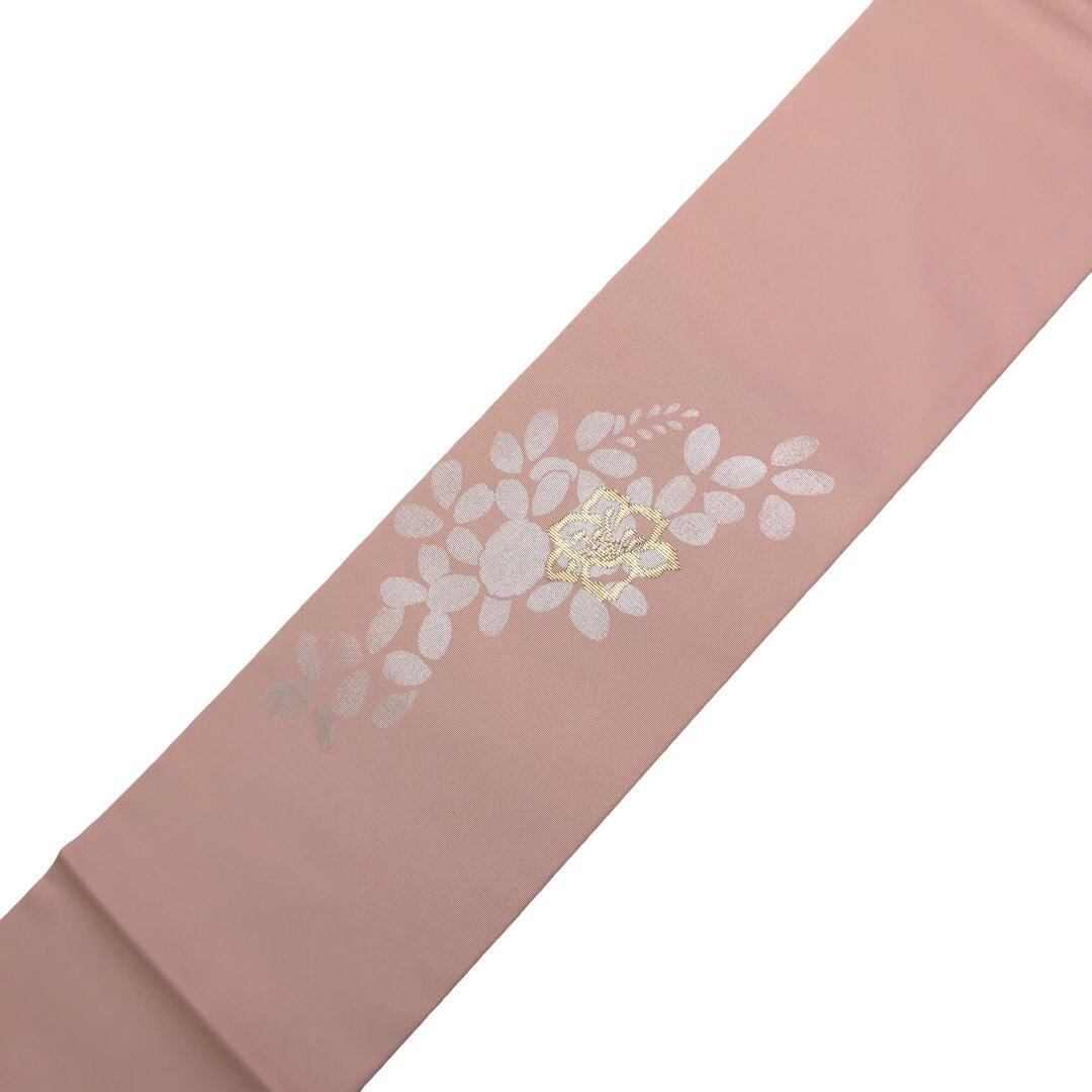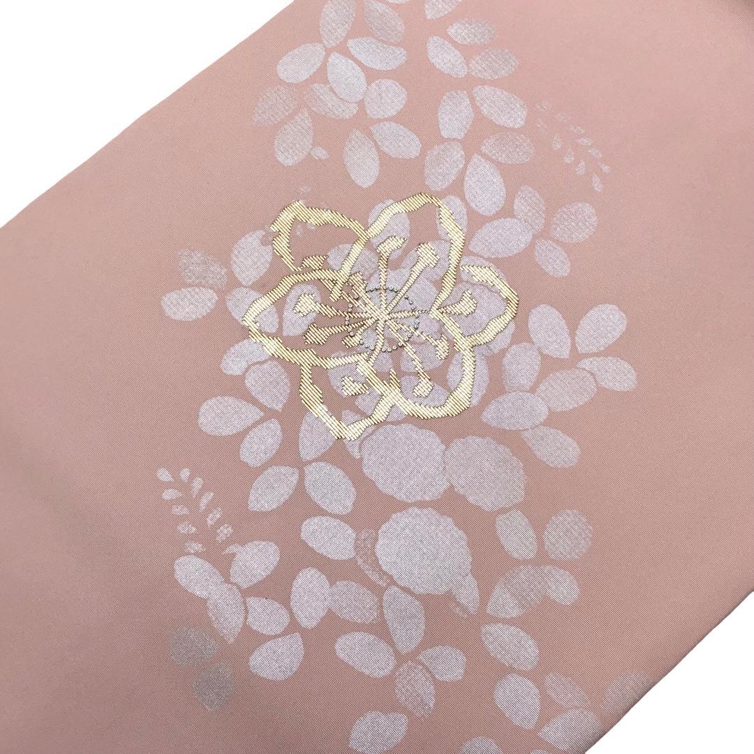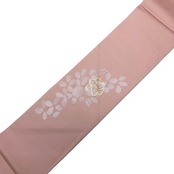 乙女色の品のあるお色味に刺繍が使われた桜の花模様がデザインされた素敵な柄行のお品でございます。