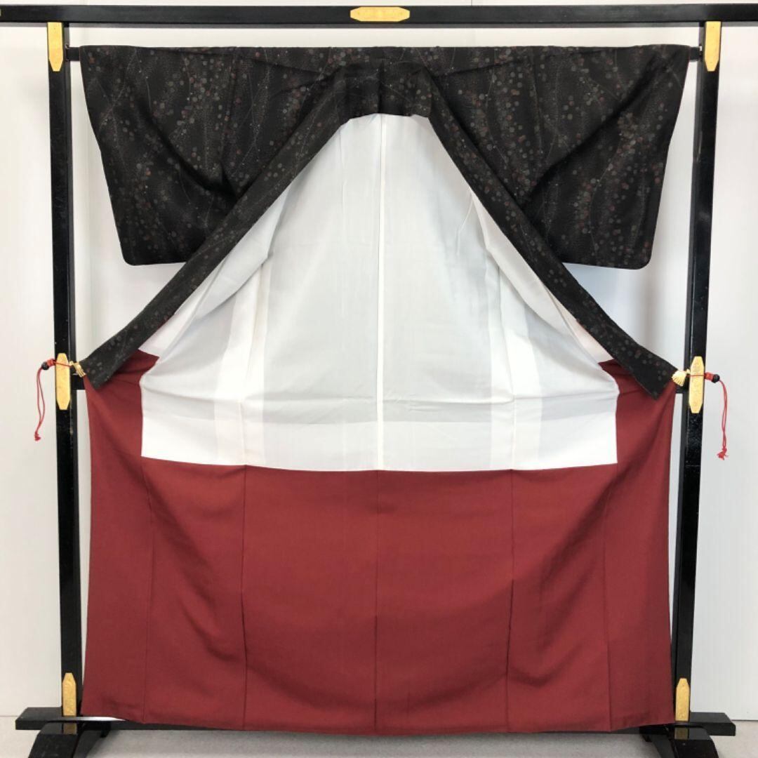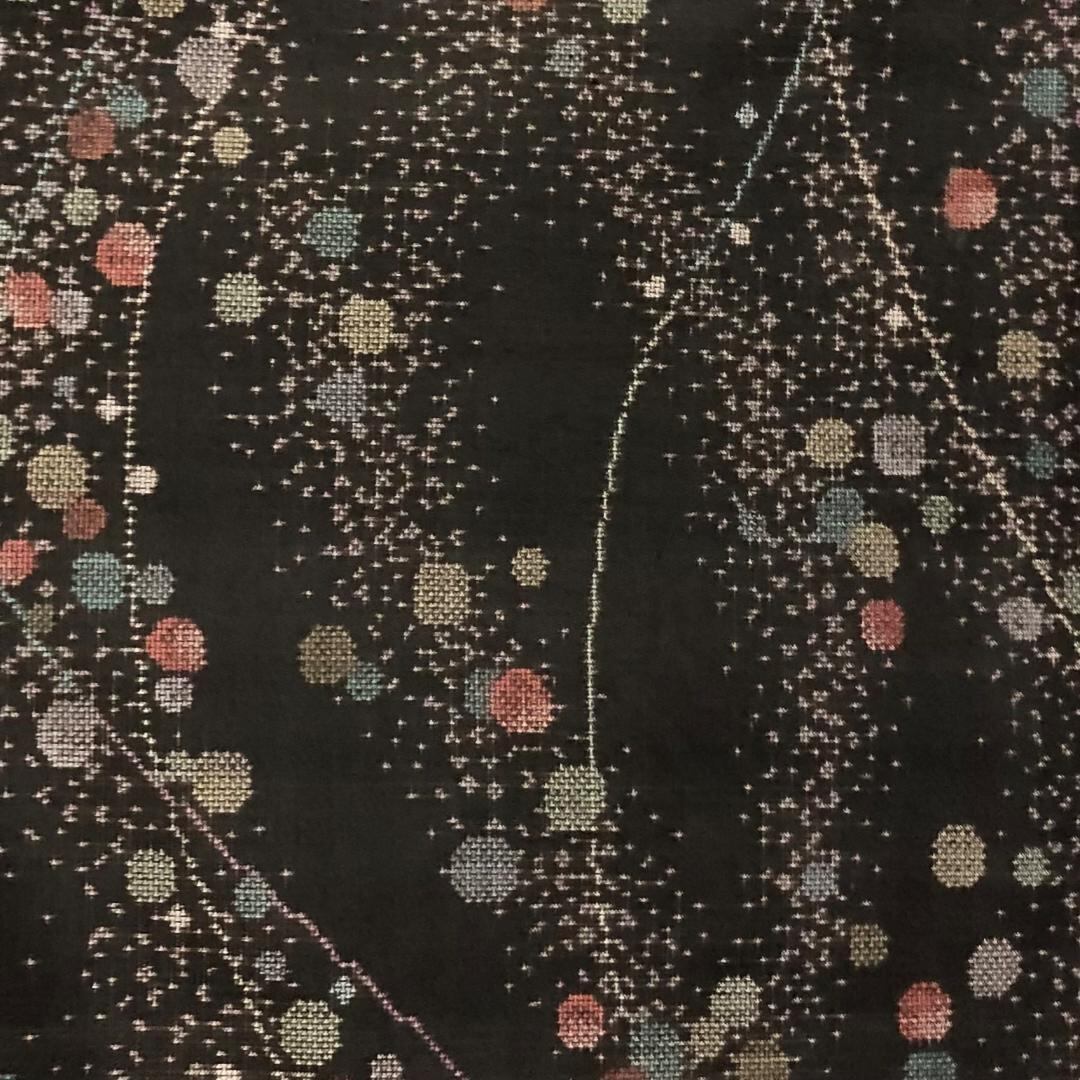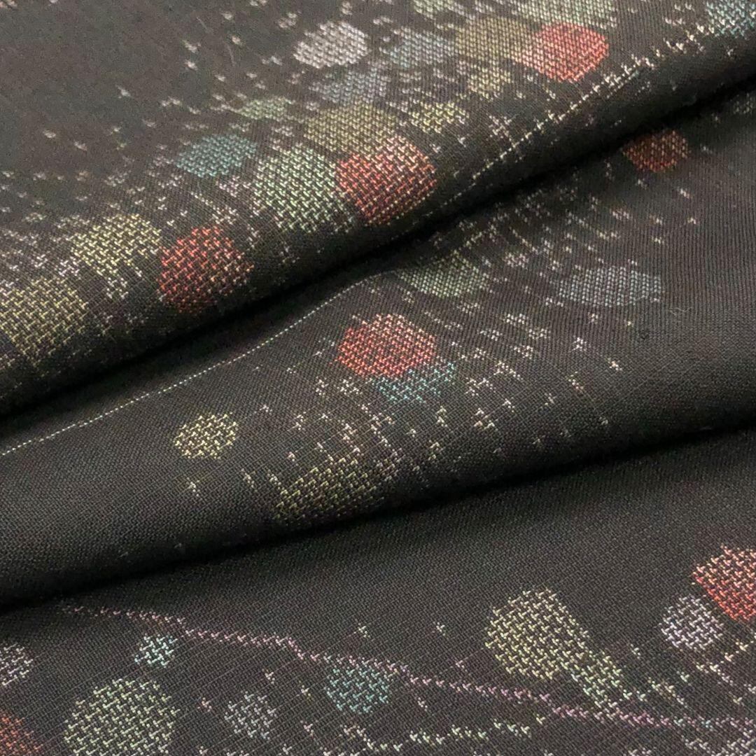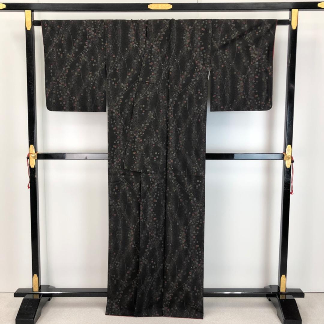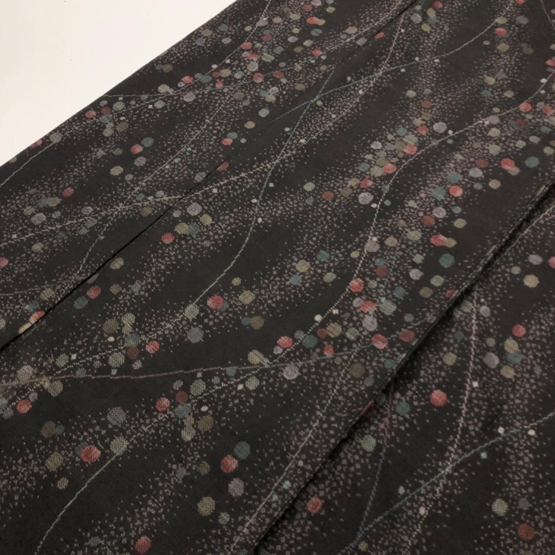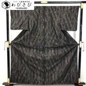 純泥染の雰囲気の良いお色味、曲線に水玉模様がデザインされた雰囲気の良い素敵な柄裄のお品でございます。