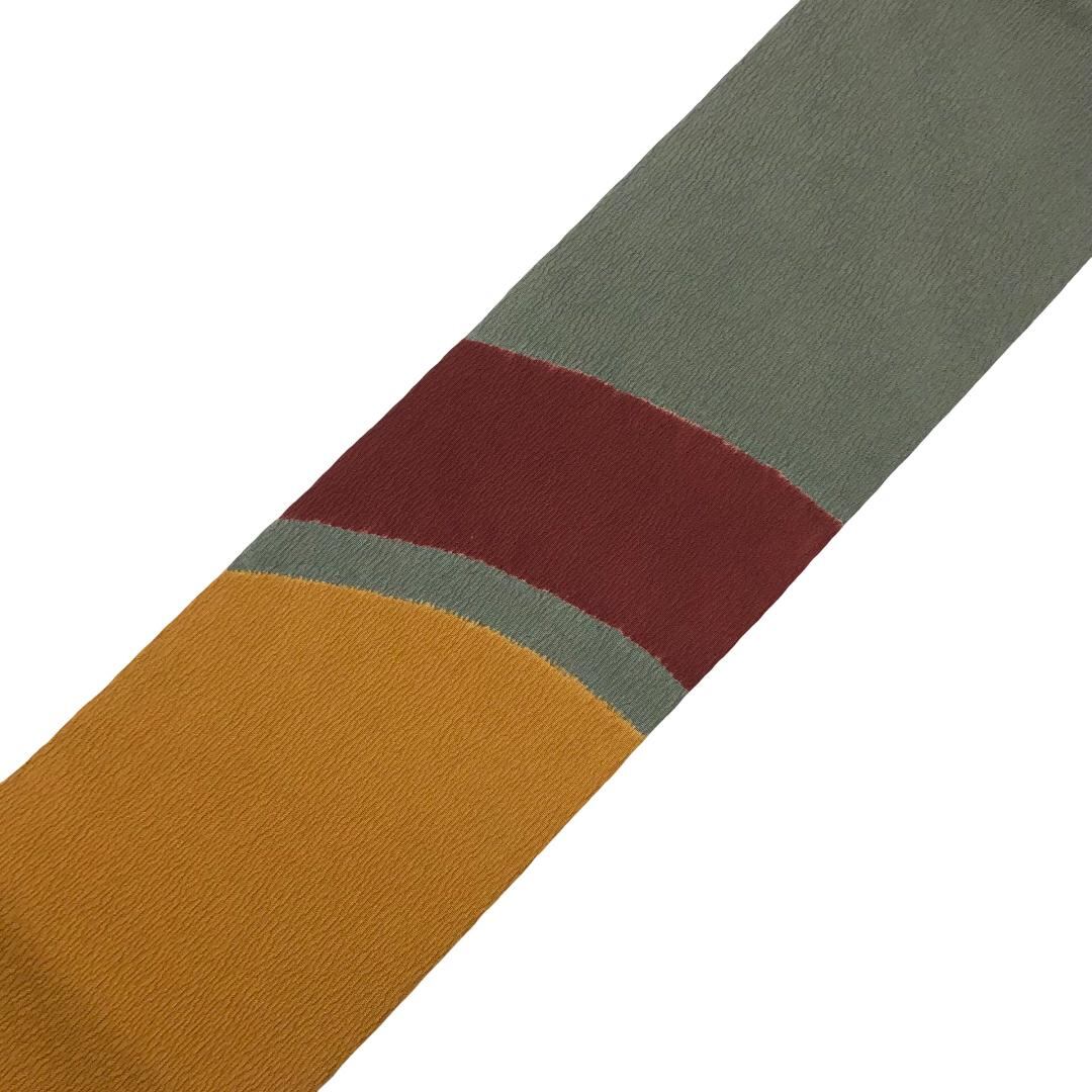 名古屋帯 染分け 縮緬 利休鼠色 O-5866 着物 きもの kimono 和服 和装 中古 リサイクル着物 【送料無料】