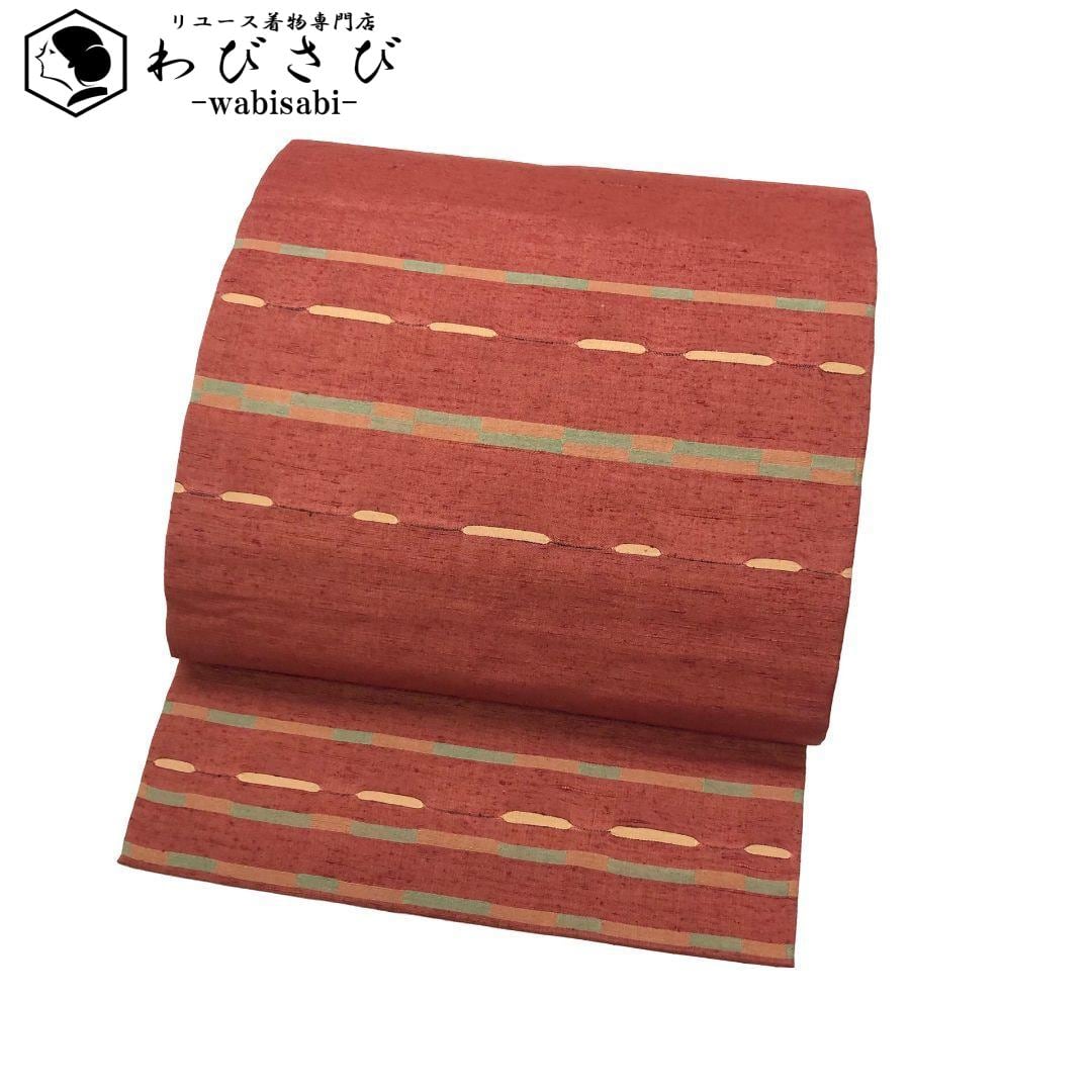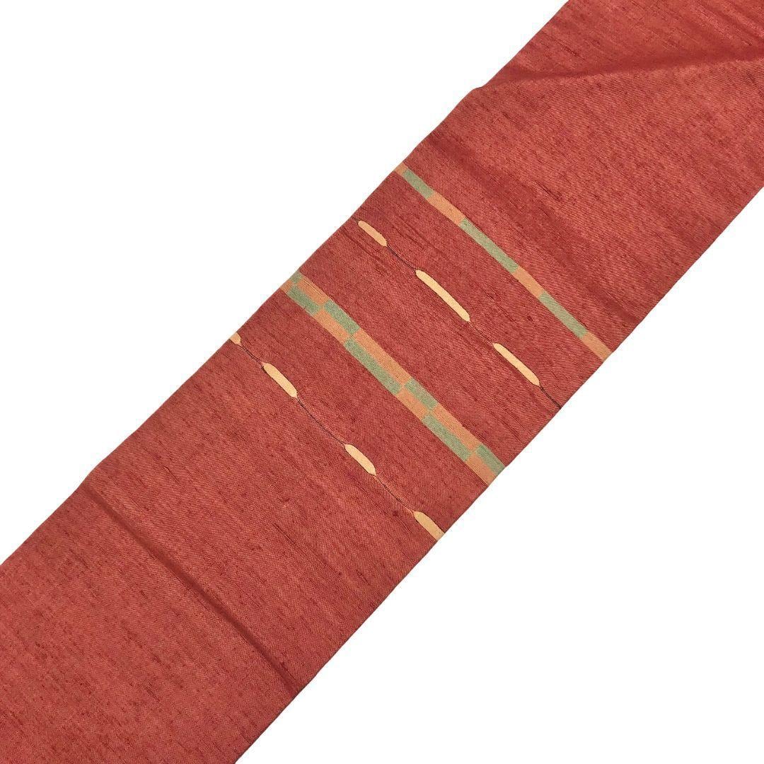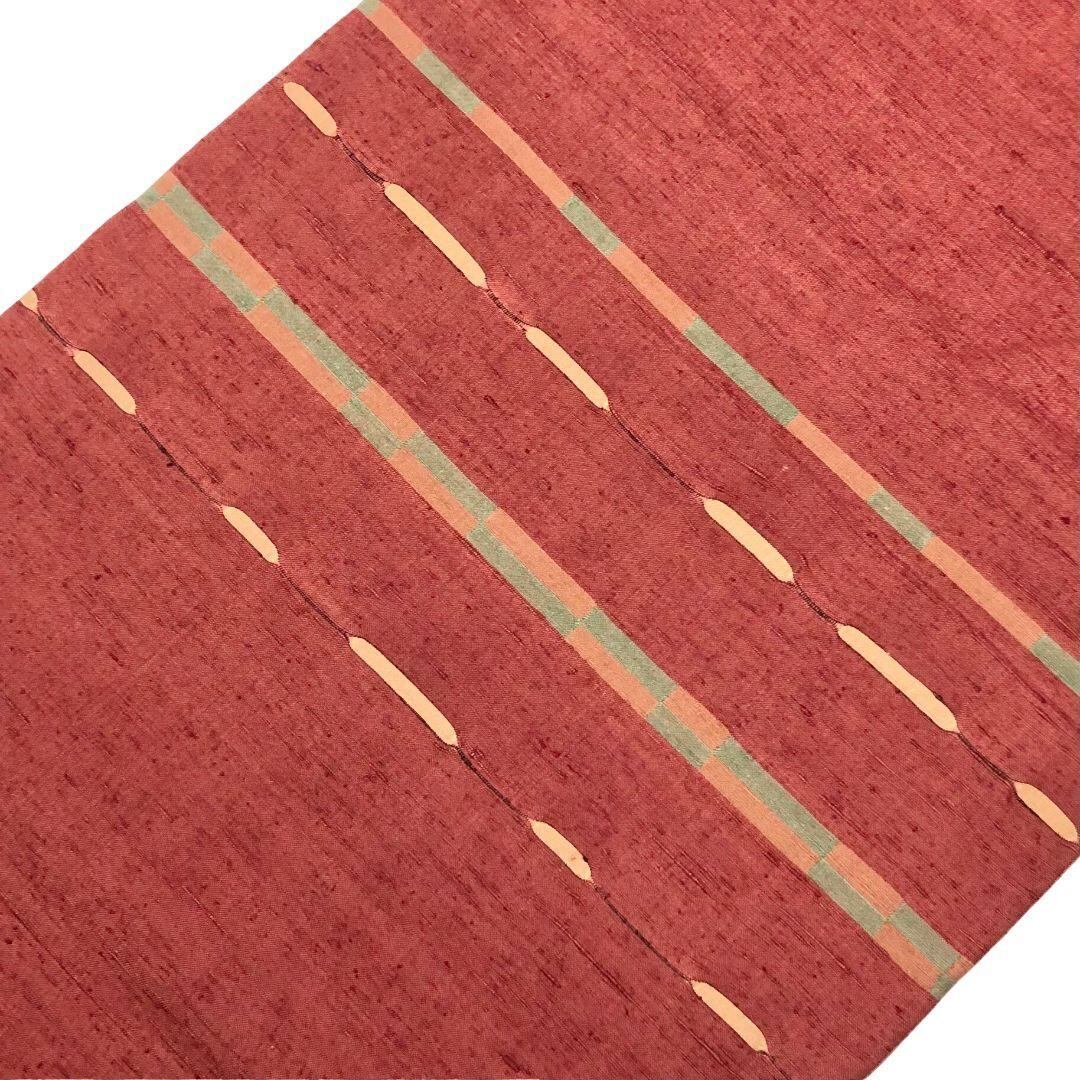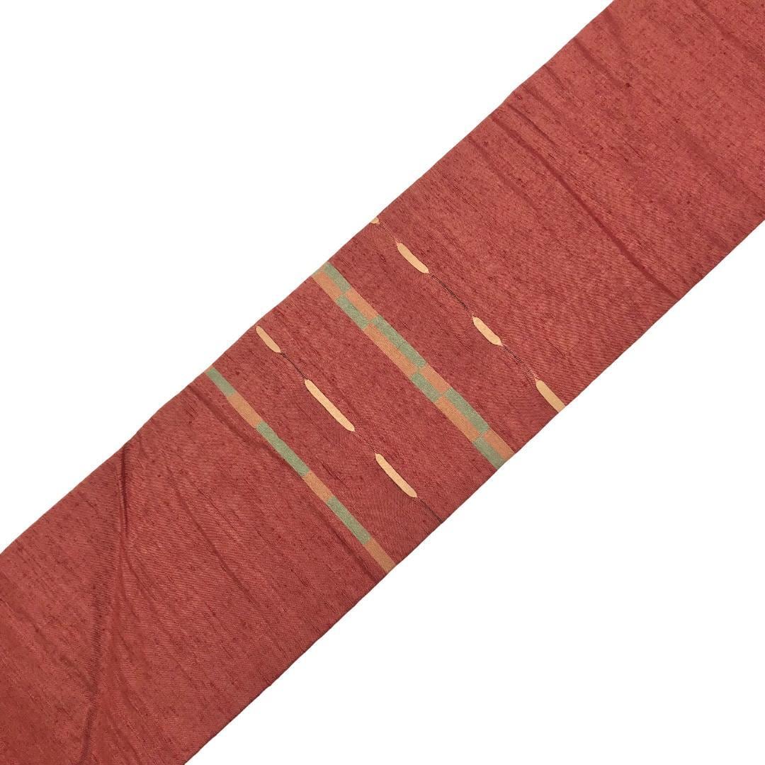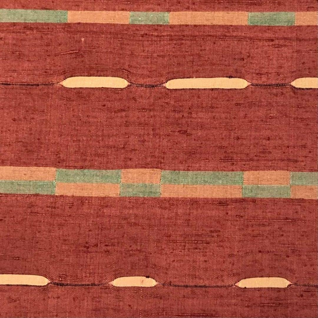 弁柄色のお色味に横縞織模様がデザインされた雰囲気の良い素敵な柄裄のお品でございます。