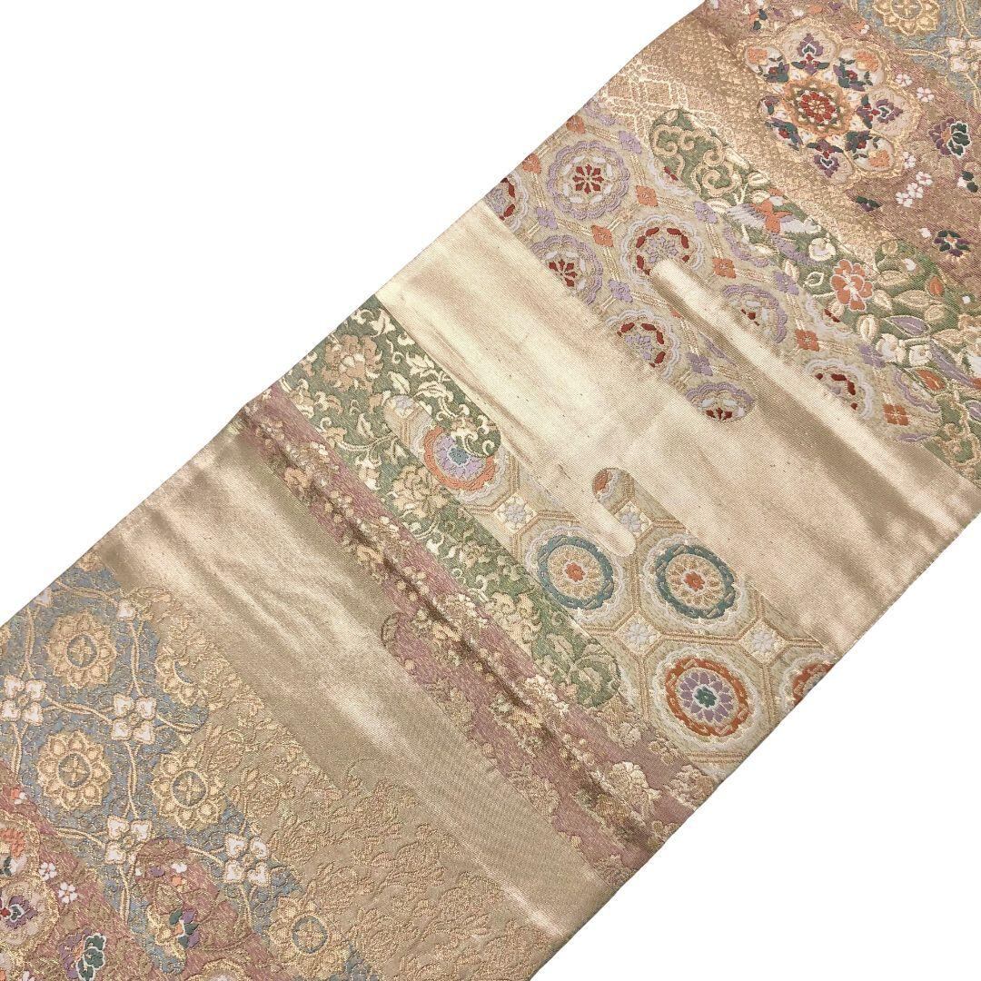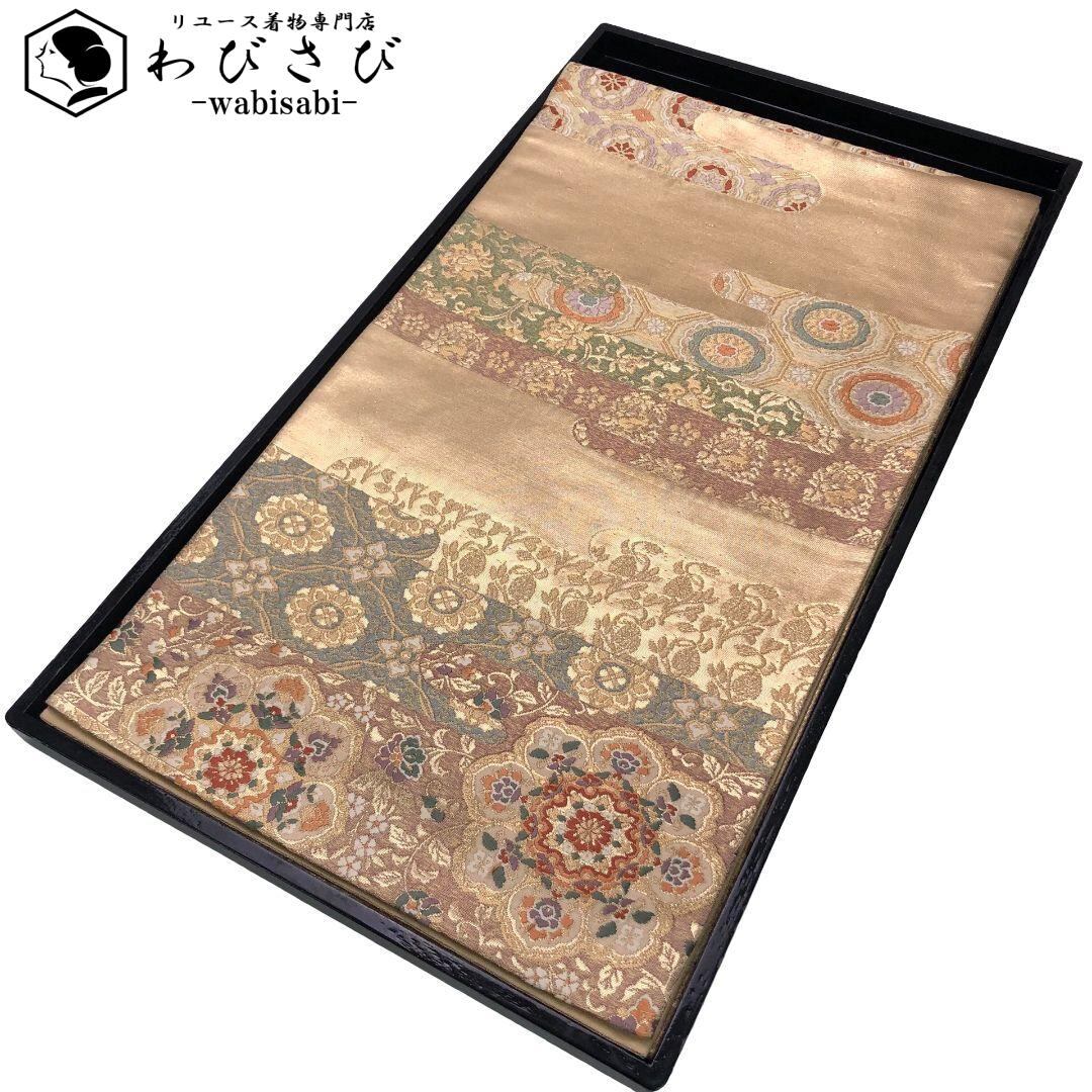 袋帯 雲取裂華文 美しい華柄模様 金糸 金色 O-5897 着物 きもの kimono 和服 和装 中古 リサイクル着物 【送料無料】