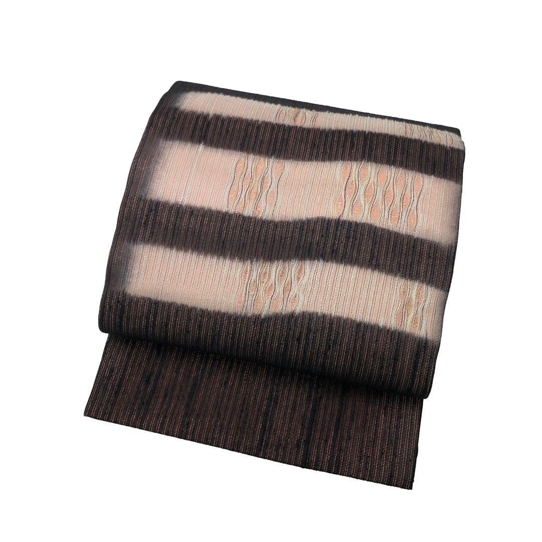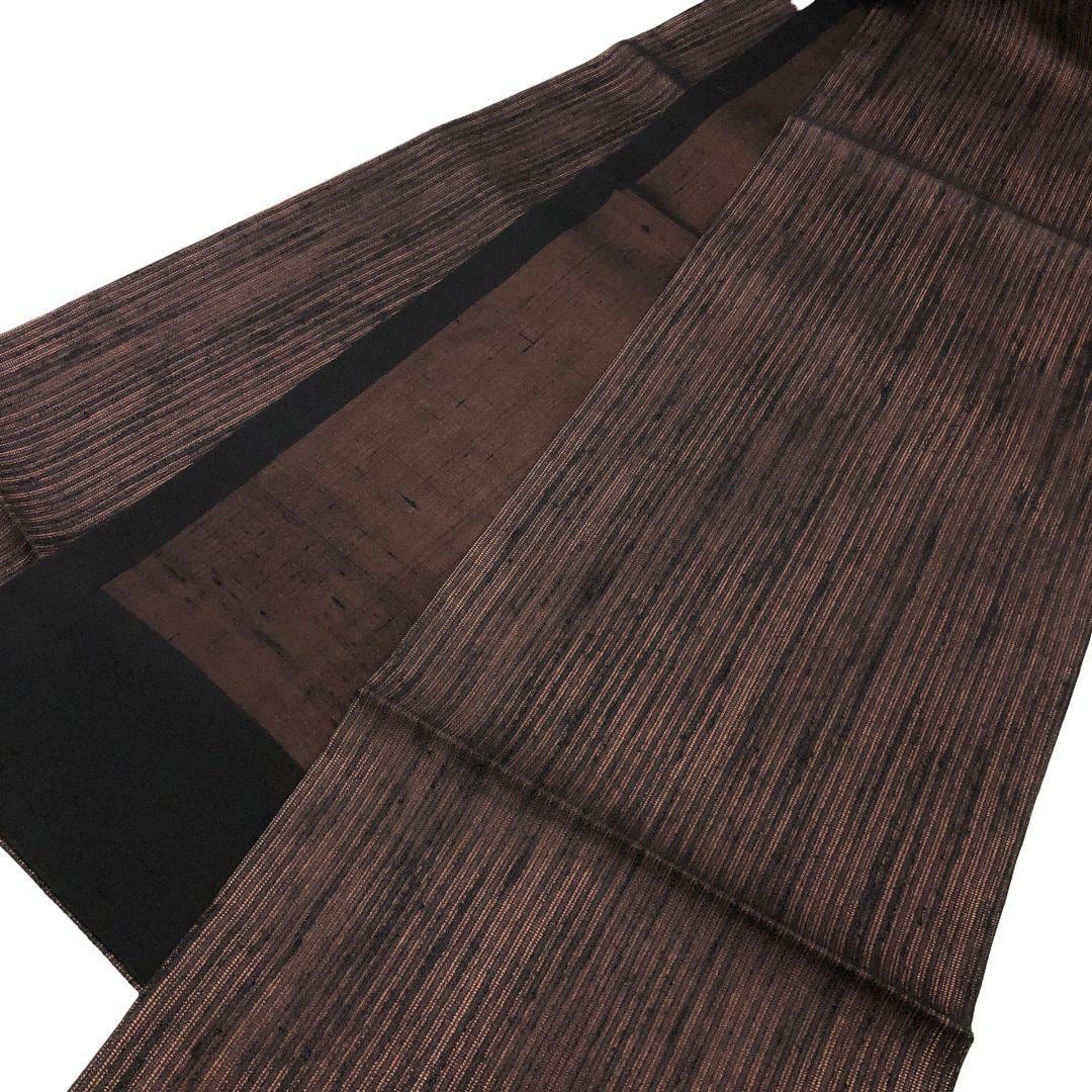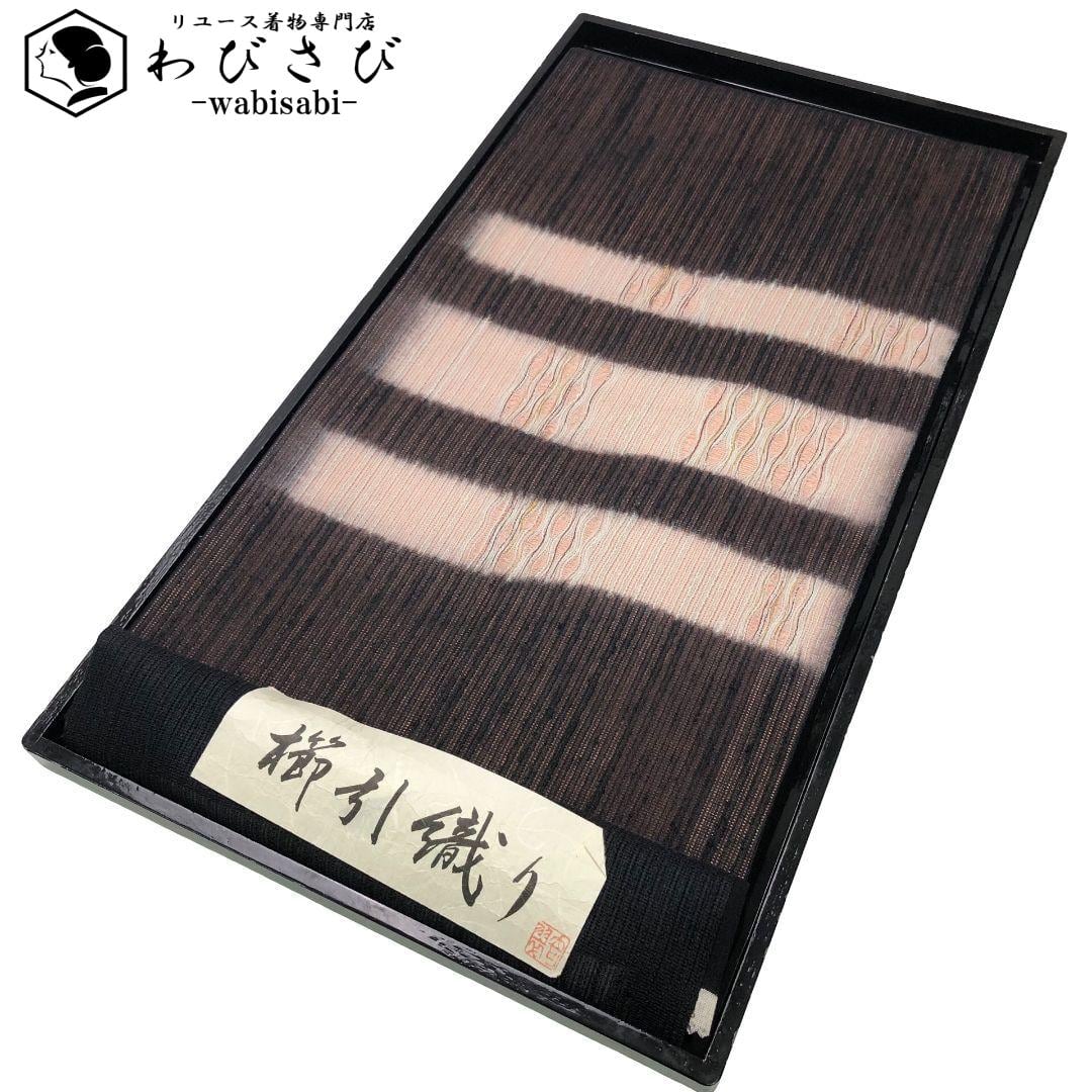 赤城紬、赤黒色の落ち着きのあるお色味に櫛引織で織り上げられた美しい織模様がデザインされた雰囲気の良い素敵なお品でございます。