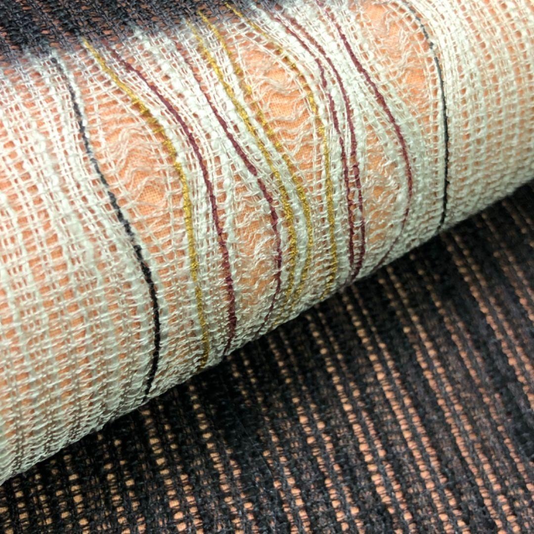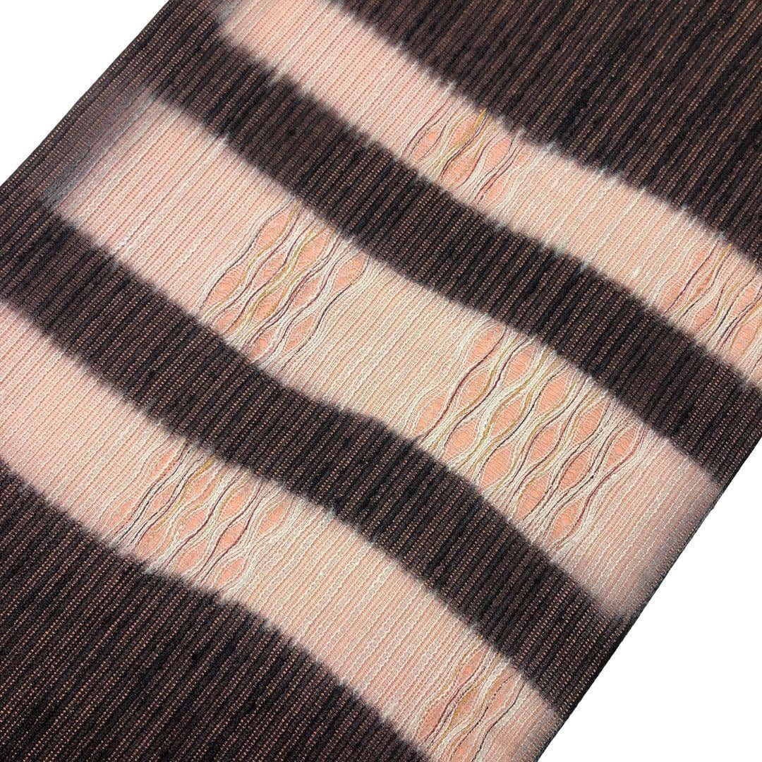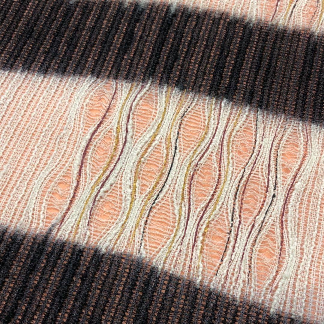 赤城紬、赤黒色の落ち着きのあるお色味に櫛引織で織り上げられた美しい織模様がデザインされた雰囲気の良い素敵なお品でございます。