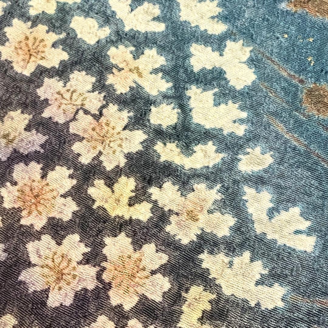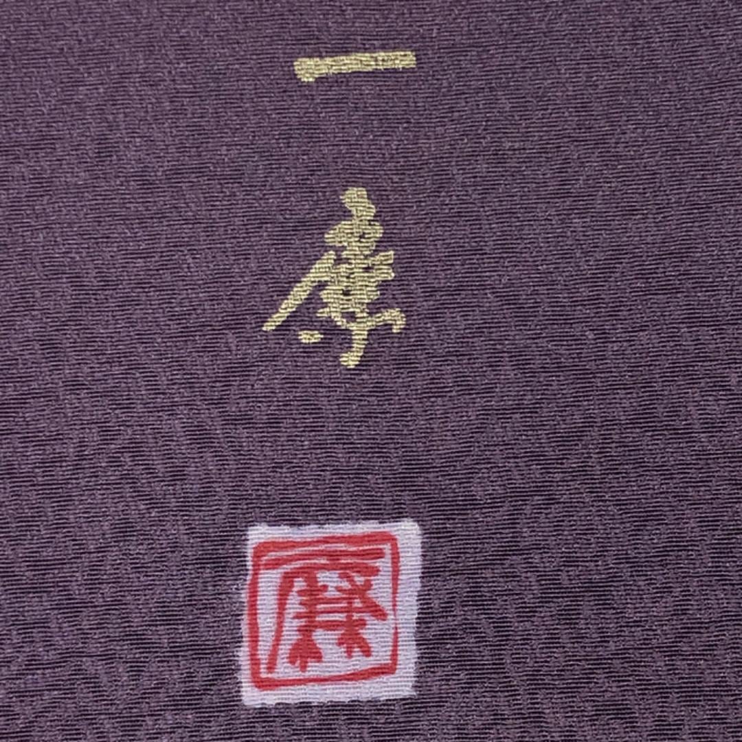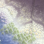滅紫色のお色味に桜の花模様、幻想的で美しい染柄がデザインされた素敵なお品でございます。