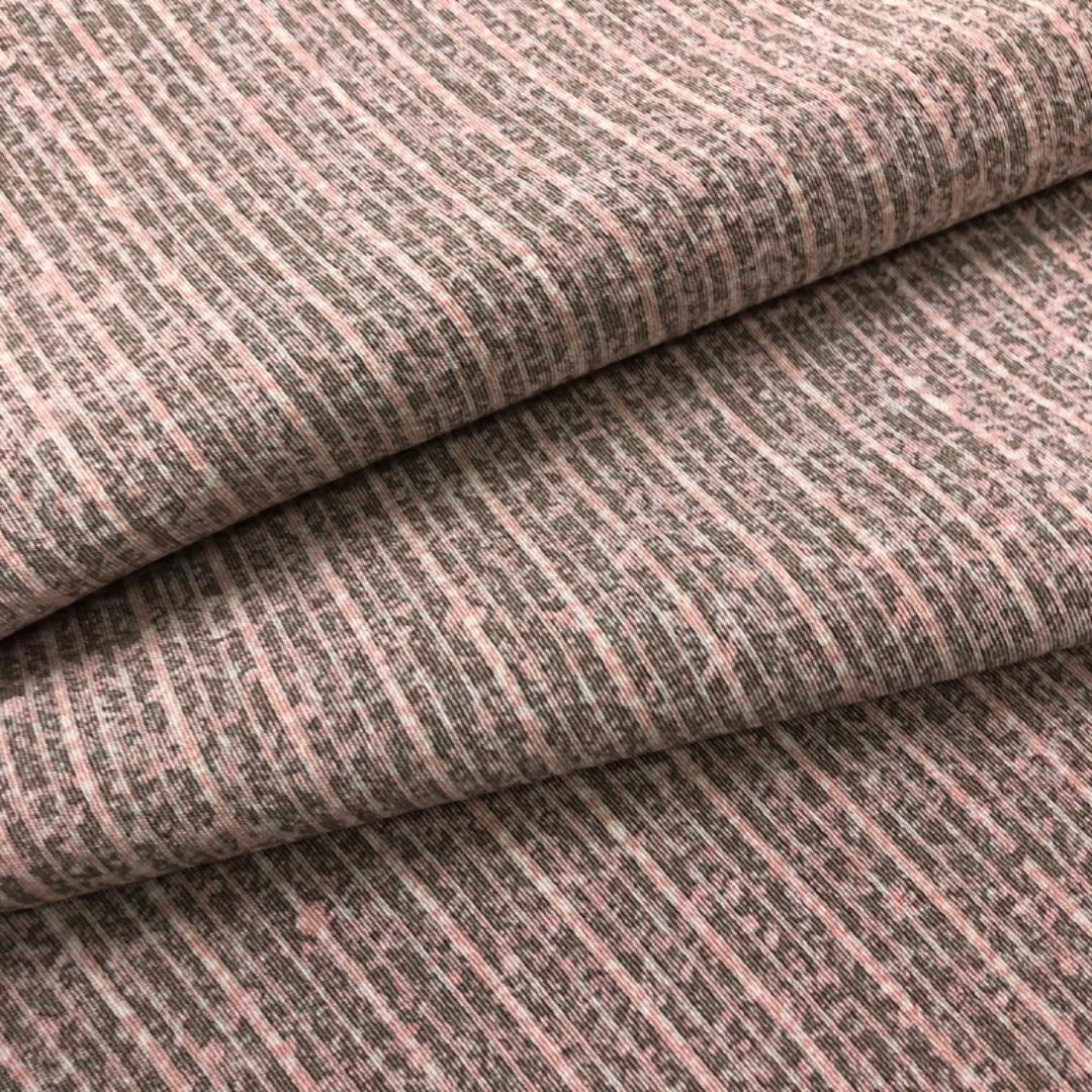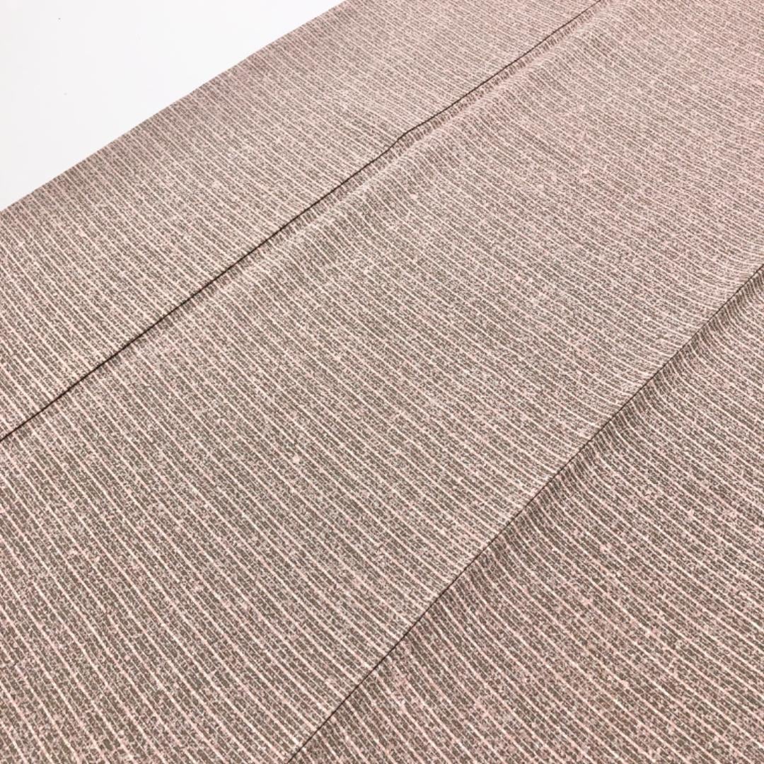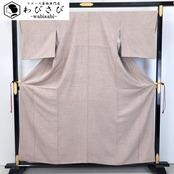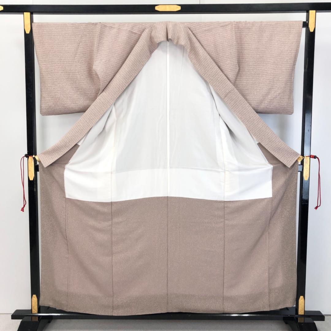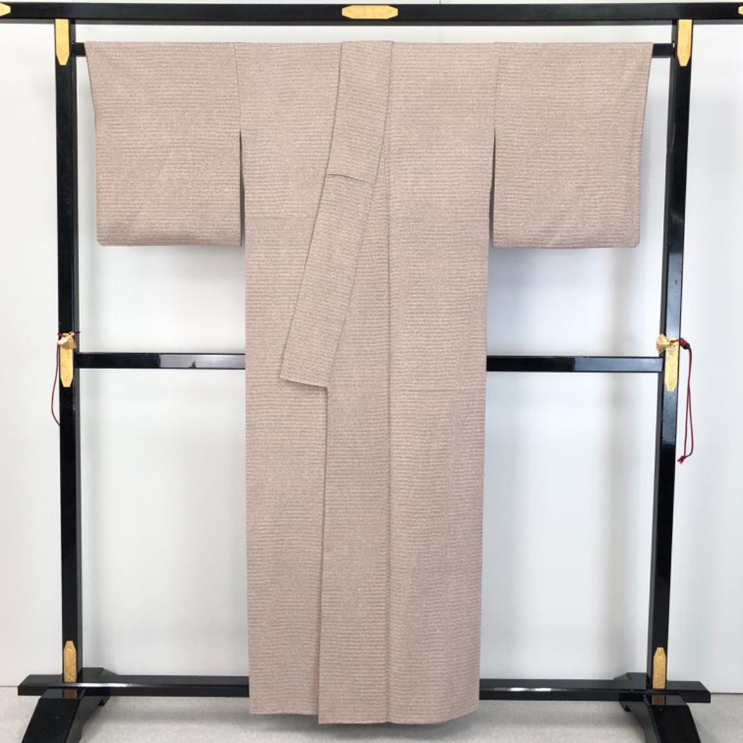 浪花鼠色の品のあるお色味に叩き染、横縞模様の柄裄がデザインされた素敵なお品でございます。