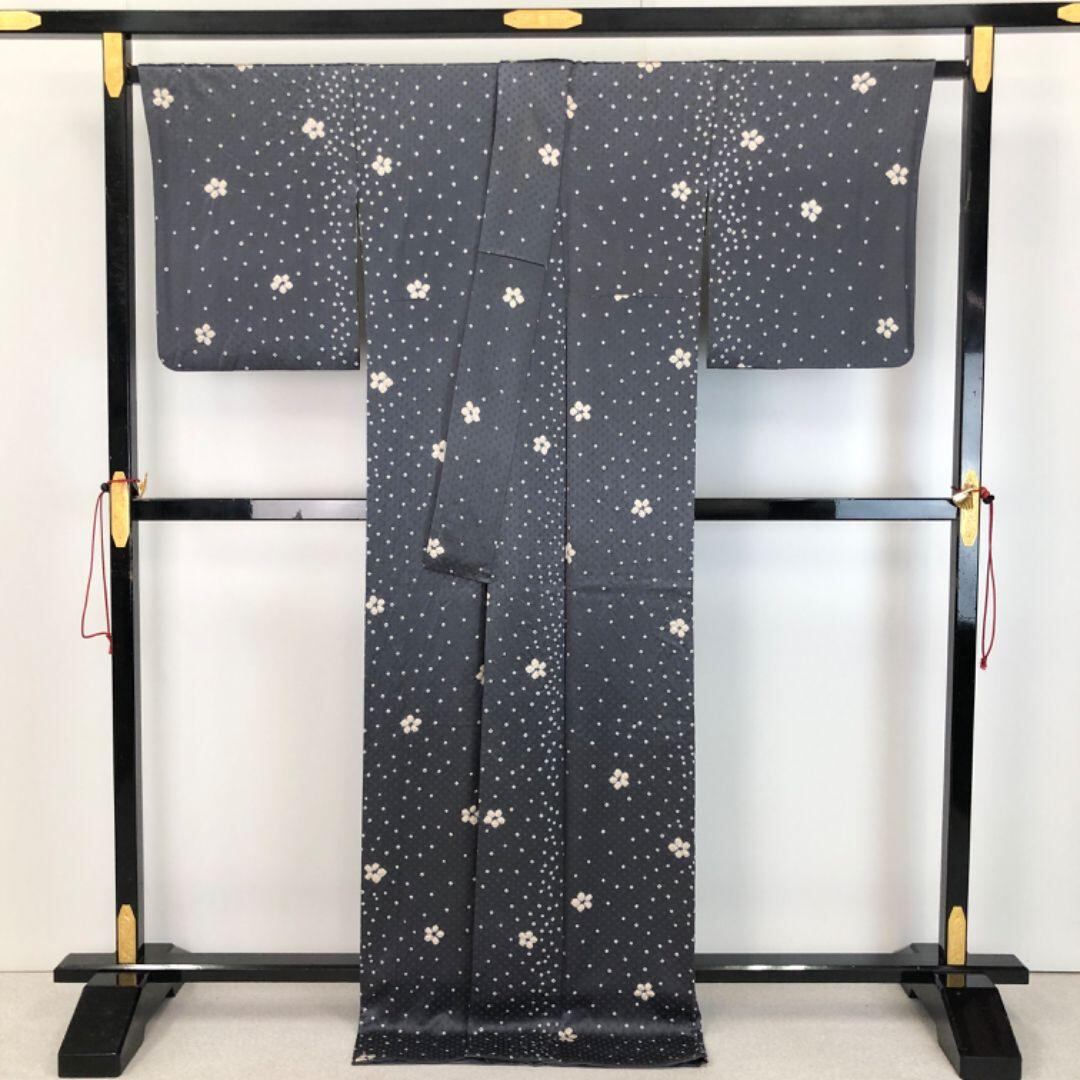 小紋 絞り 花柄模様 絞り 石板色 トールサイズ K-5317 着物 きもの kimono 和服 和装 中古 リサイクル着物 【送料無料】