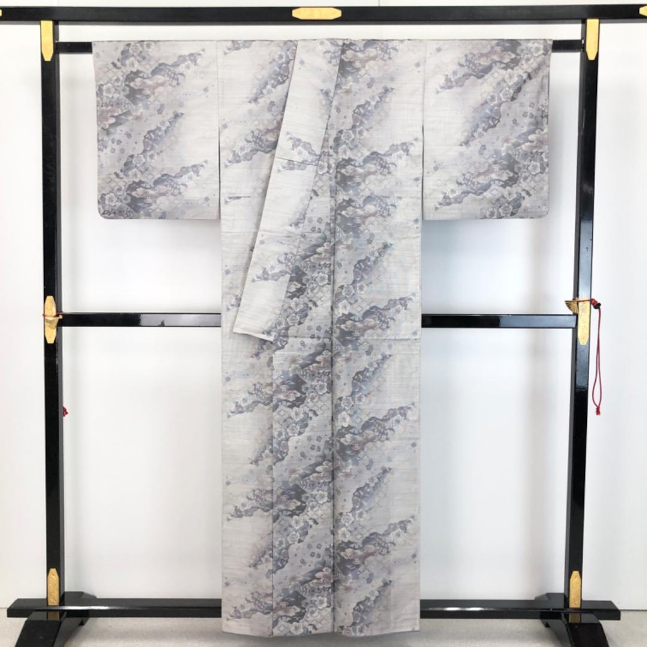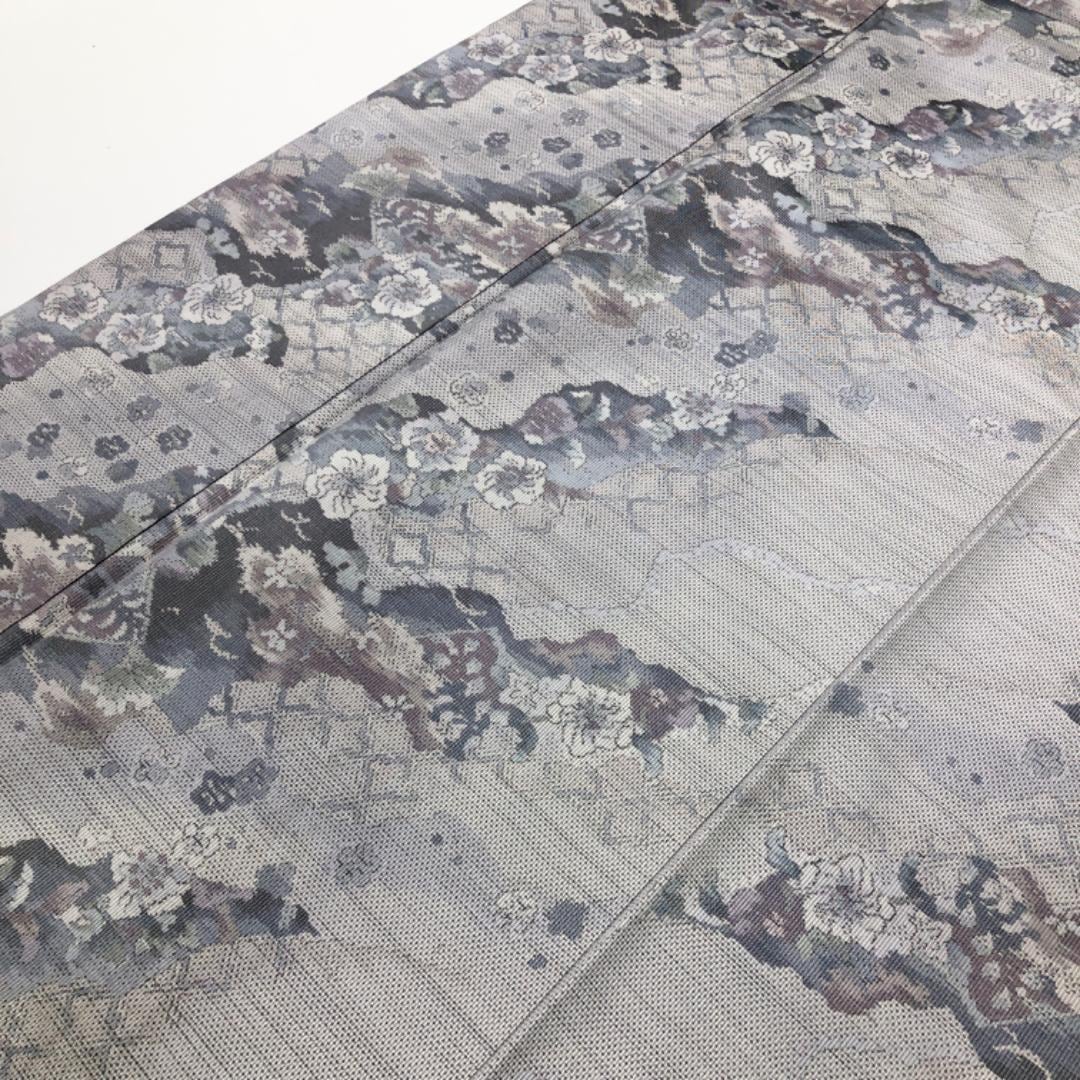 雲井鼠色の上品なお色味に辻が花の柄行がデザインされた素敵なお品でございます。