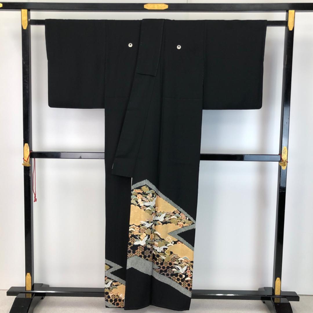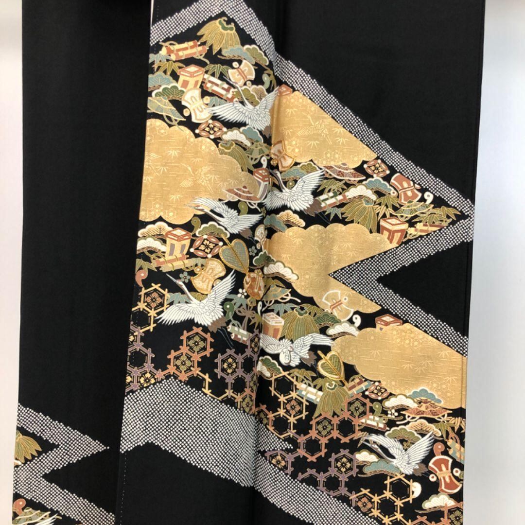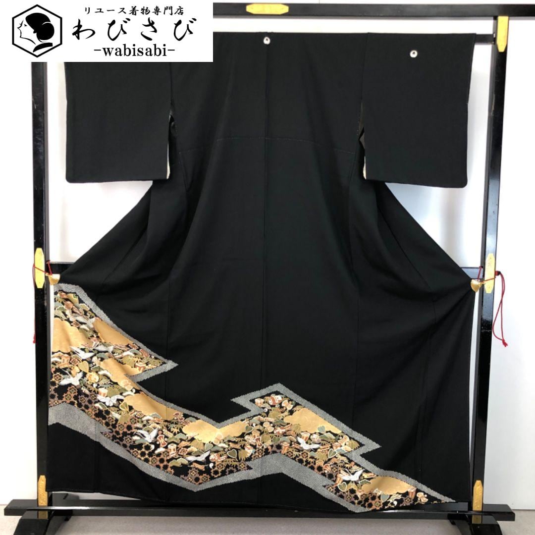 金彩、金駒などが使われた松菱模様、宝尽くし、鶴などのお祝いの席に相応しい素敵な柄裄がデザインされたお品でございます。