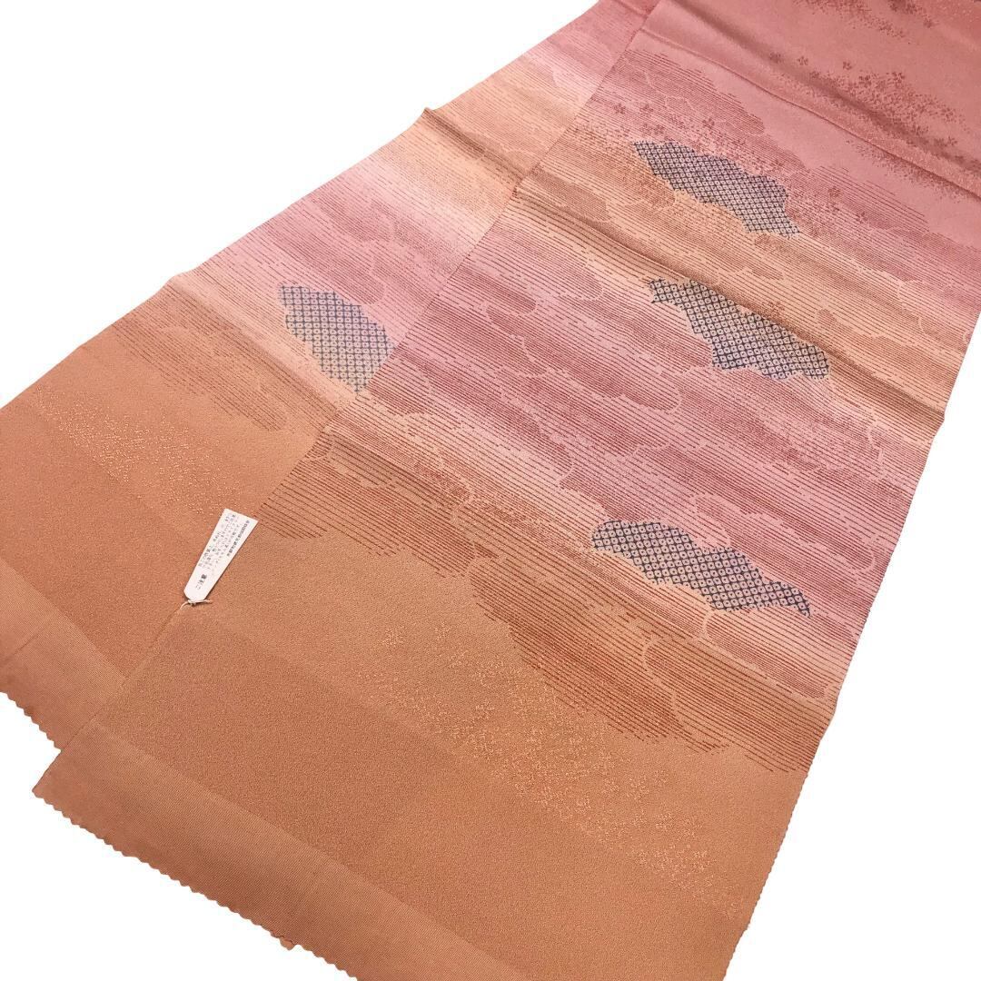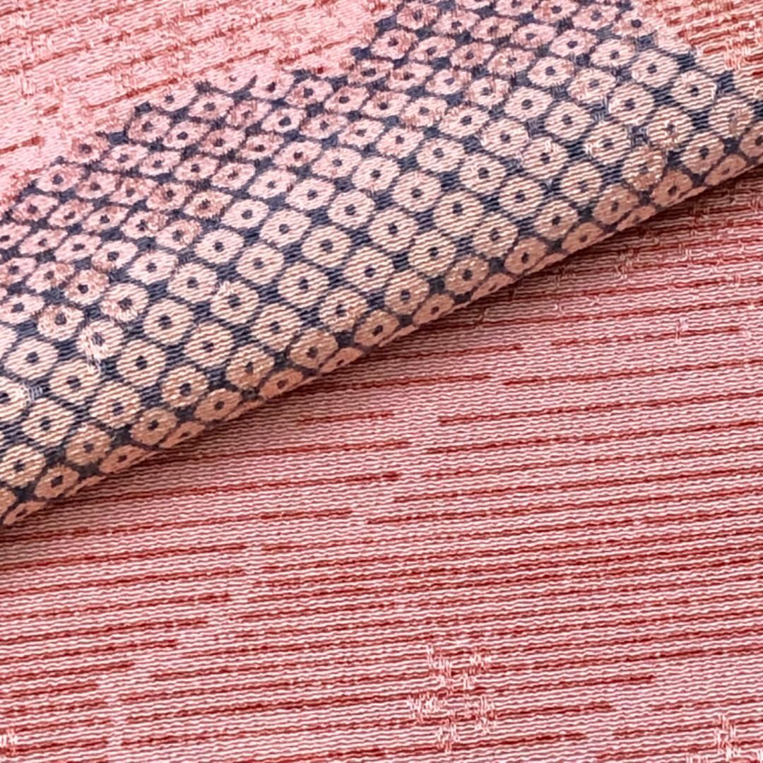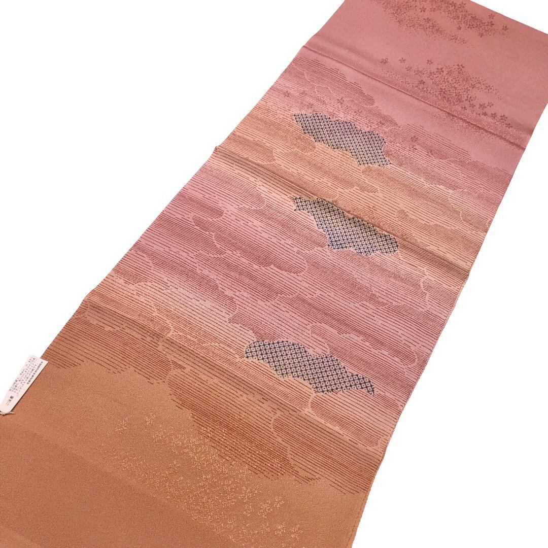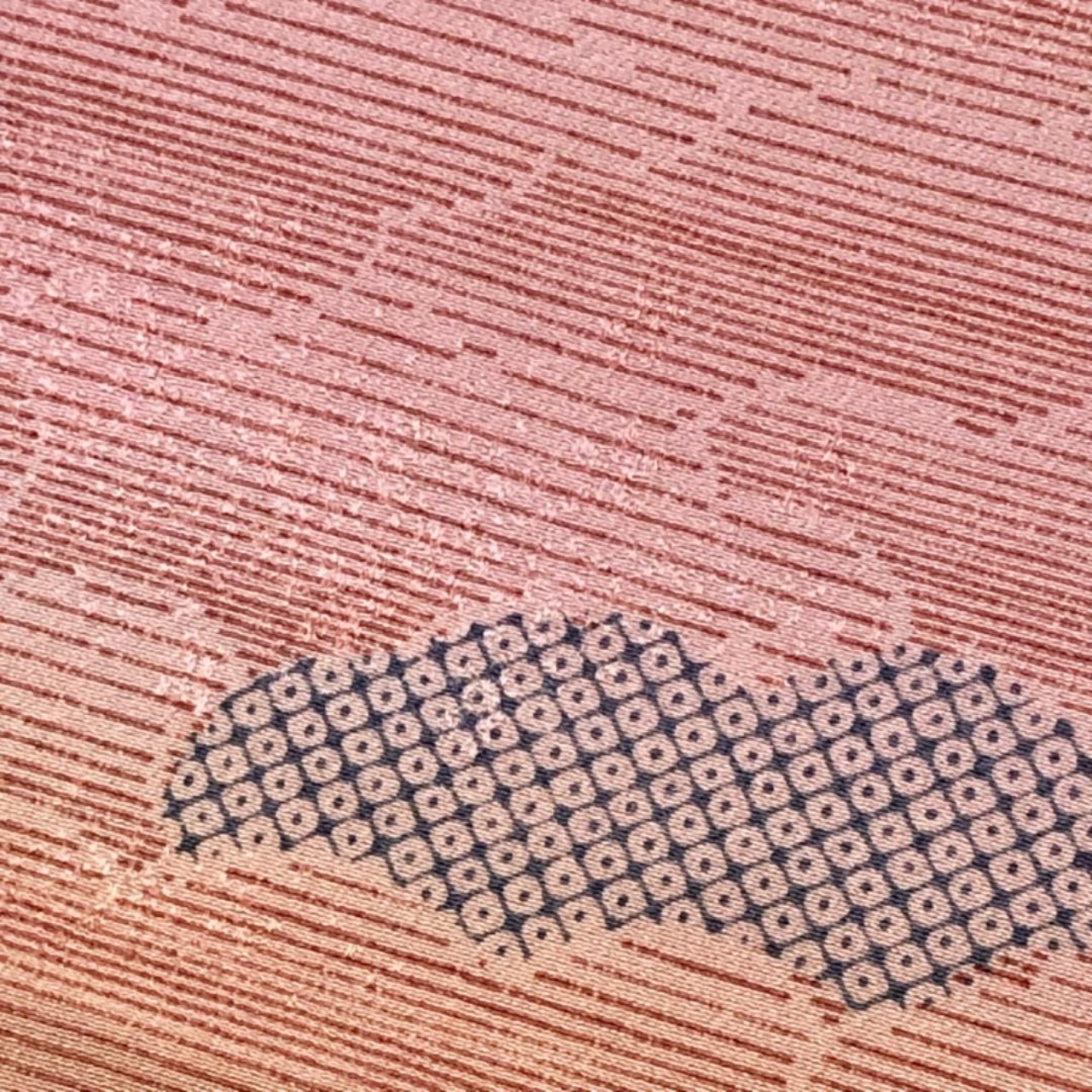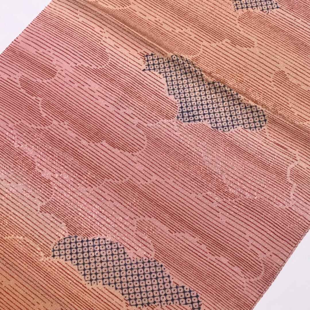 浅蘇芳色ベースのお色味に鹿の子柄、可愛らしい小花柄などがデザインされた素敵なお品でございます。