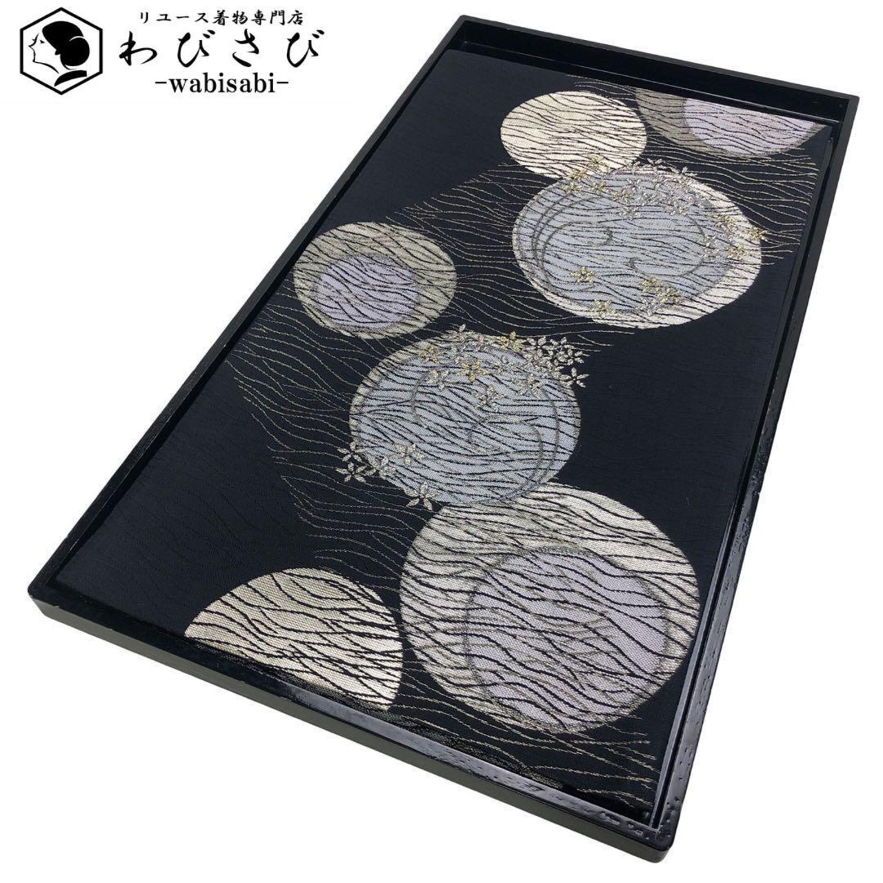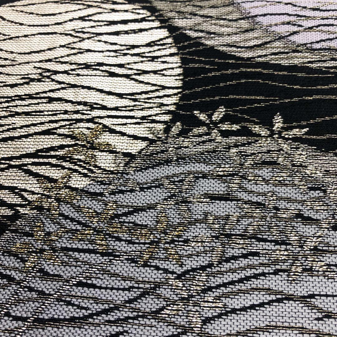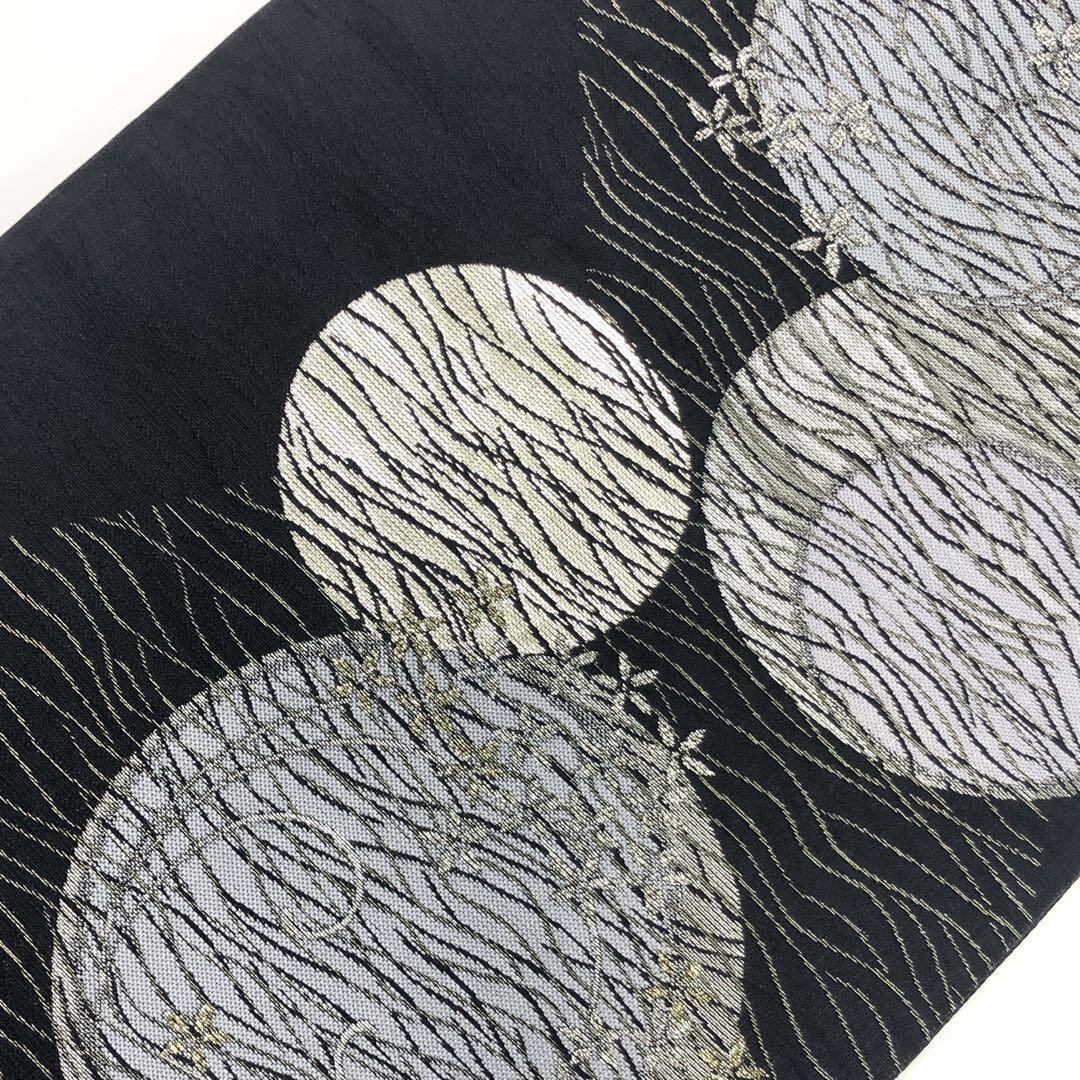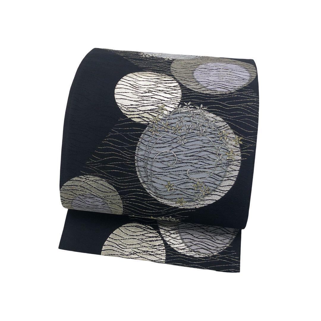 黒色ベースのお色味、丸に草花模様のモダンな雰囲気の柄裄がデザインされた素敵なお品でございます。
