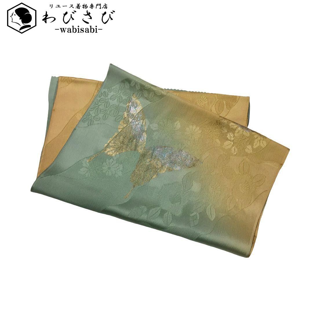 和装小物 帯揚げ 正絹 綸子 染分け 花柄 蝶々 金彩 岩井茶色 C-6803 着物 きもの kimono 和服 和装 中古 リサイクル着物 【送料無料】