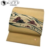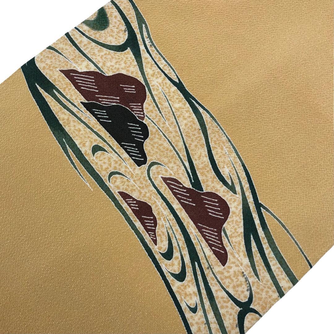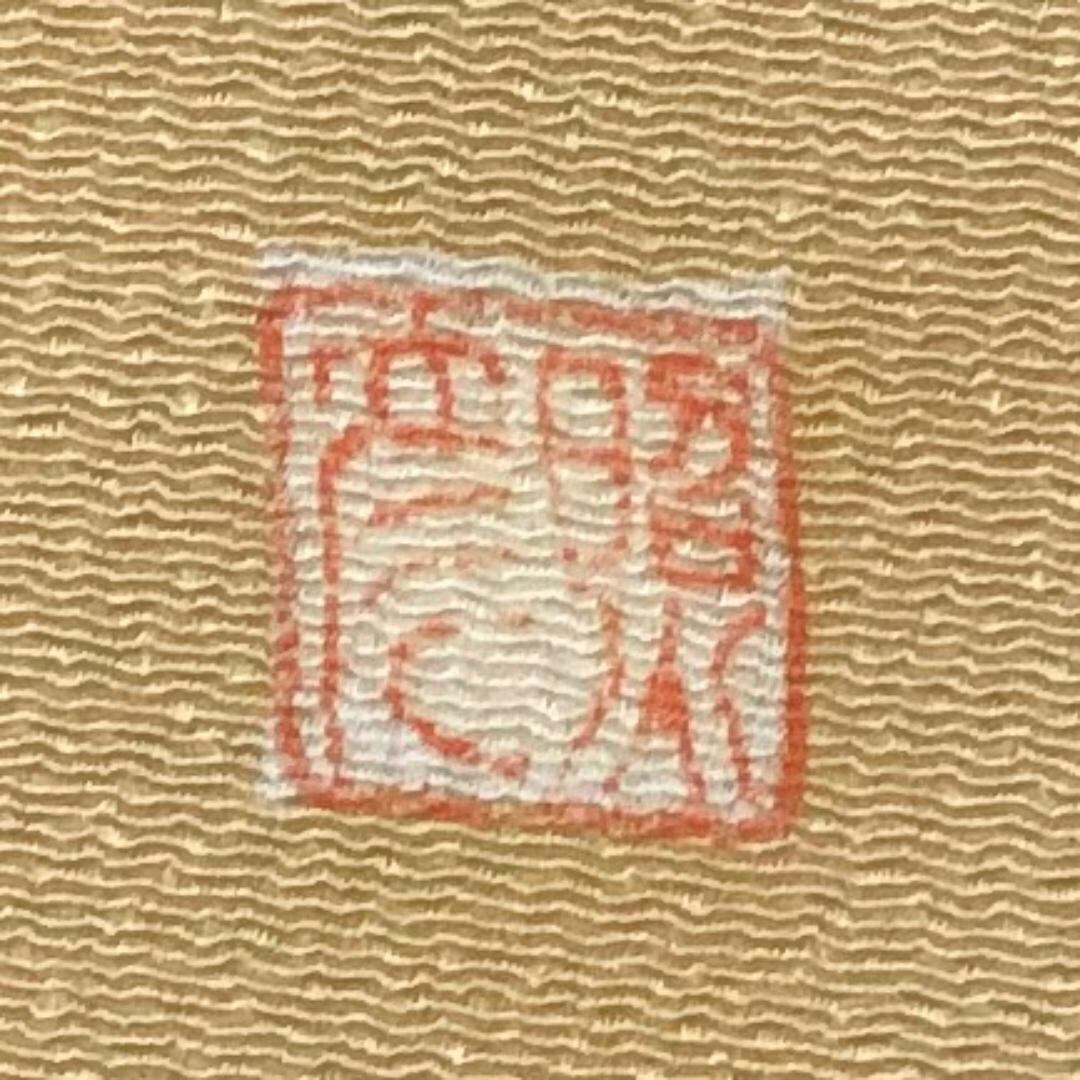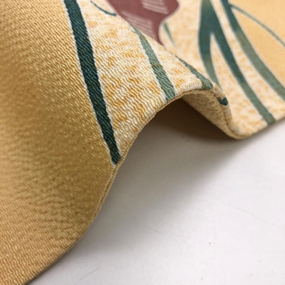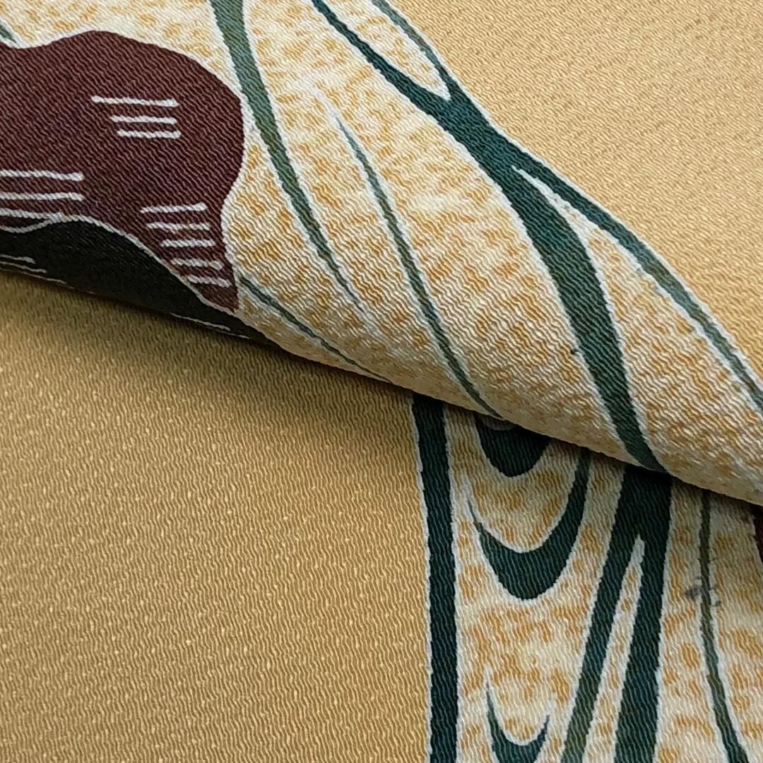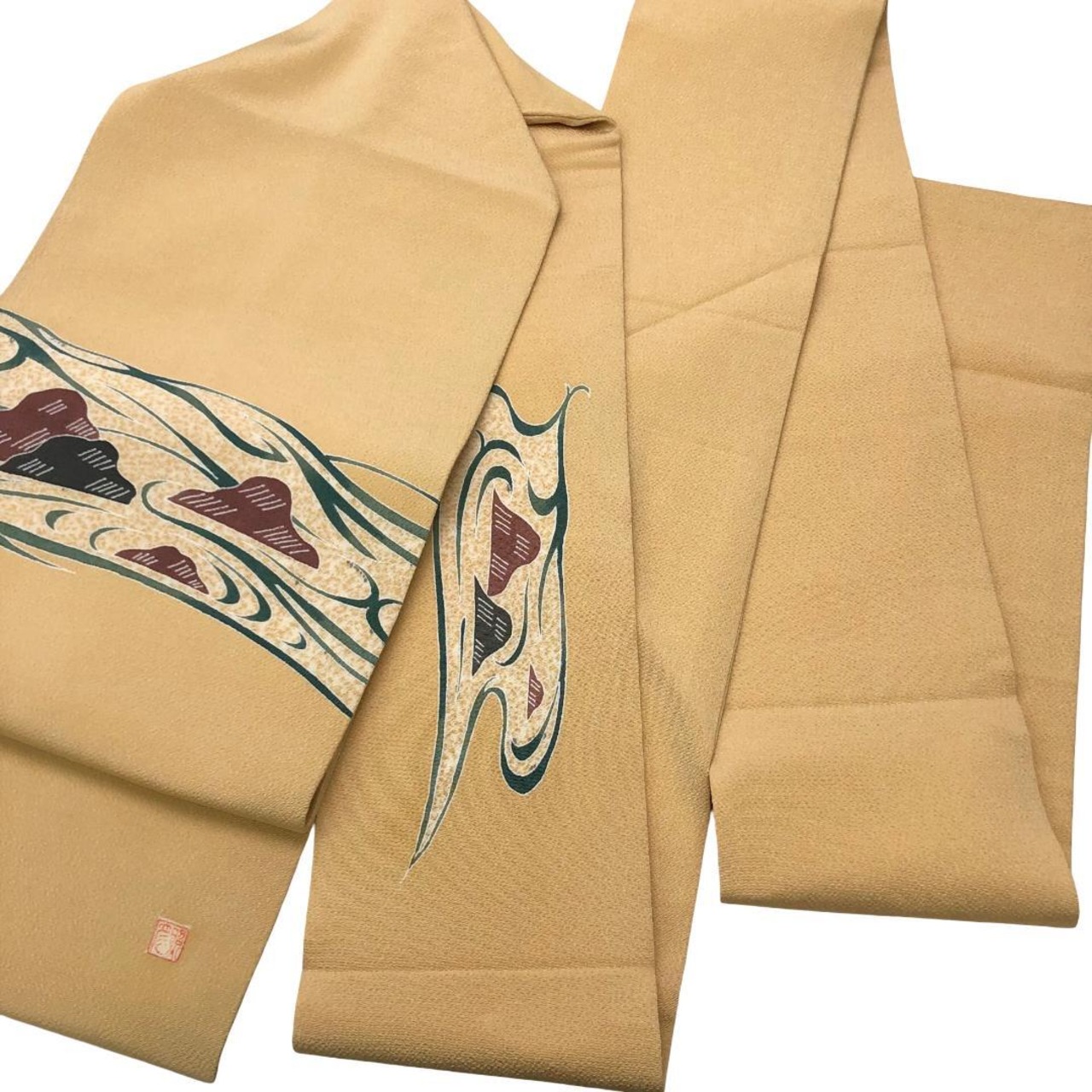 支子色のお色味の縮緬地に枯山水の柄裄がデザインされた素敵なお品でございます。