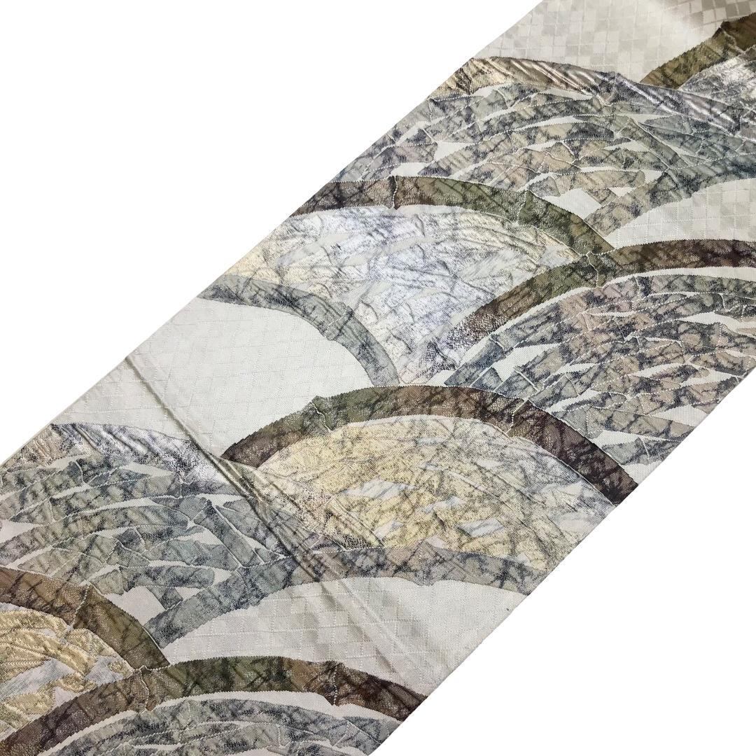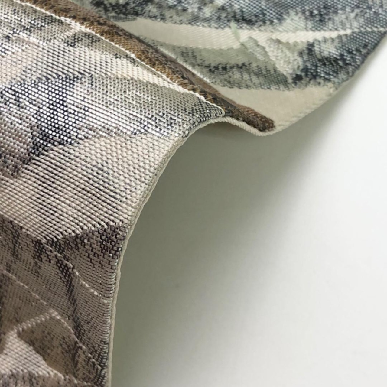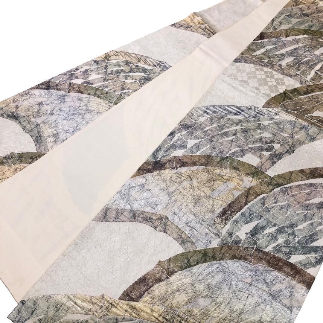 薄灰白色の品のあるお色味に竹模様の雰囲気の良い柄裄がデザインされた素敵なお品でございます。