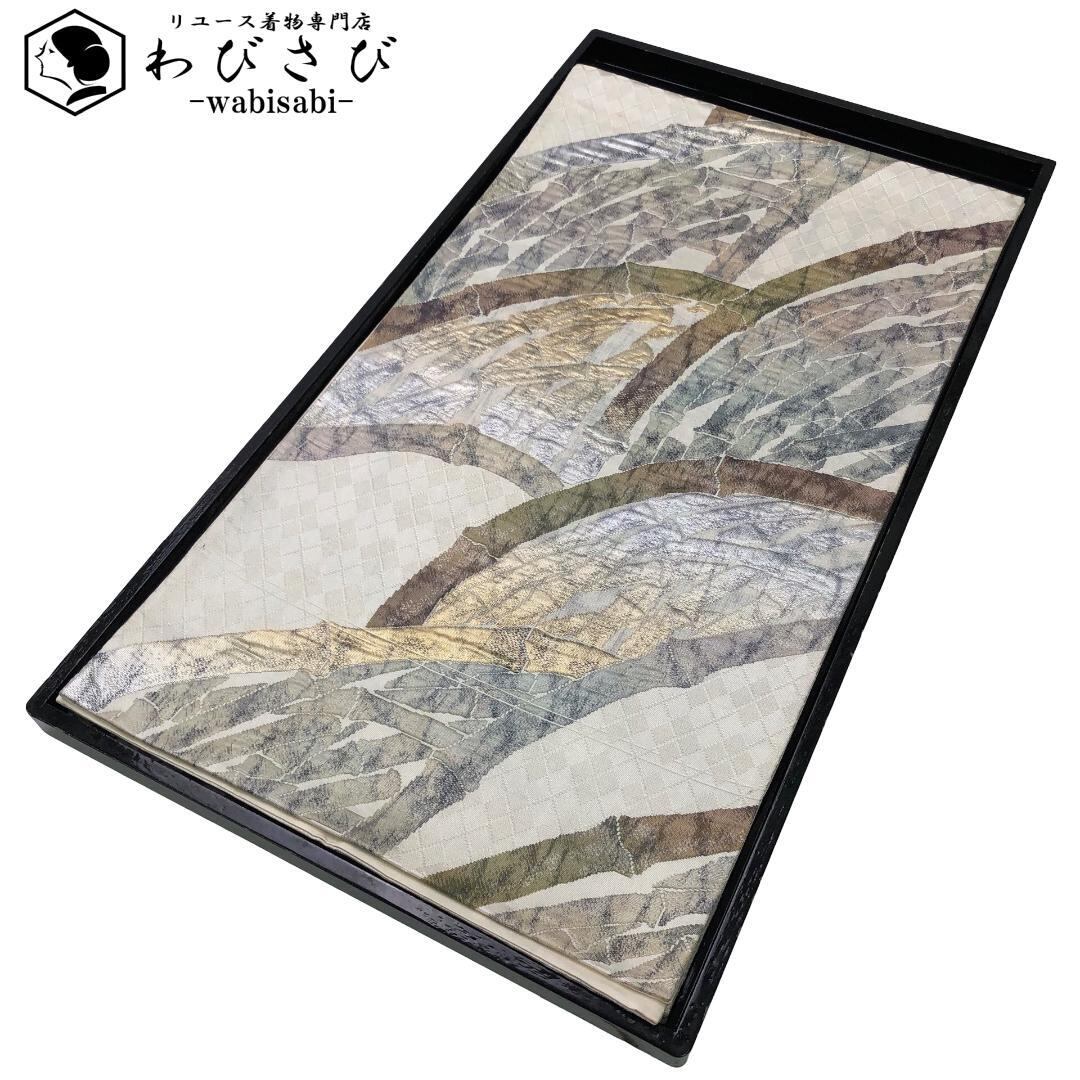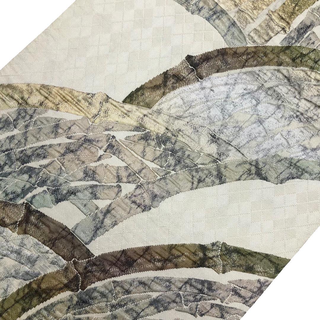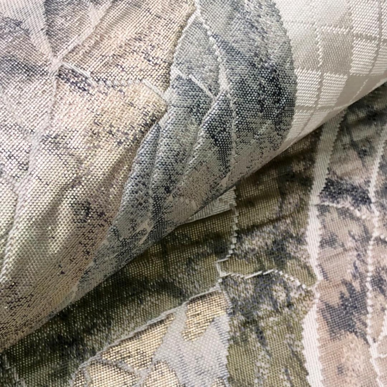 薄灰白色の品のあるお色味に竹模様の雰囲気の良い柄裄がデザインされた素敵なお品でございます。