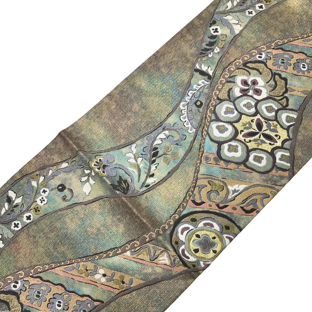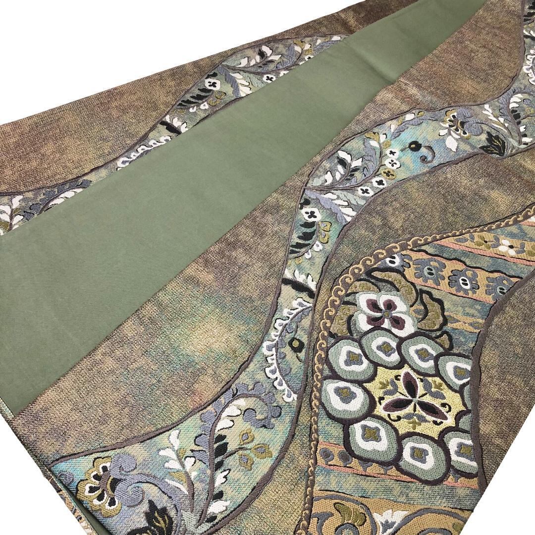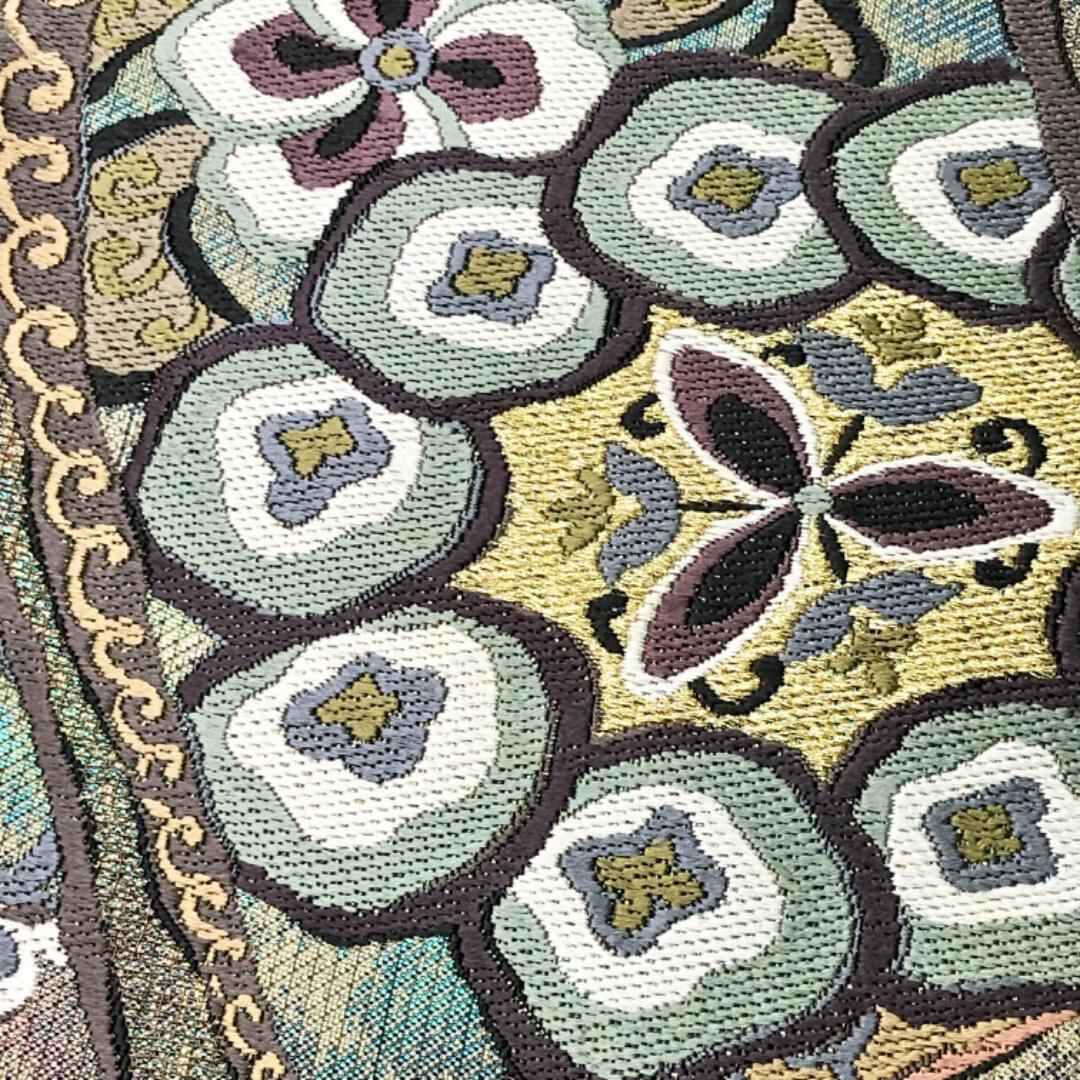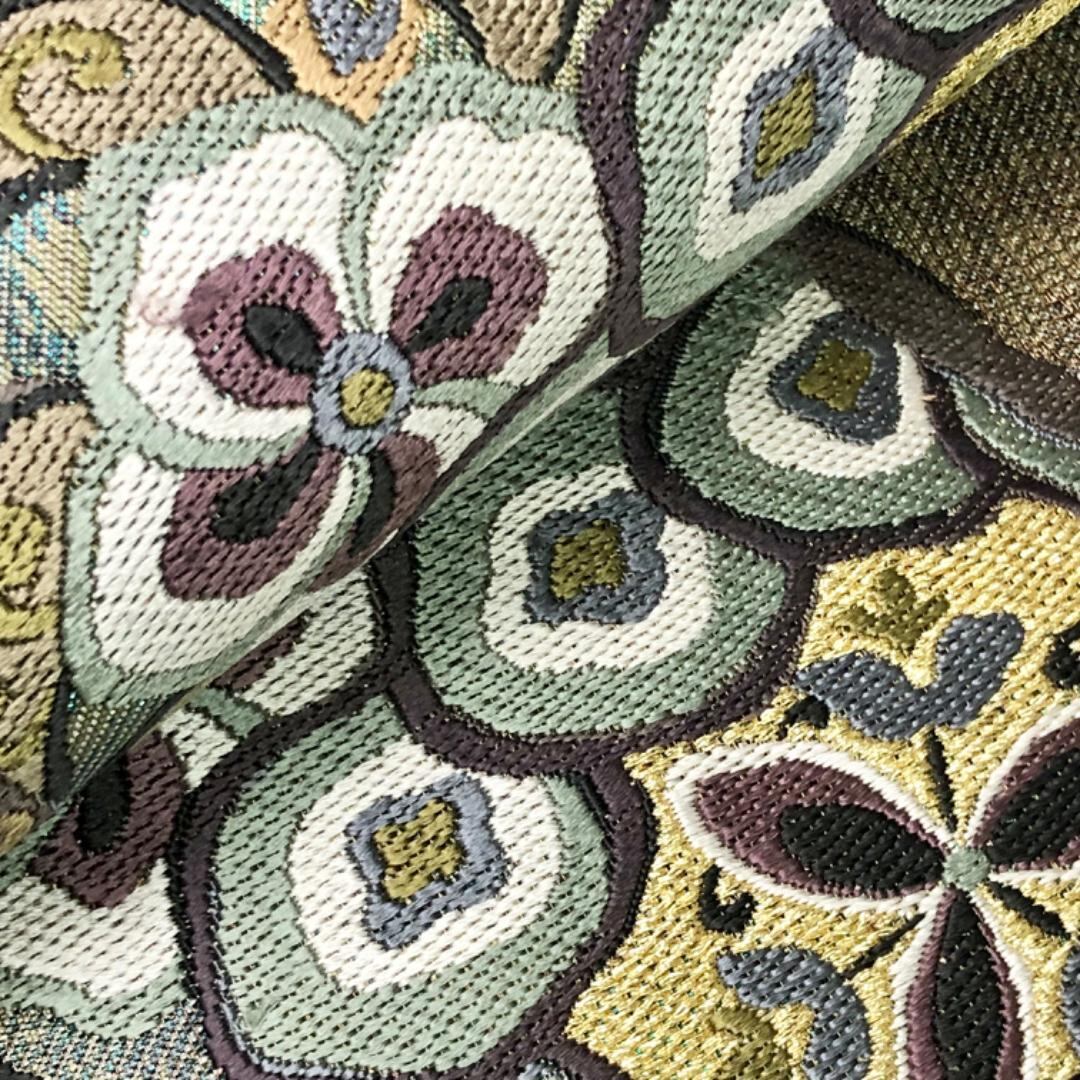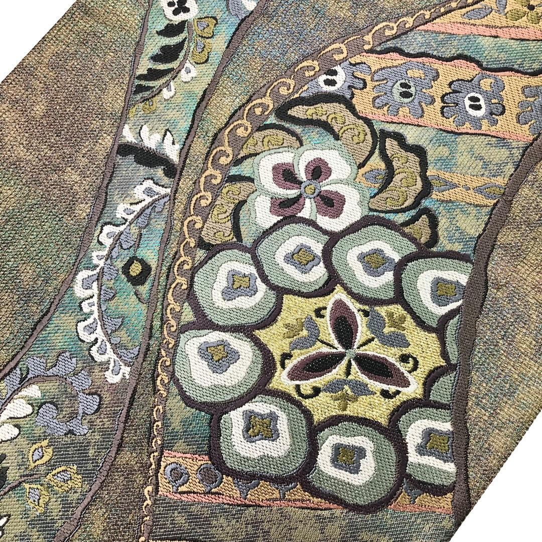 暈し色の色彩、抽象華柄模様の織柄がデザインされた雰囲気の良い素敵なお品でございます。