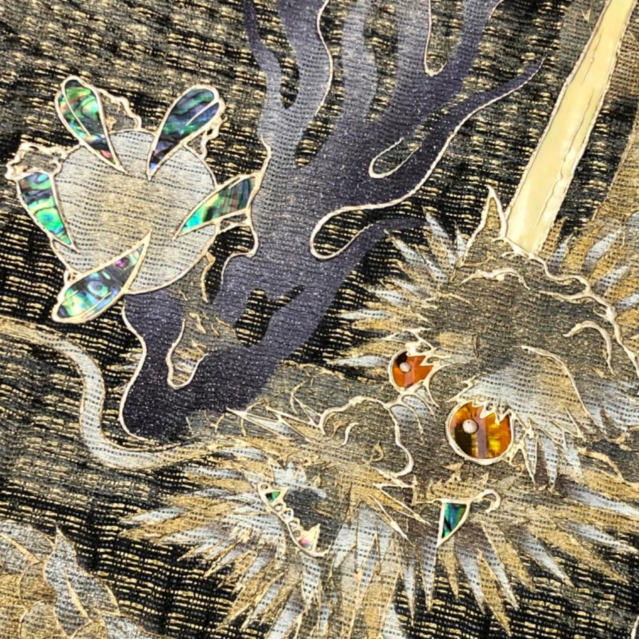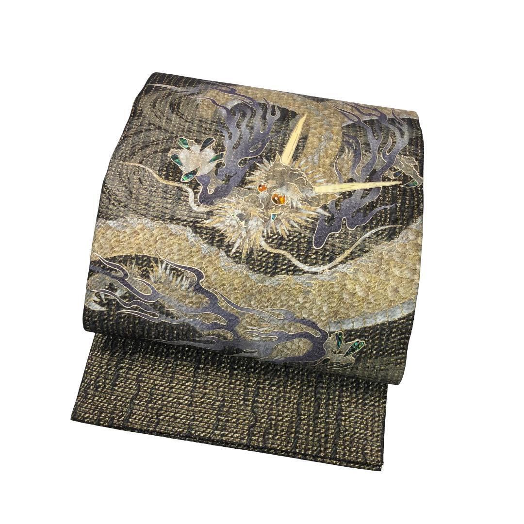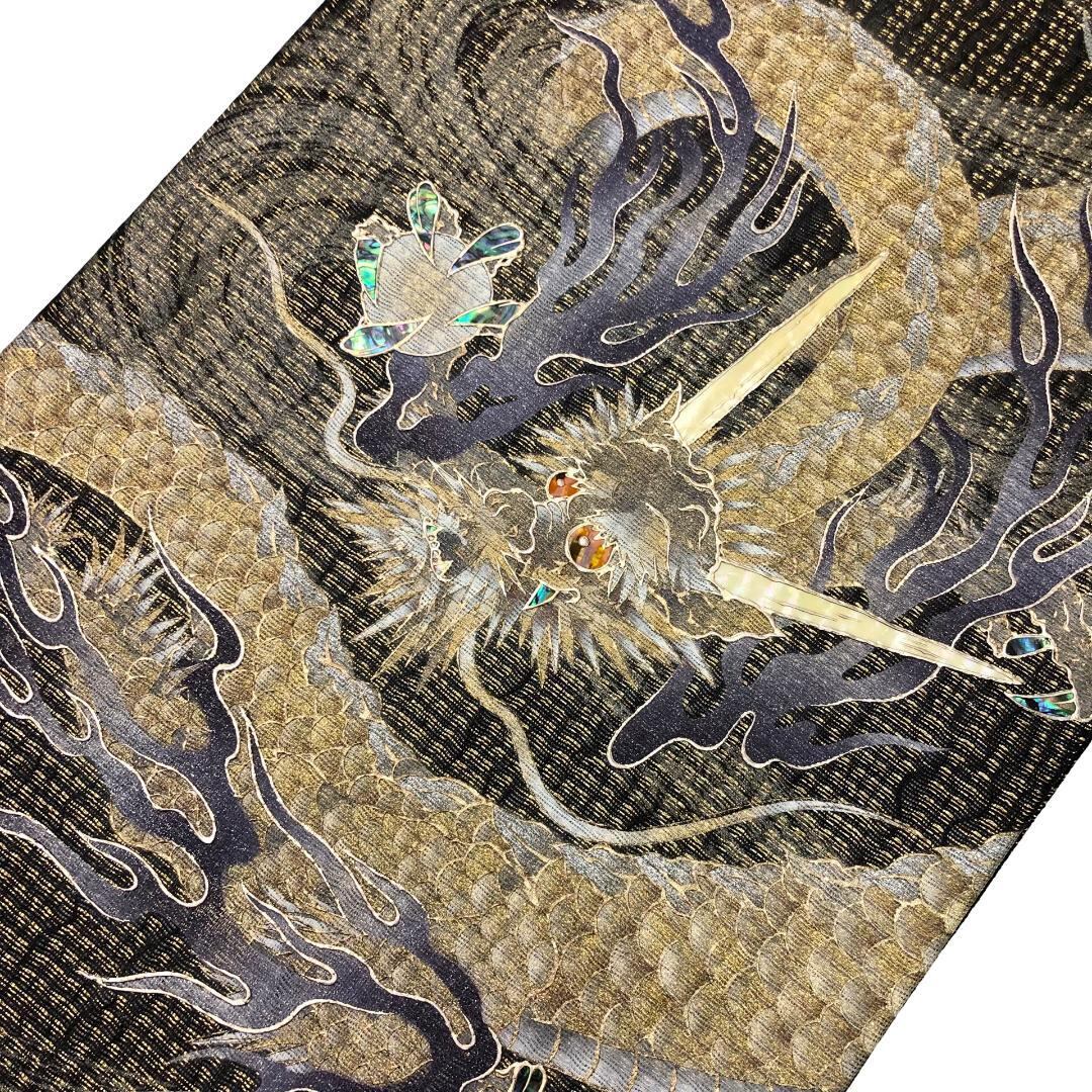 袋帯 龍 竜 ドラゴン 螺鈿 金彩 金糸 ガード加工 O-5916 着物 きもの kimono 和服 和装 中古 リサイクル着物 【送料無料】