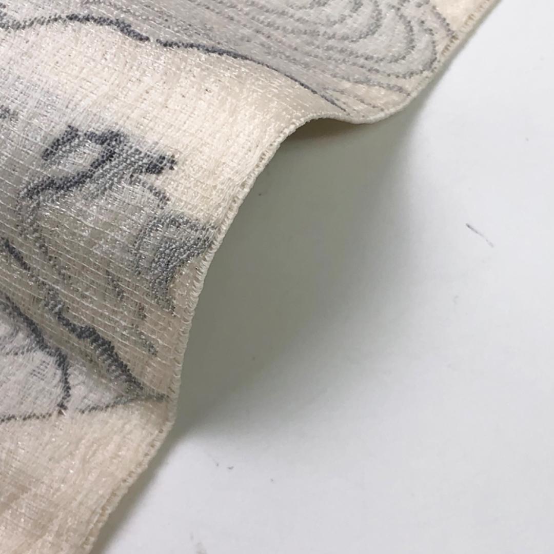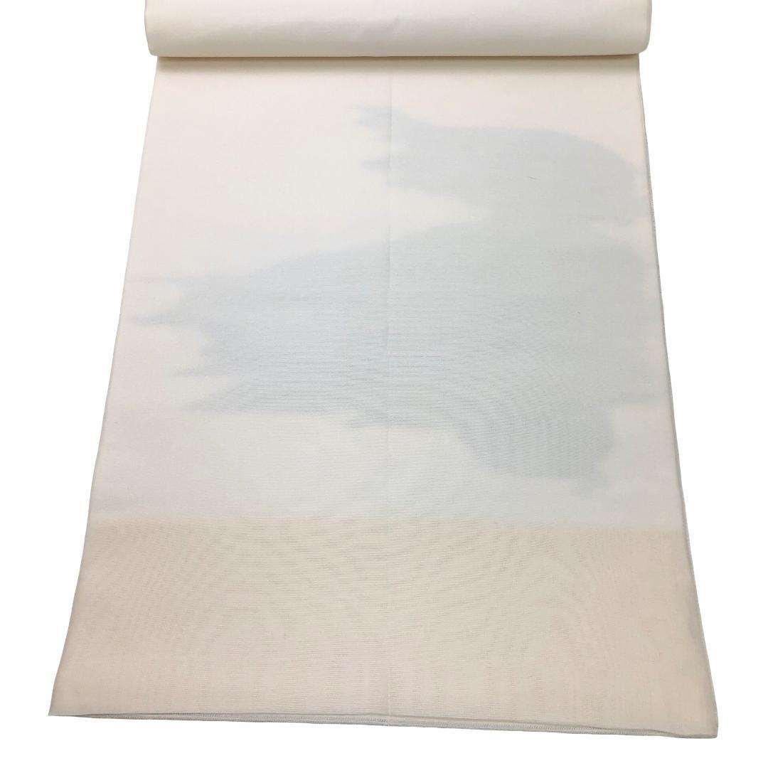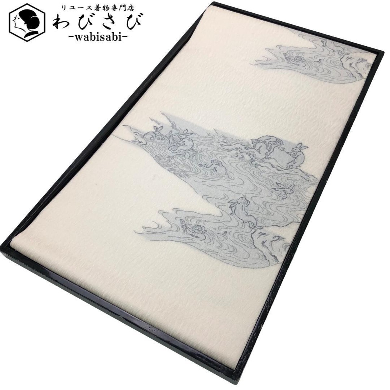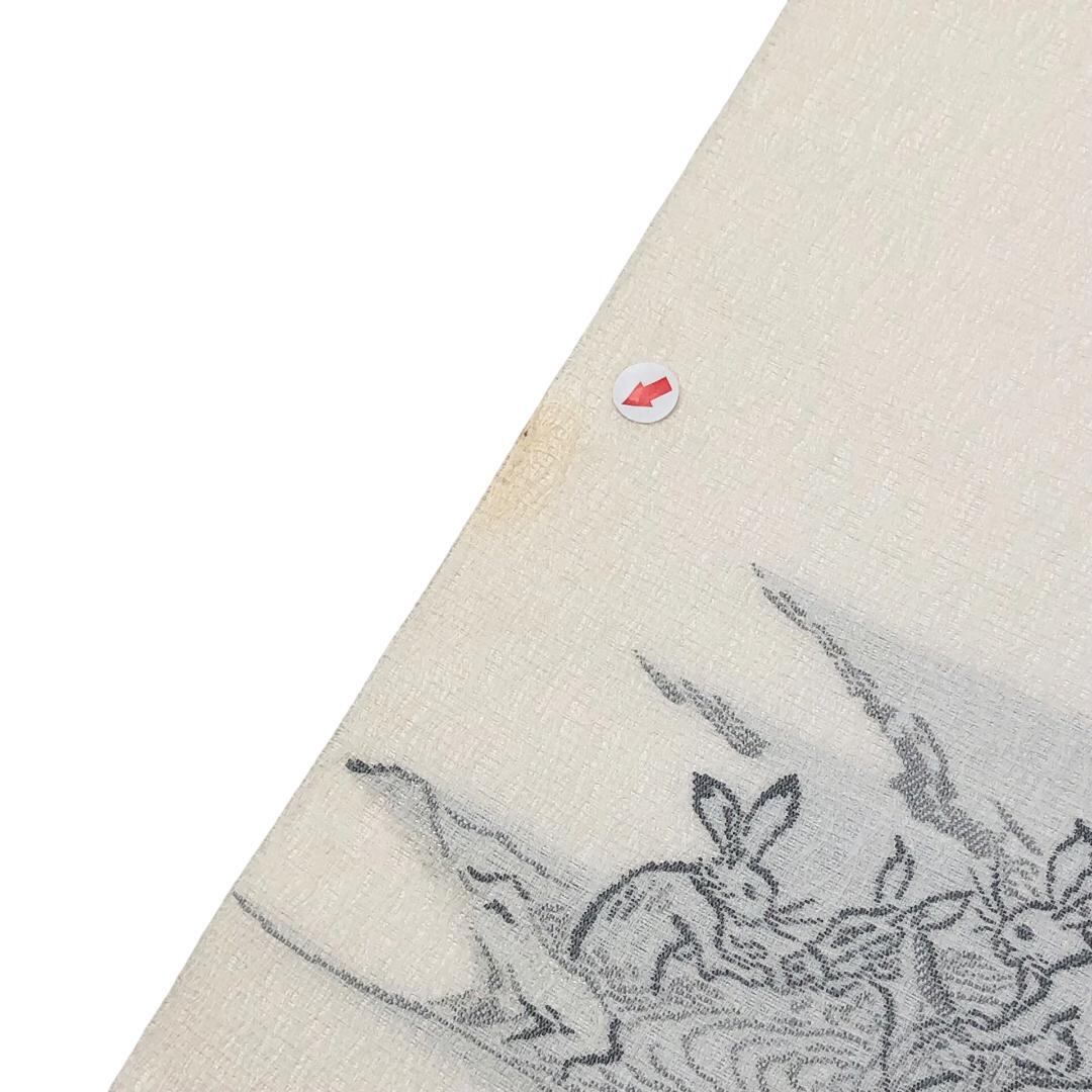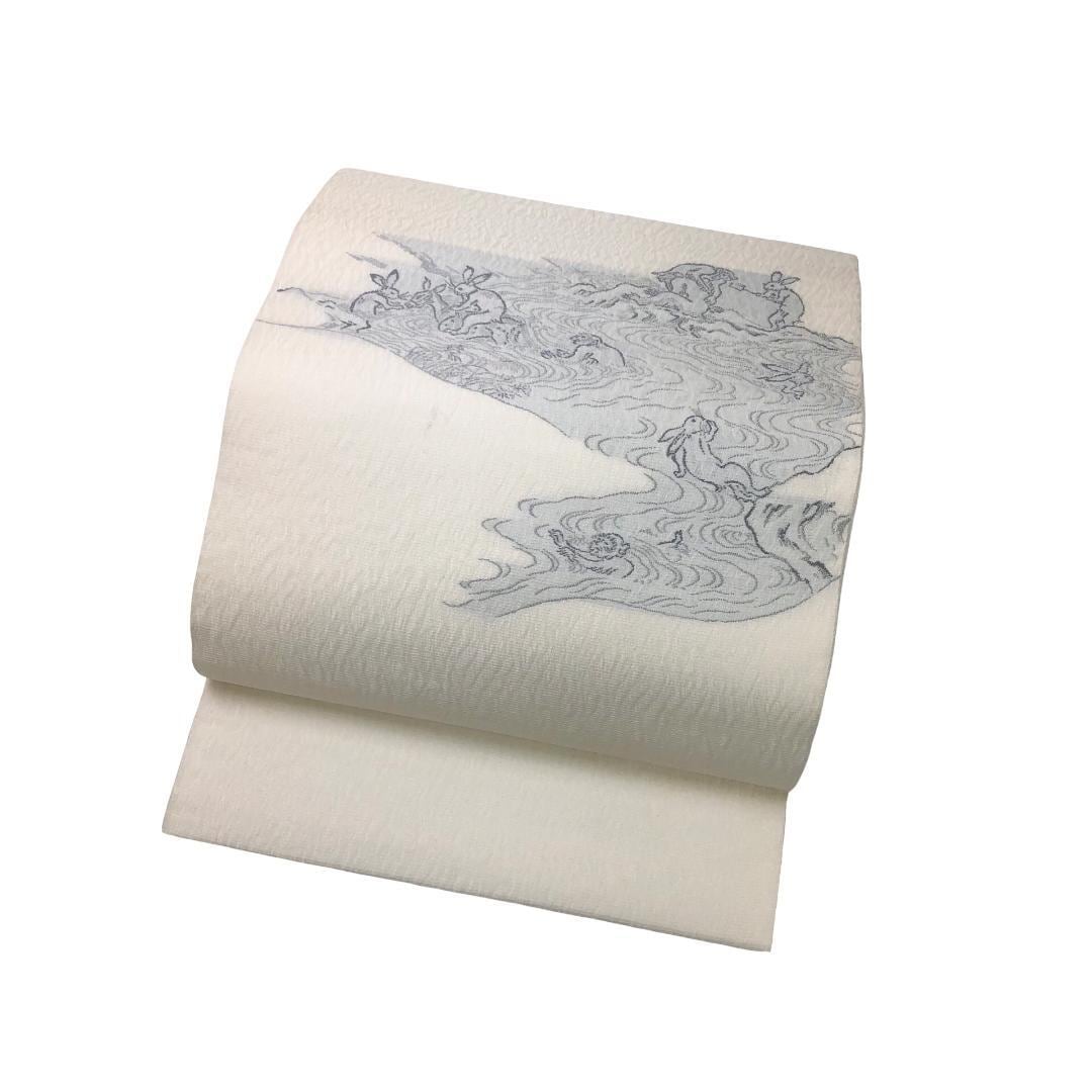乳白色の上品なお色味に織柄の鳥獣戯画の柄行がデザインされた雰囲気の良い素敵なお品でございます。